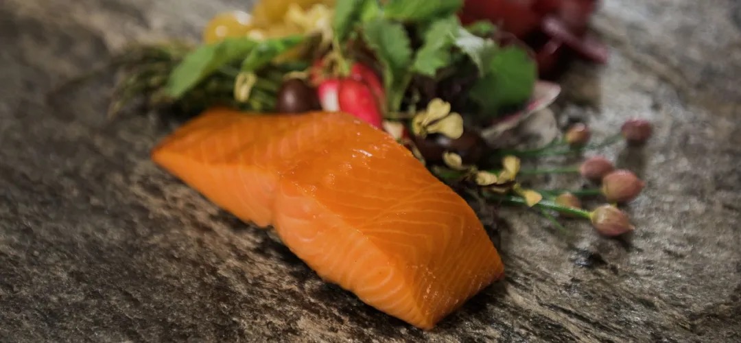帝王鲑是鲑鱼(三文鱼)家族中体型较大的品种,拥有不同的肉质结构,丰腴细腻的口感。因为对生长环境十分敏感,对于水质、温度都有着苛刻的要求,它在全球鲑鱼产量中占比不到1%,可谓珍稀。