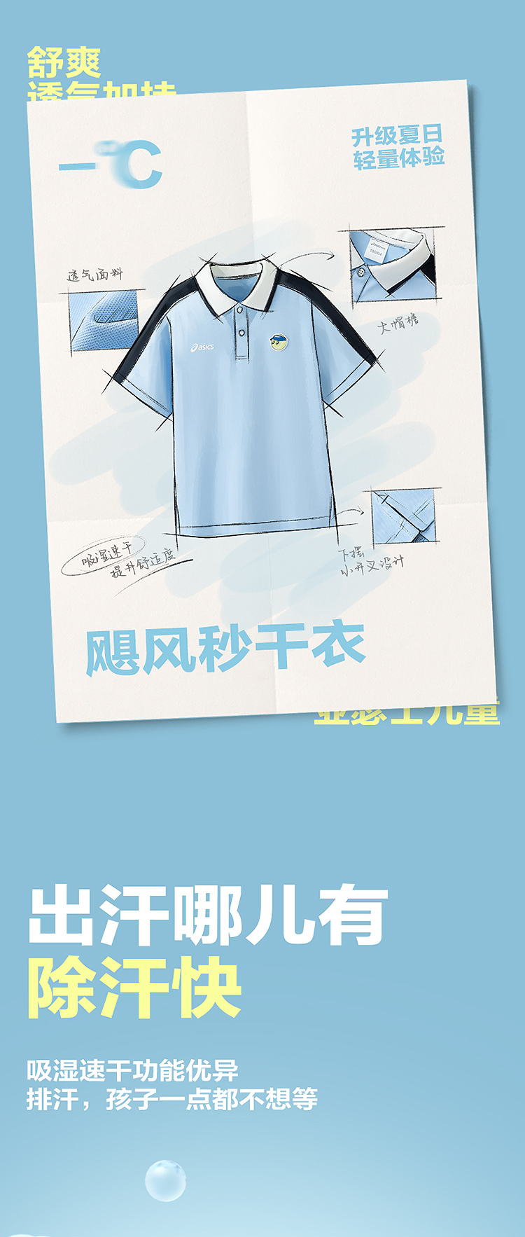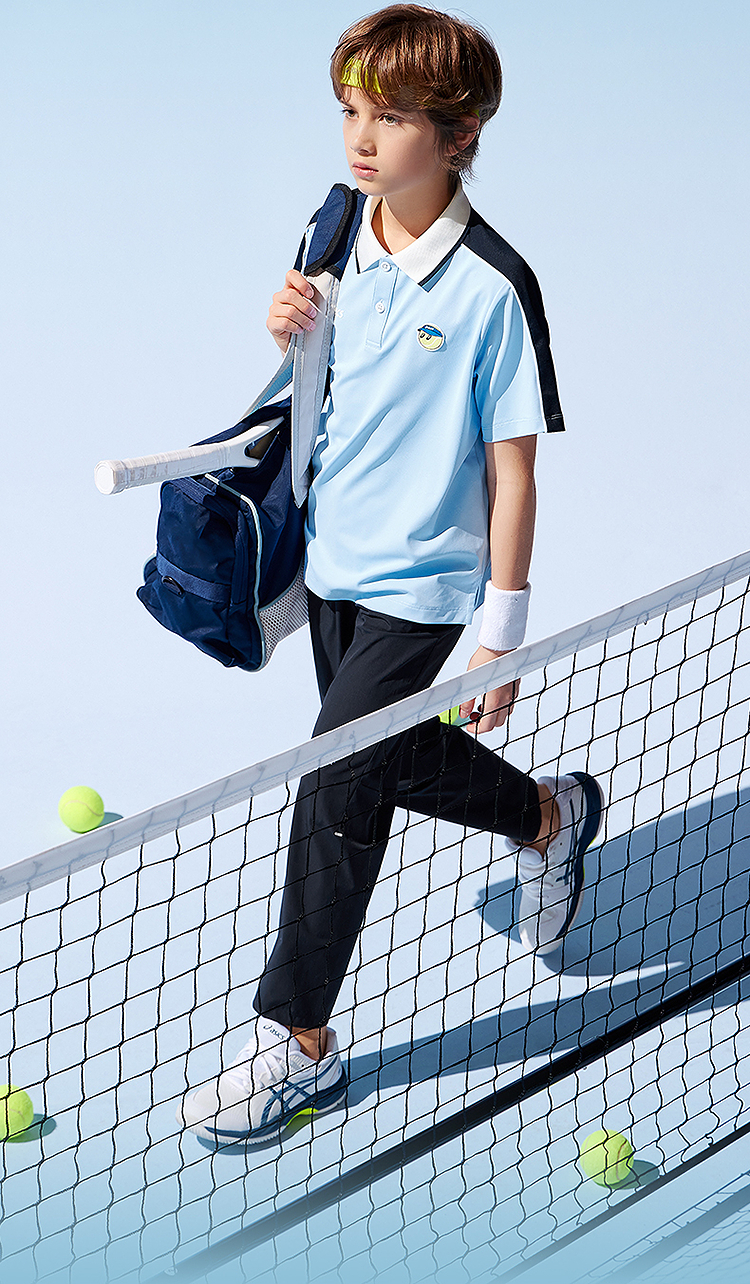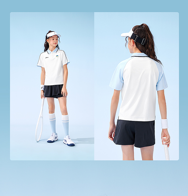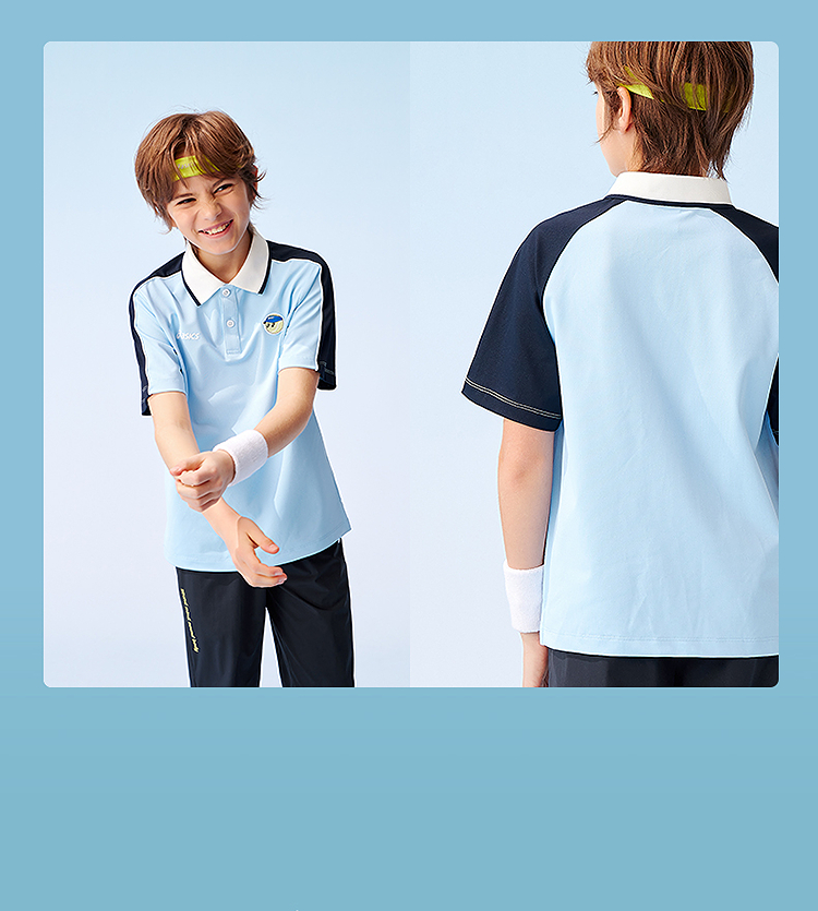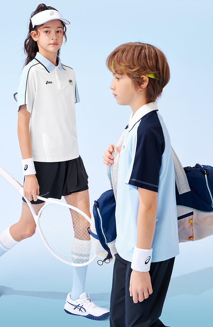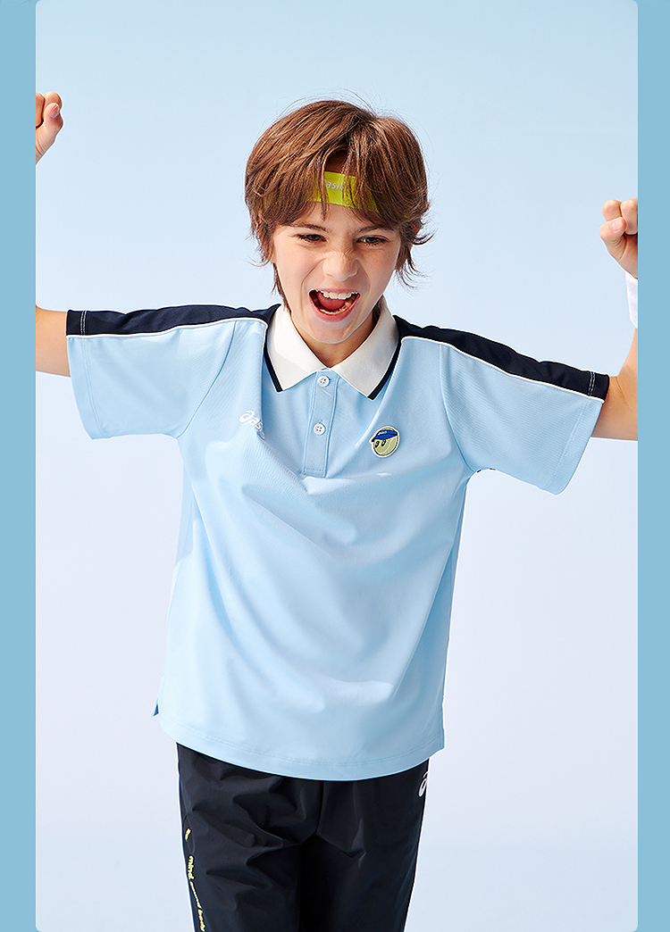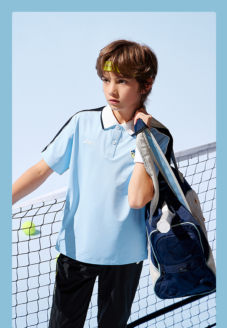 ASICS/亚瑟士童装25年夏季新款网球Polo吸湿插肩袖运动短袖T恤
