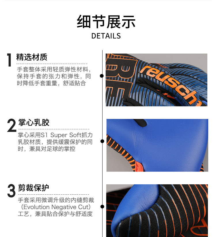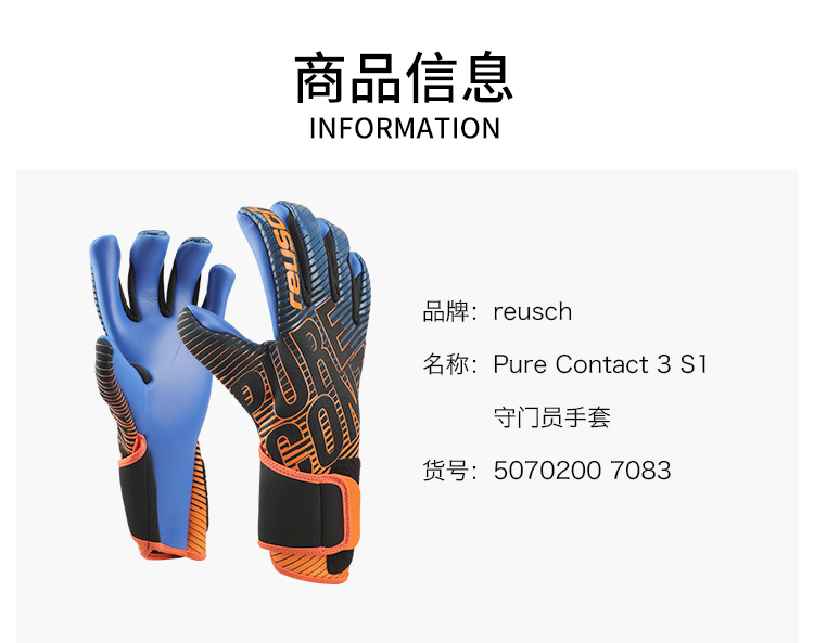 专柜正品REUSCH炫驰PURE CONTACT 3 S1门将守门员手套50702007083