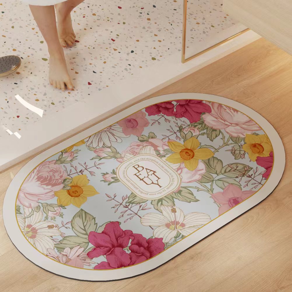 北欧风情浴室加厚吸水地垫 卫生间门口防滑垫厕所卫浴速干脚垫