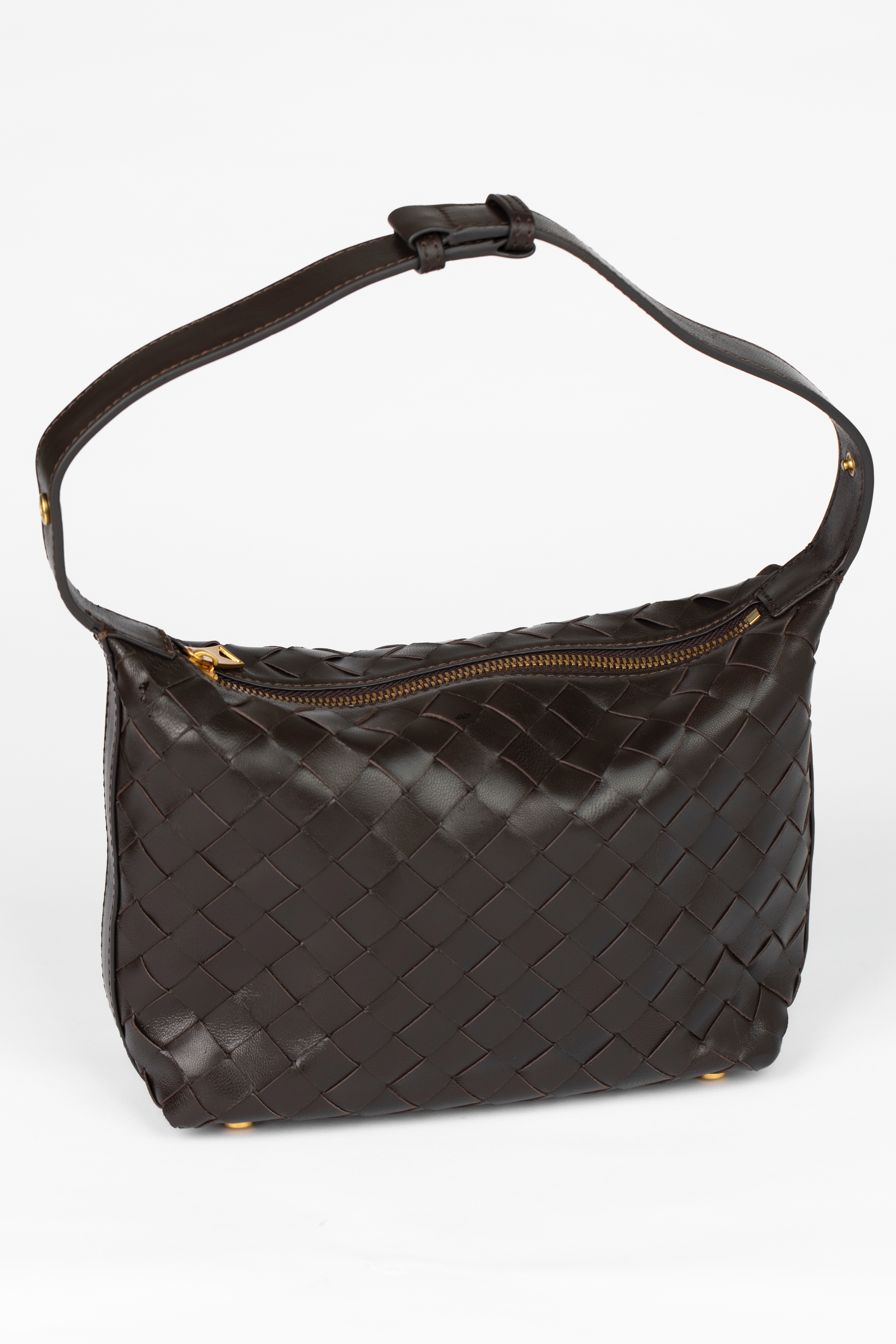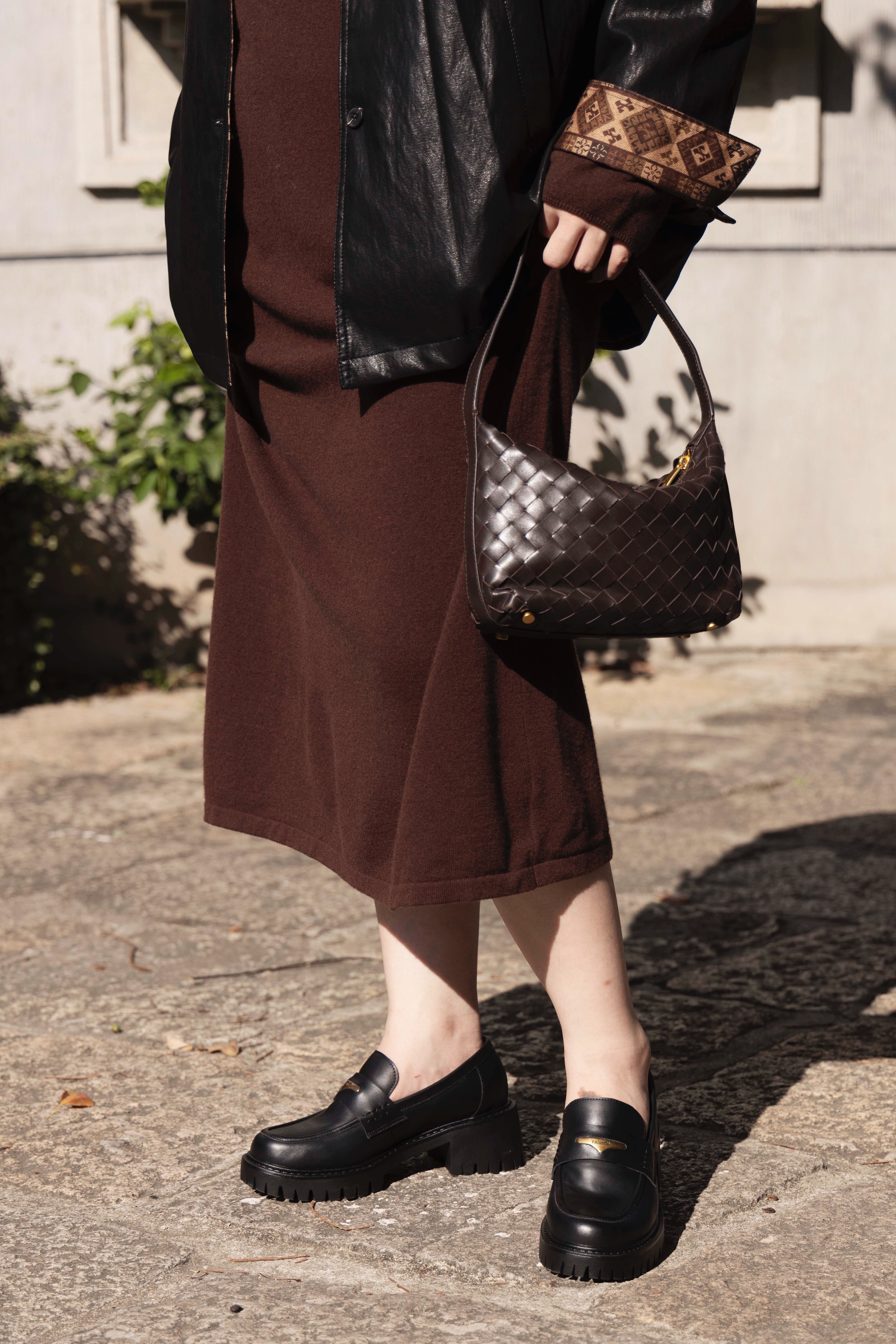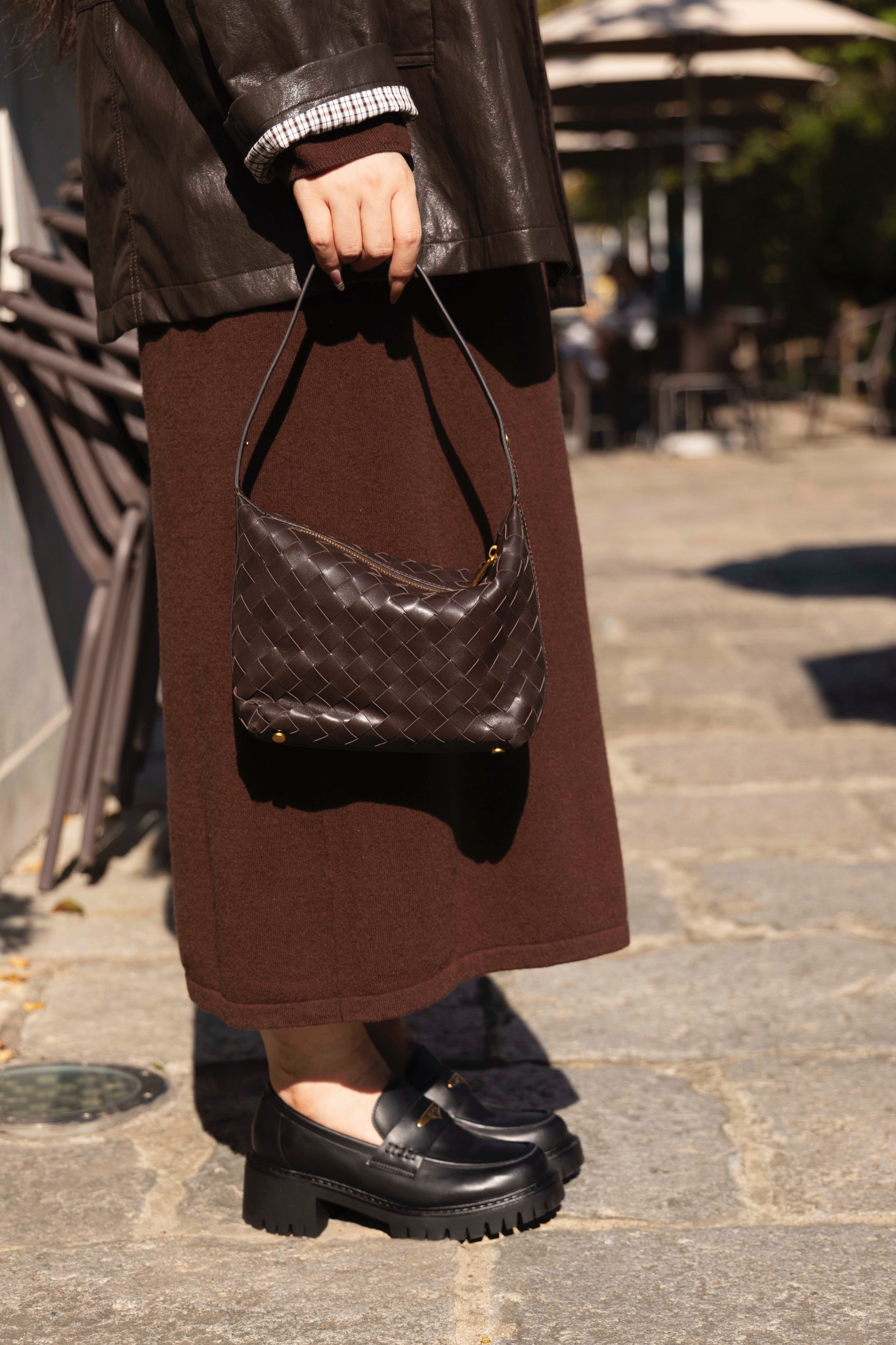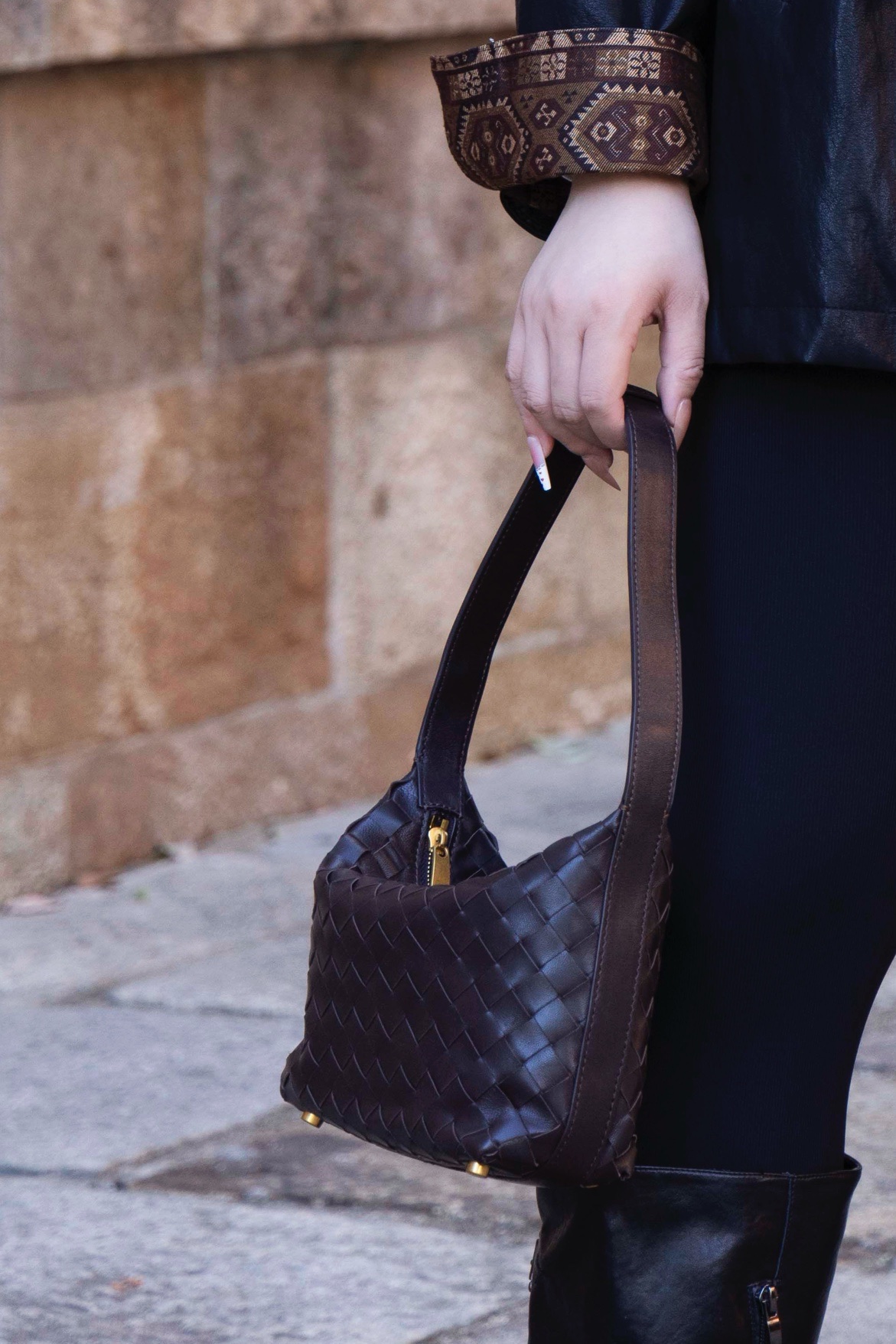 一周内发货!【乌木色羊皮 编织包】手提包,长26,高17,手提带43厘米,原创设计手提编织包!时髦大气的质感乌木色