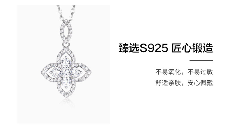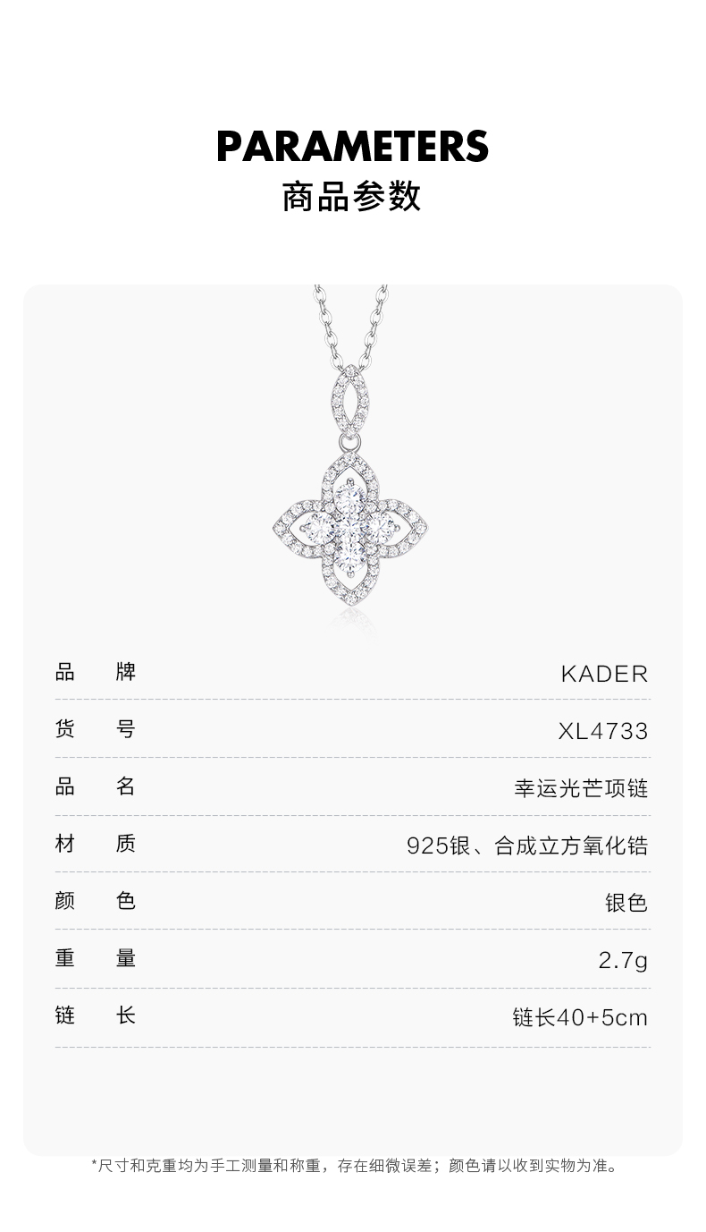卡蒂罗/KADER 幸运光芒项链 925银幸运四叶草造型满钻可调节锁骨链 璀璨夺目闪耀配饰精致吸睛 生日礼 母亲 女神