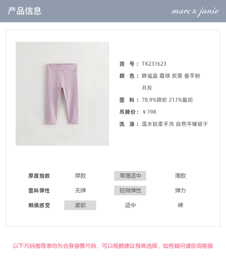 马克珍妮秋装新款 女童双面磨毛弹力运动打底裤瑜伽裤231623