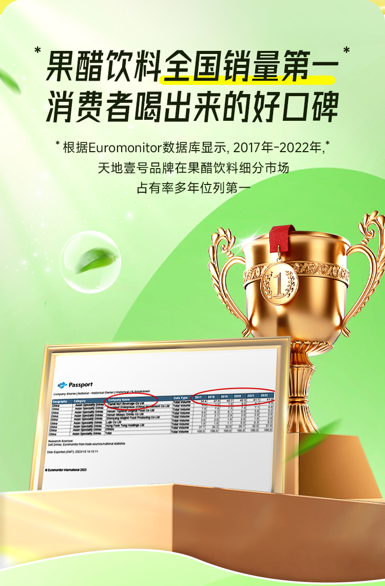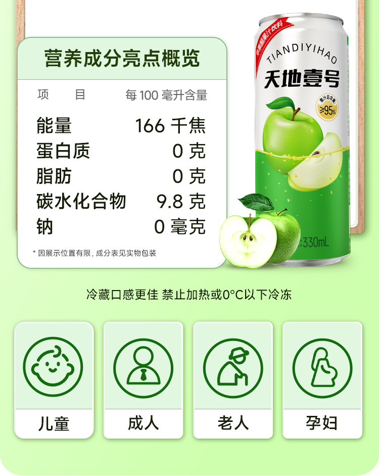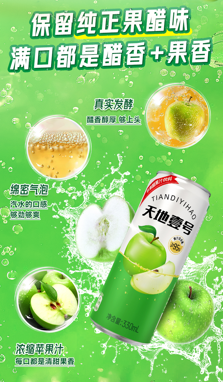 【天地壹号苹果醋饮料】优质苹果汁 专利醋酸菌 酸甜解腻 简单配方放心喝AA
