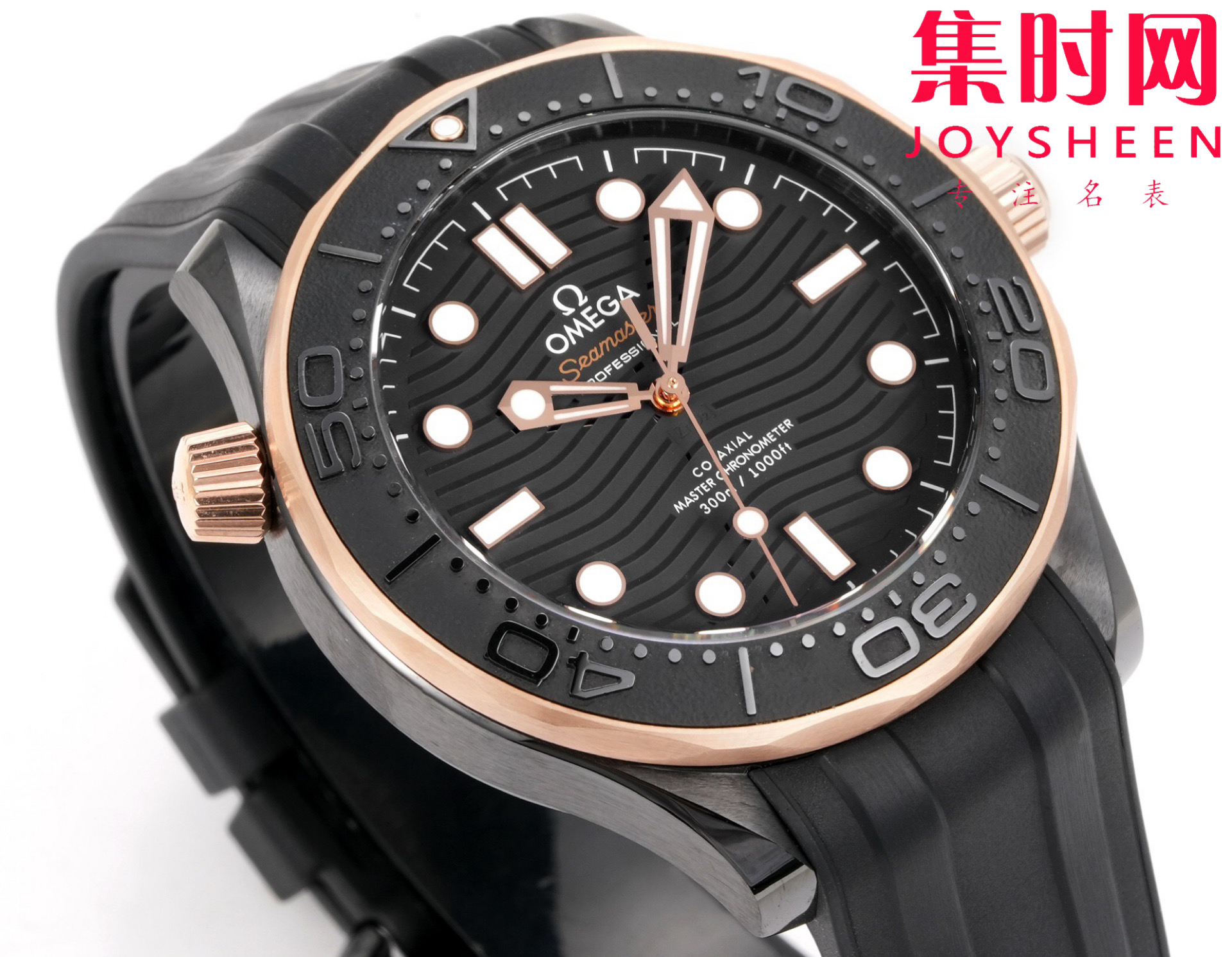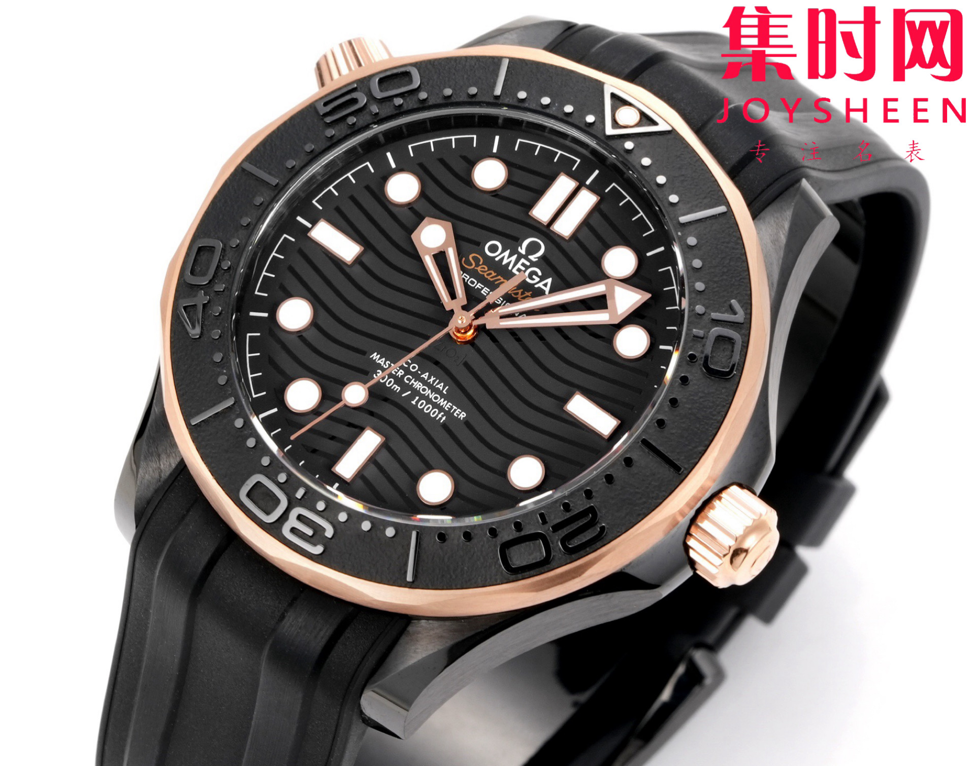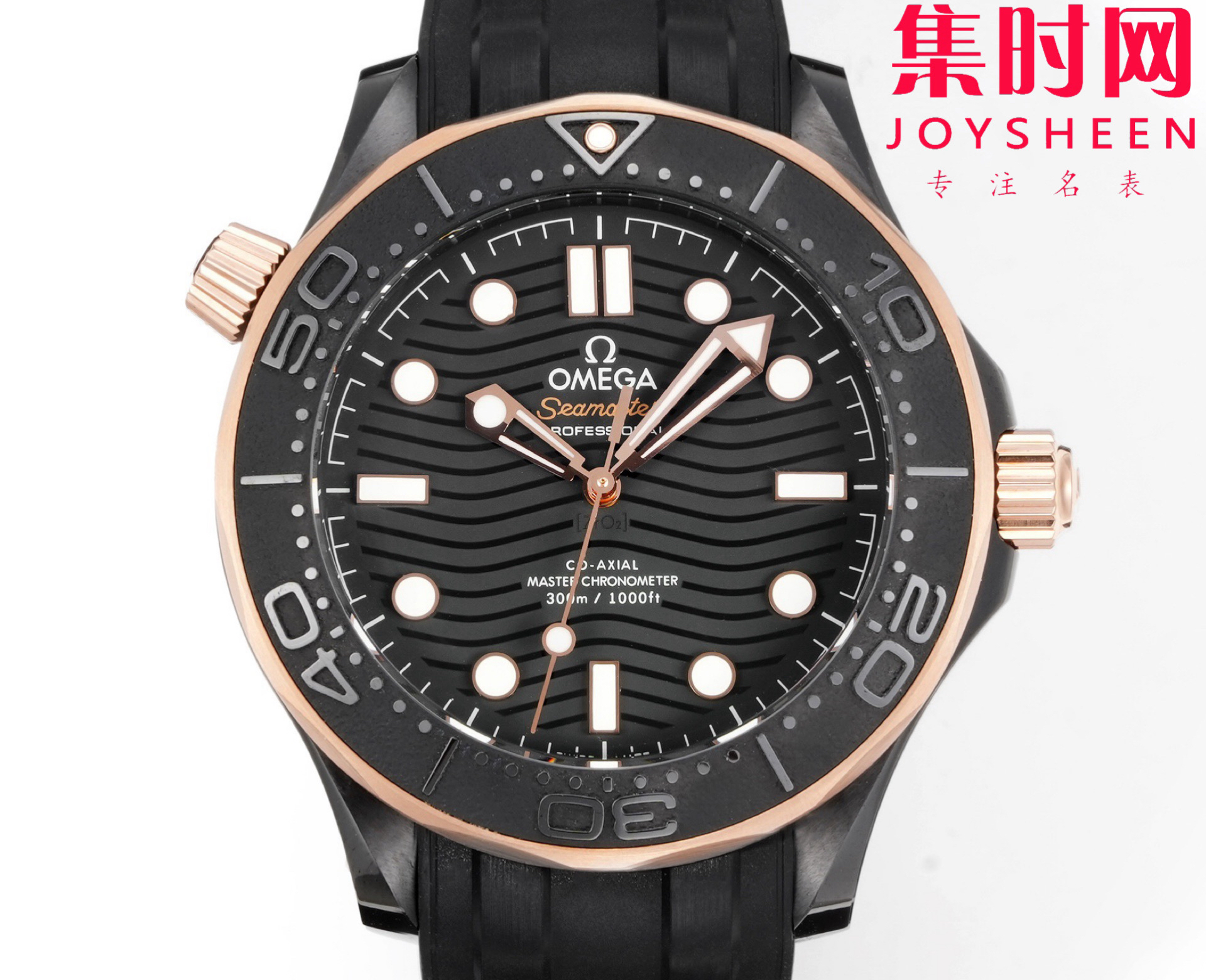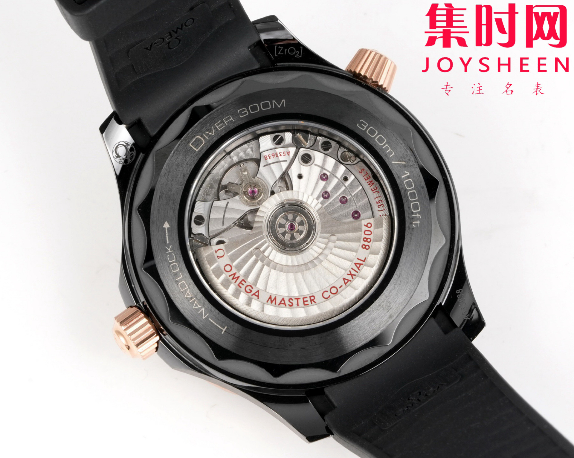 OR欧米茄海马300米系列 间玫金陶瓷海马 黑海马 海马黑武士 陶瓷海马 8806一体机 男士腕表 表径43.5mm 耗时三年半研究开发出真正OR定制Cal.8806一体自动上链机械机芯。