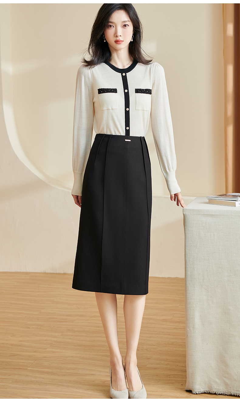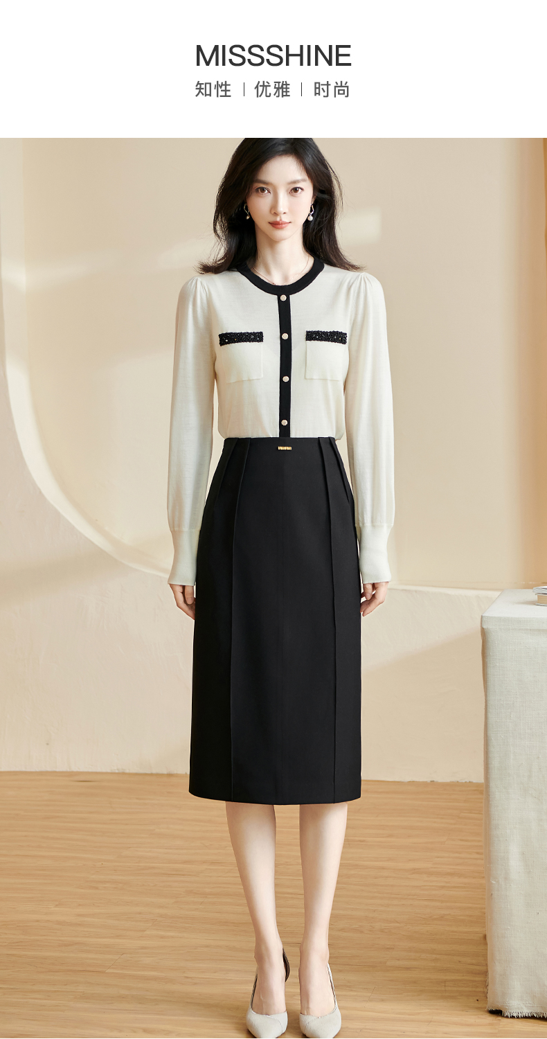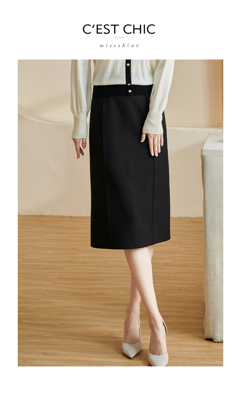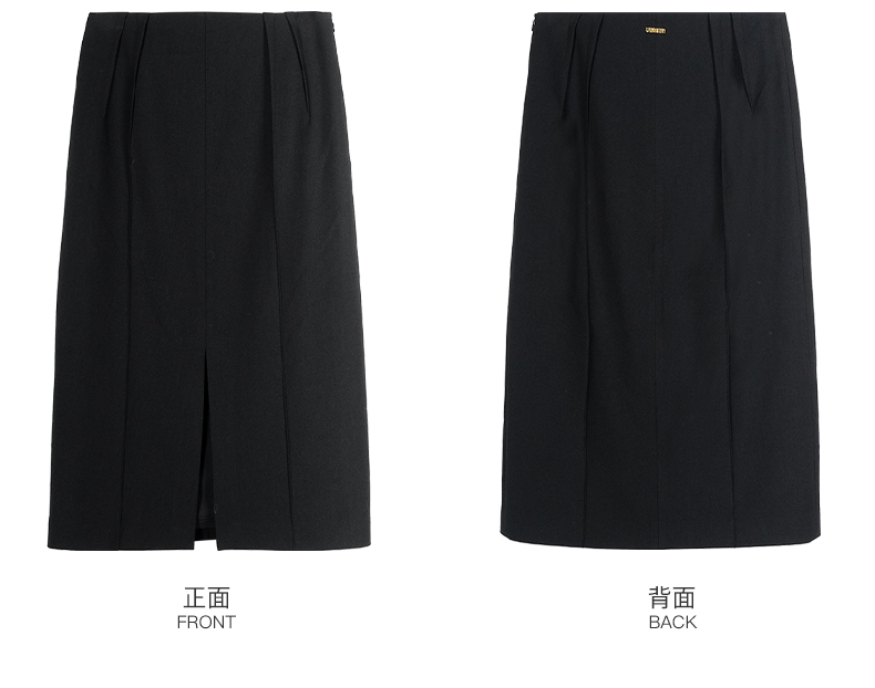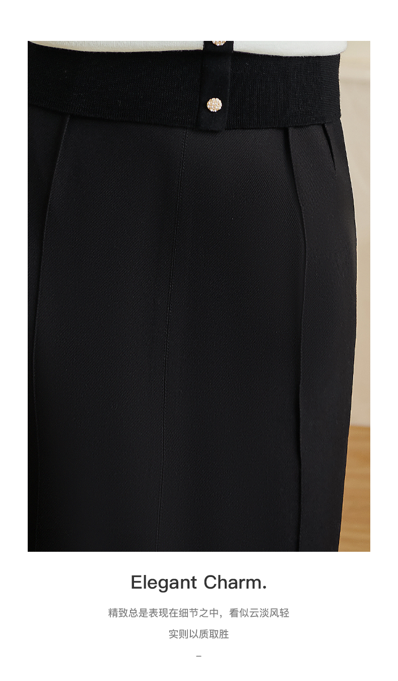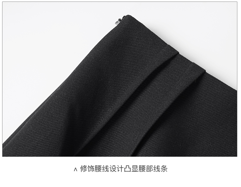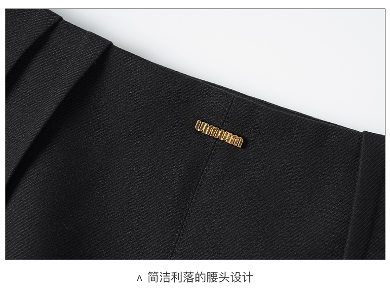 米思阳2024秋季新款时尚百搭黑色半身裙修身褶皱开叉a字裙子2771