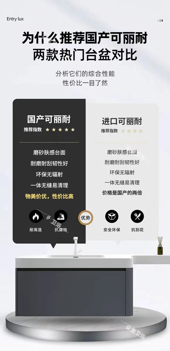 卫浴盆可丽耐马桶轻奢国产洗脸池组合智能浴室柜jbK延长洗手一体