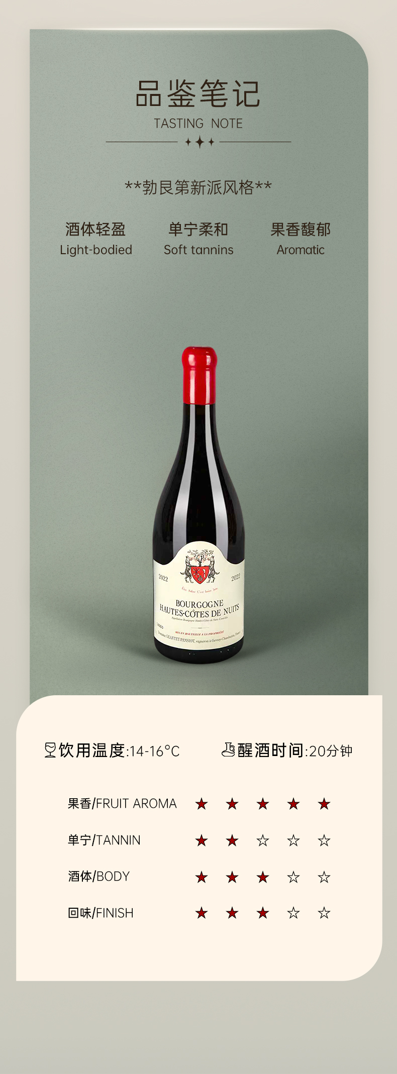 帕西雍酒庄勃艮第上夜丘红葡萄酒2022 Domaine Geantet Pansiot Bourgogne Hautes-Cotes de Nuits Rouge
