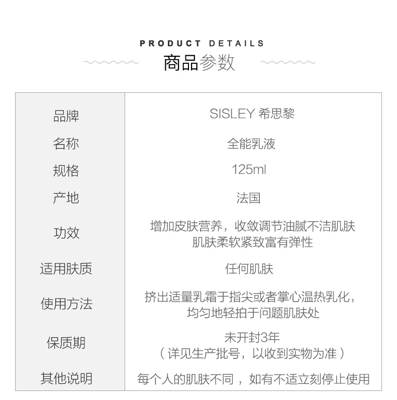 【保税仓直发】Sisley希思黎全能乳升级版 125ml (多妈专属)-维稳大师,万能乳液,敏感肌肤超友好!抗老化,均匀肤色,舒缓保湿,标志性植物清香,好吸收