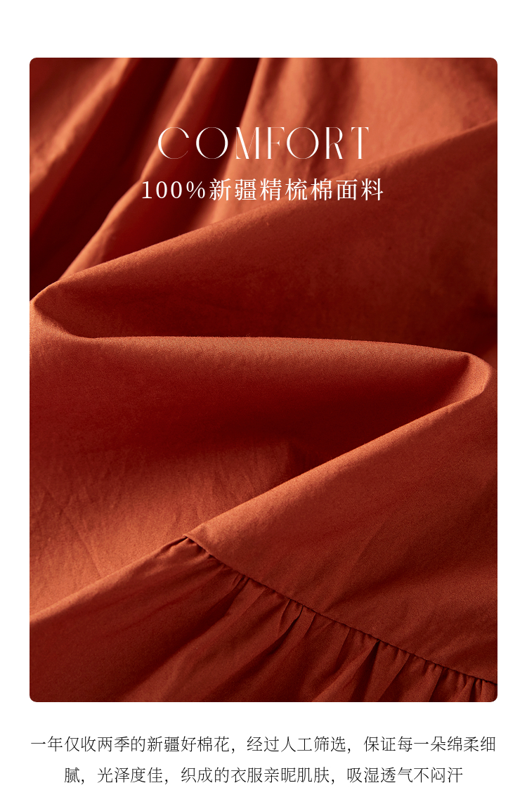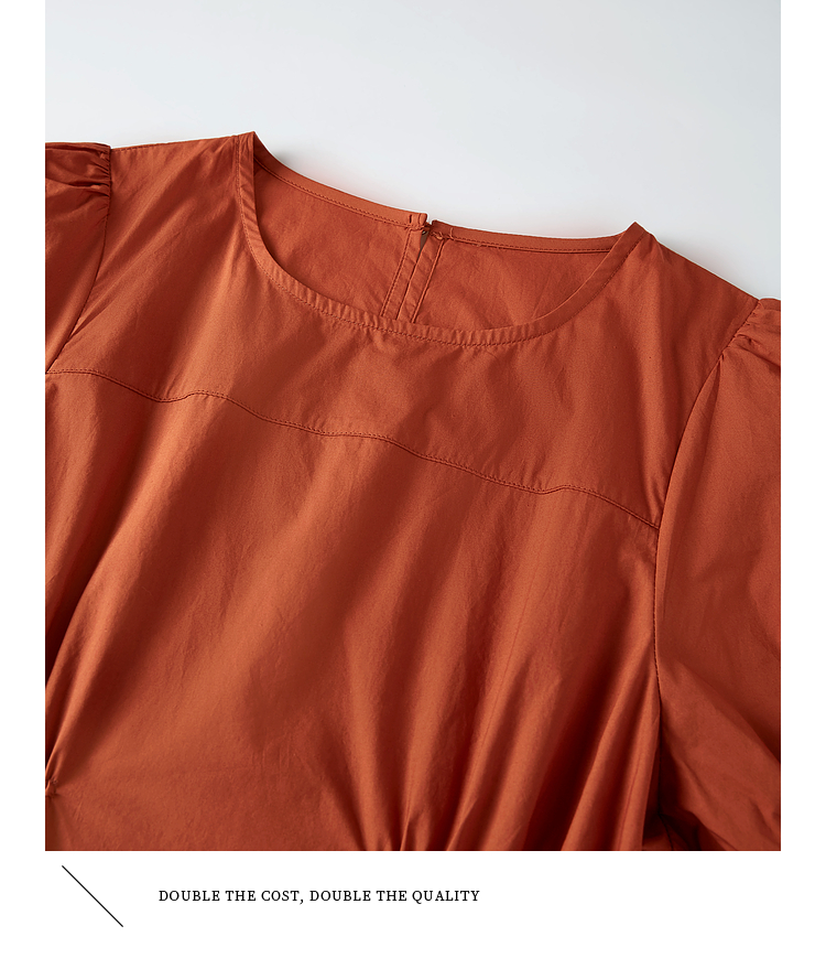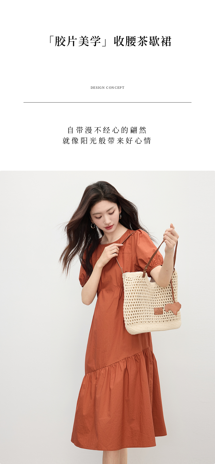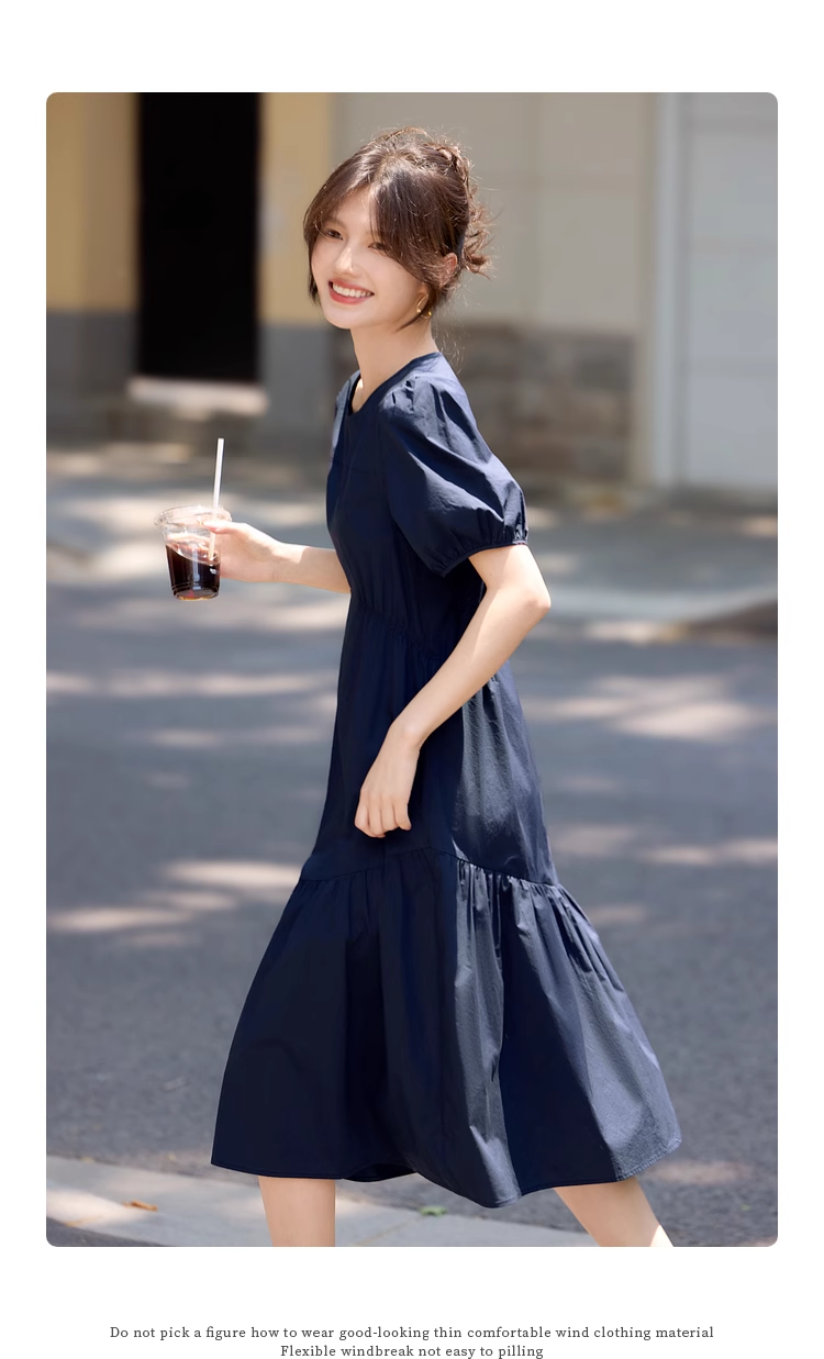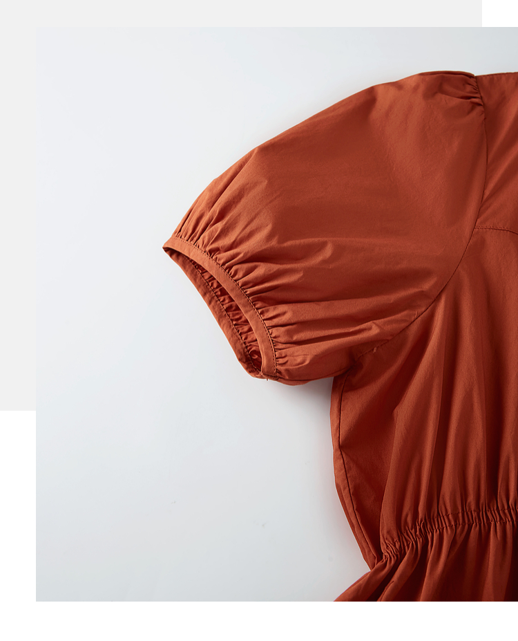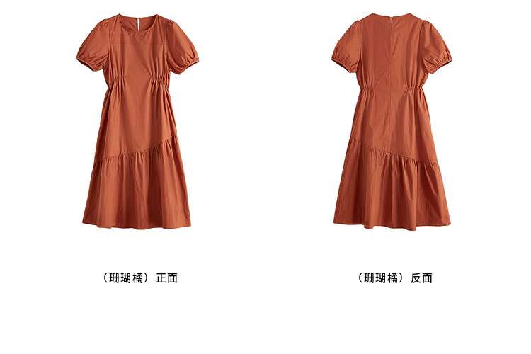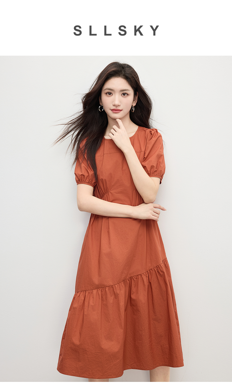 【周四狂欢价】熙世界法式褶皱泡泡袖连衣裙女2025夏天新款收腰显瘦圆领茶歇裙子