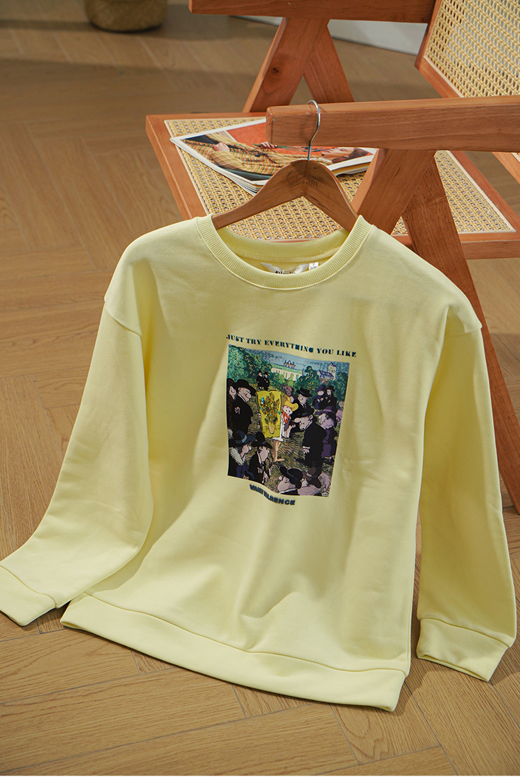 OLrain欧芮儿2025新款女秋季休闲宽松慵懒趣味抽像图案圆领卫衣
