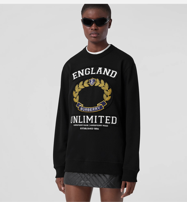 BURBERRY 巴宝莉 女士学院风图案棉质宽松运动卫衣 黑色 8065061 A1189