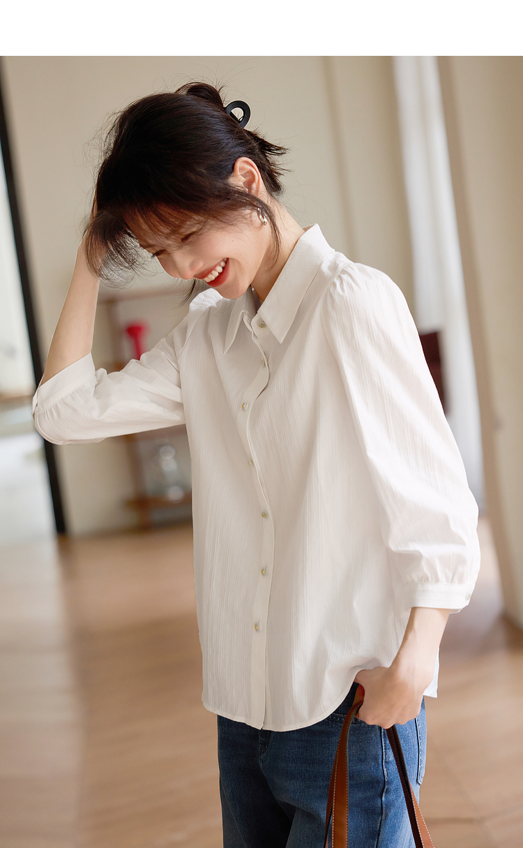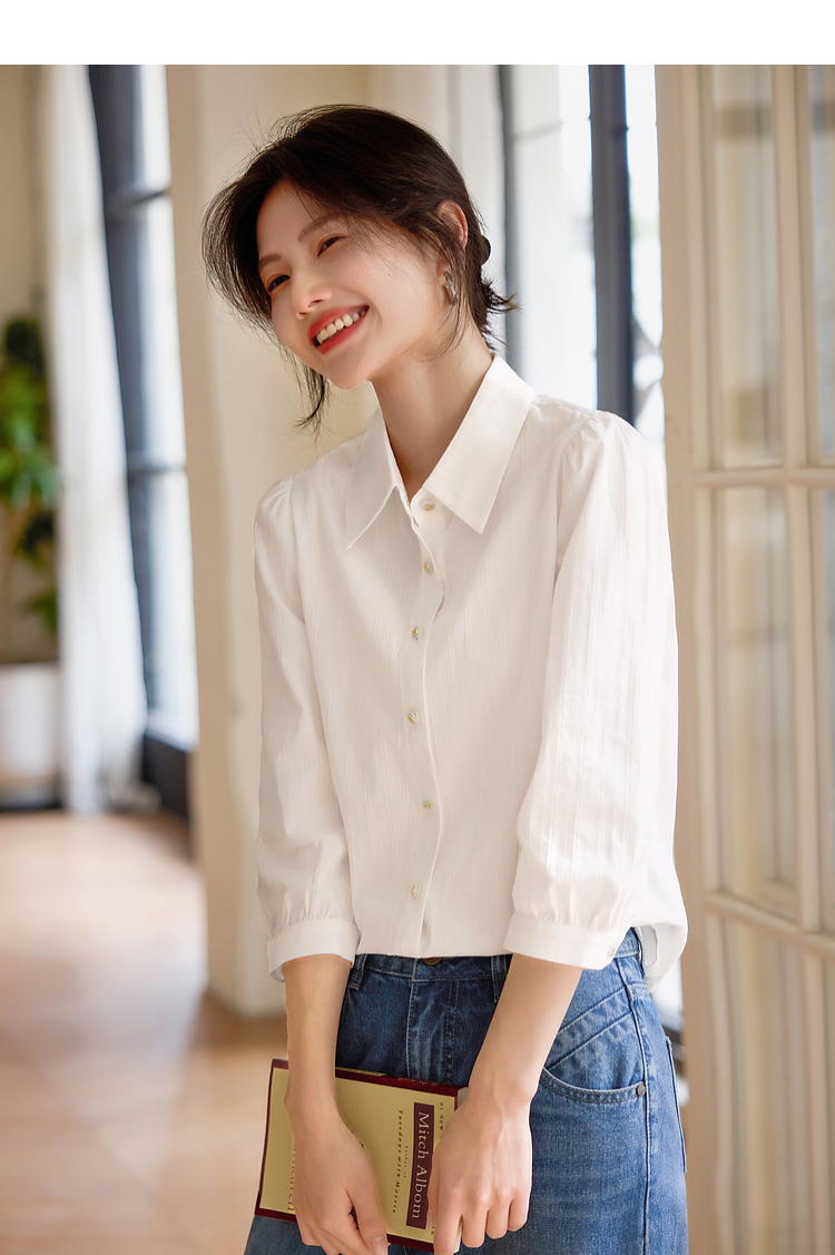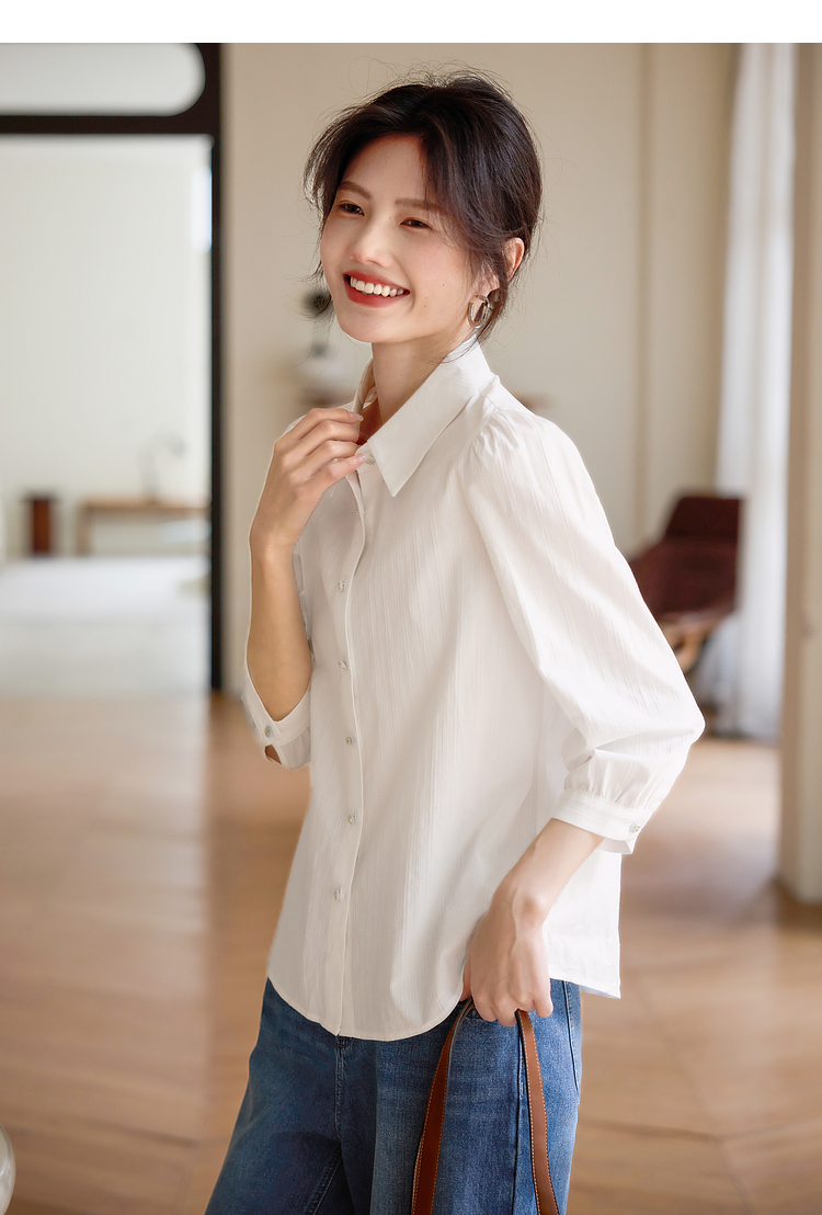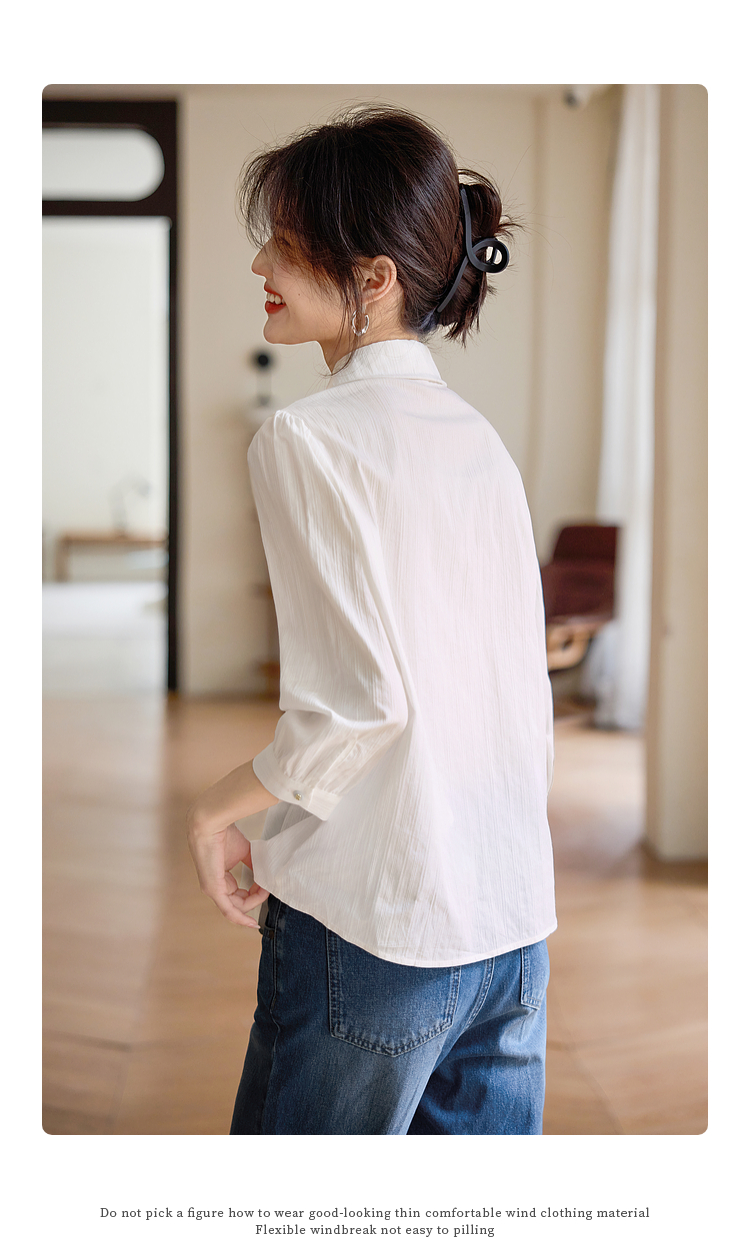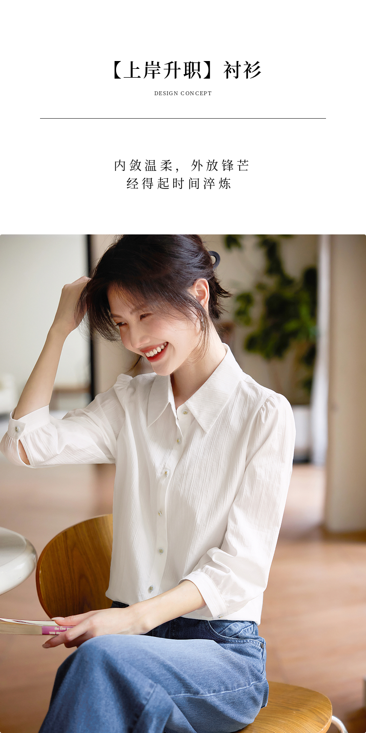 【夏日新品】熙世界法式白色衬衫女上衣2025春秋新款高级感长袖肌理感纯棉衬衣