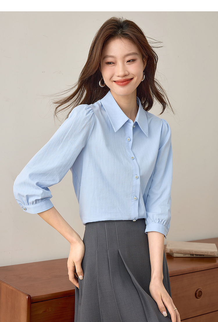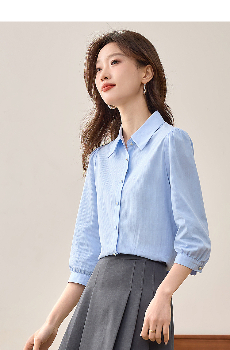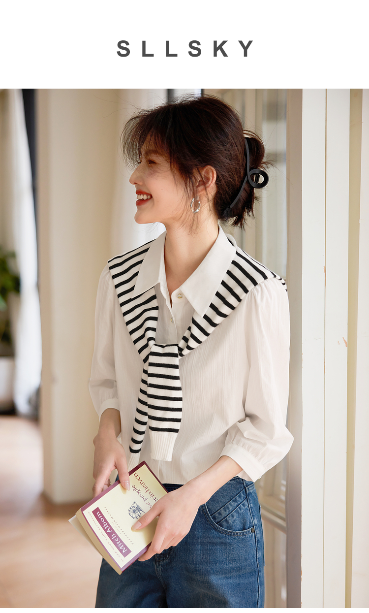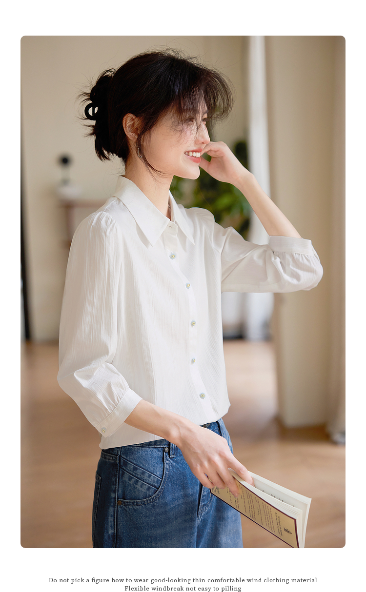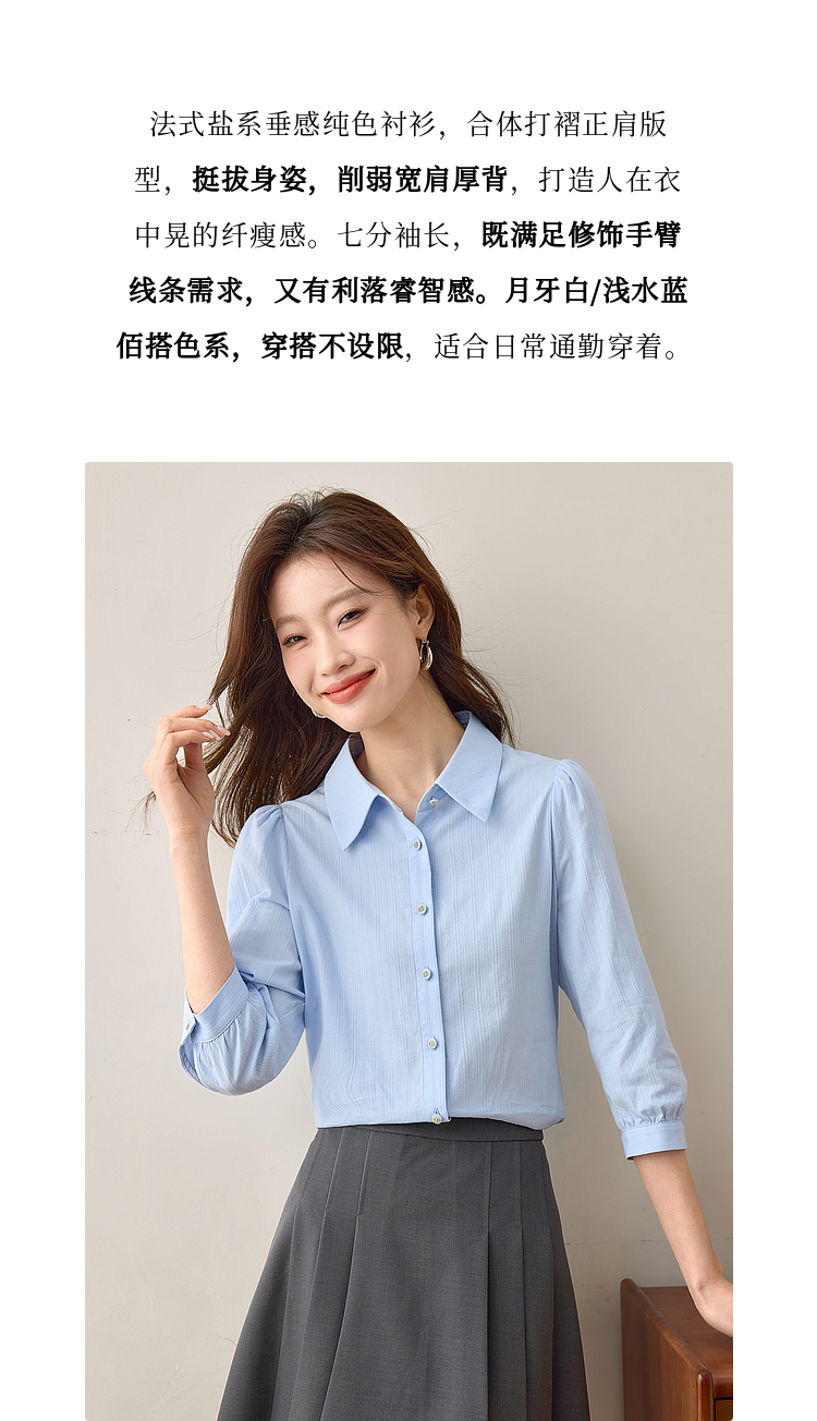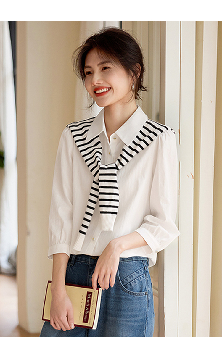 【夏日新品】熙世界法式白色衬衫女上衣2025春秋新款高级感长袖肌理感纯棉衬衣