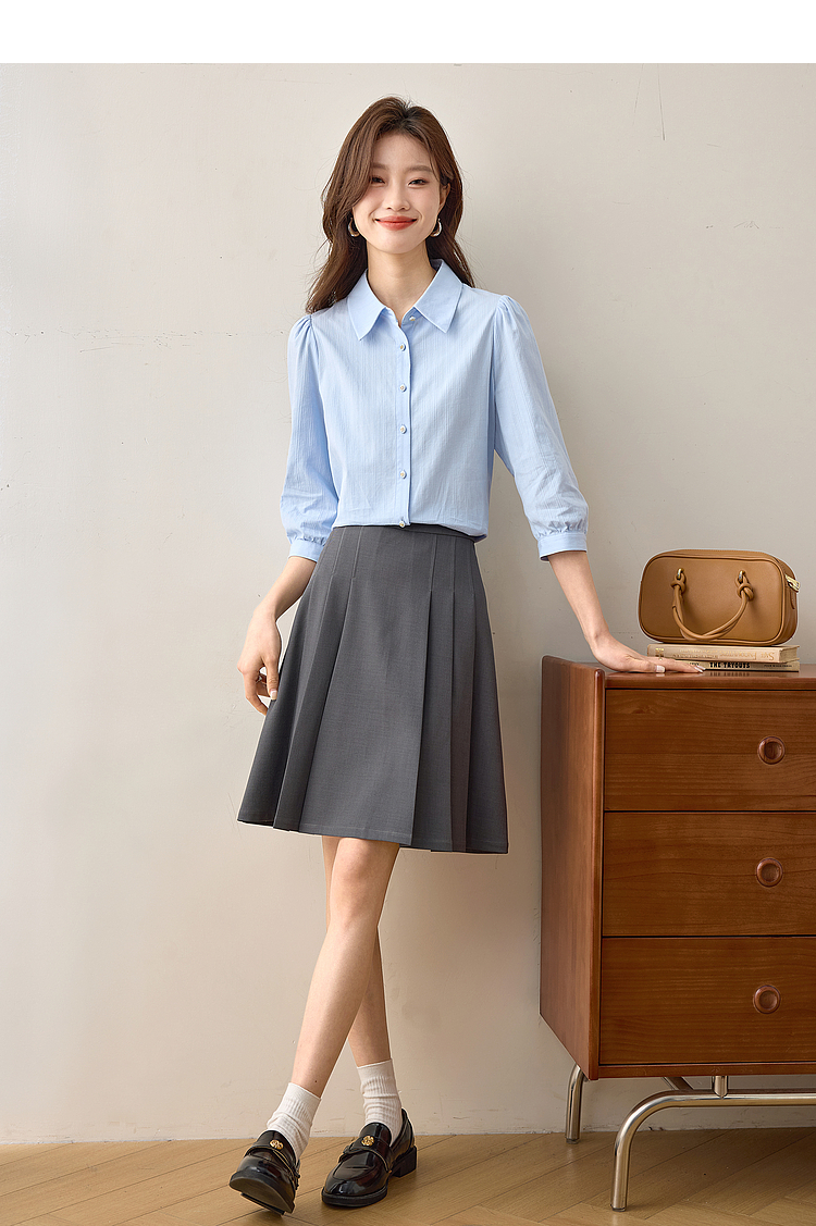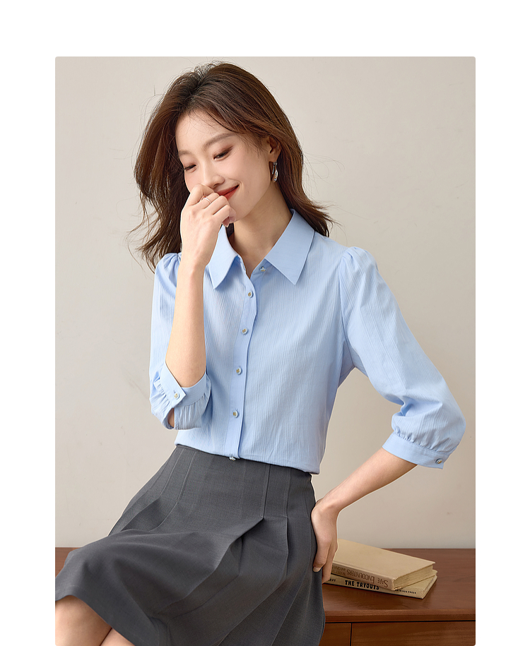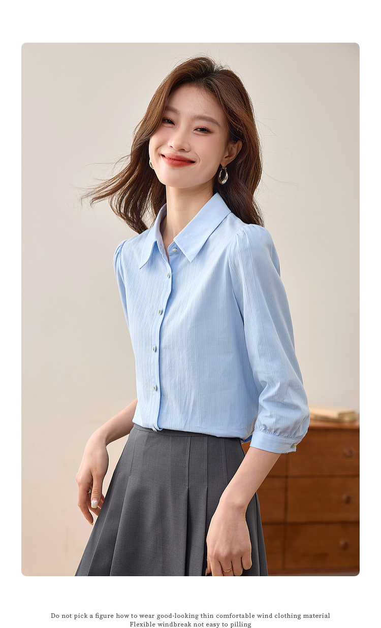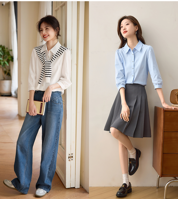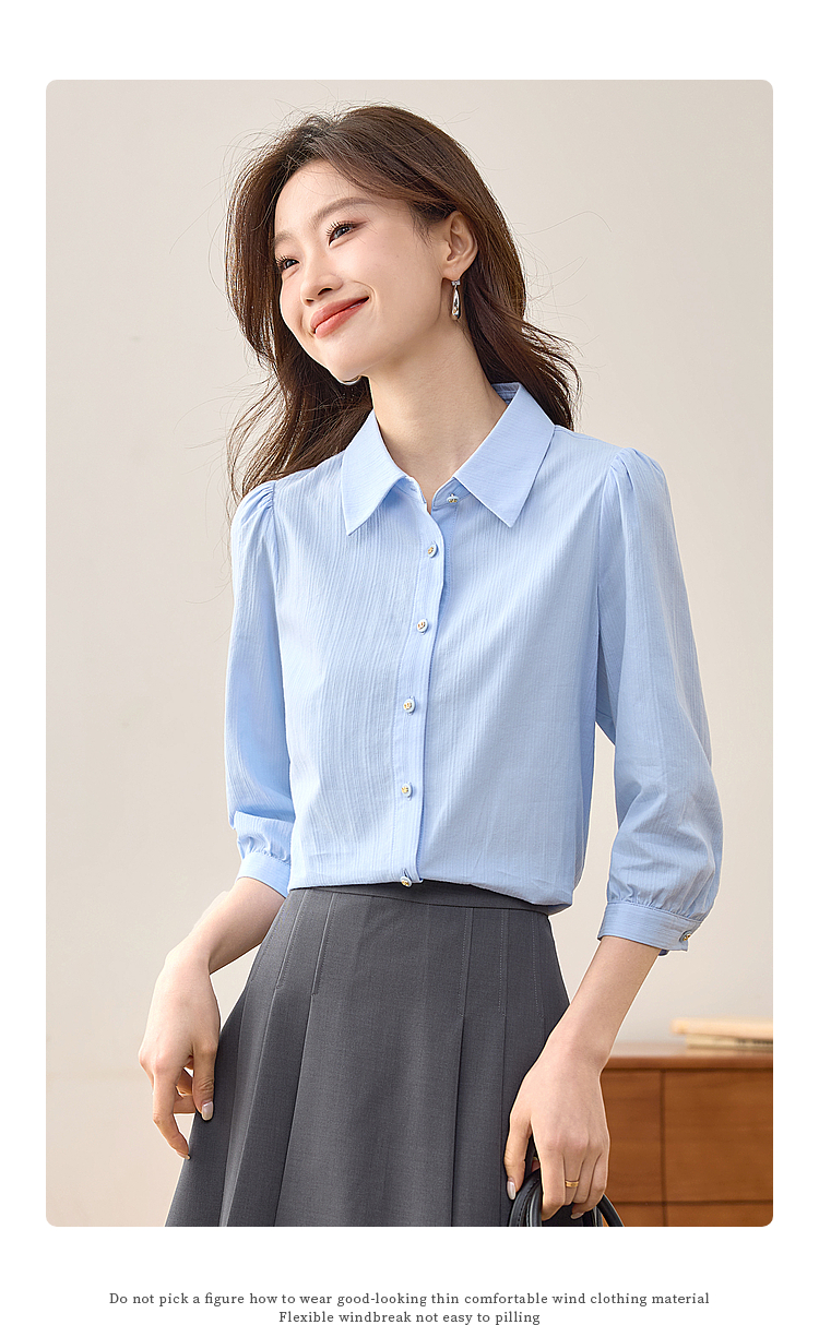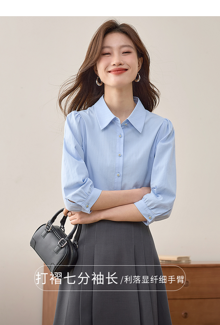 【夏日新品】熙世界法式白色衬衫女上衣2025春秋新款高级感长袖肌理感纯棉衬衣