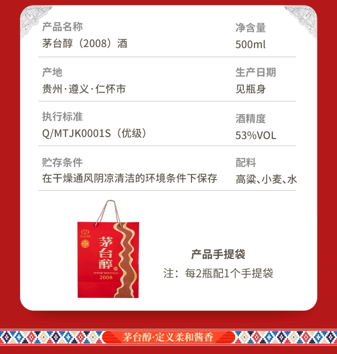茅台醇2008 500ml/瓶