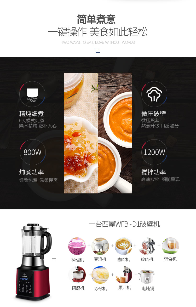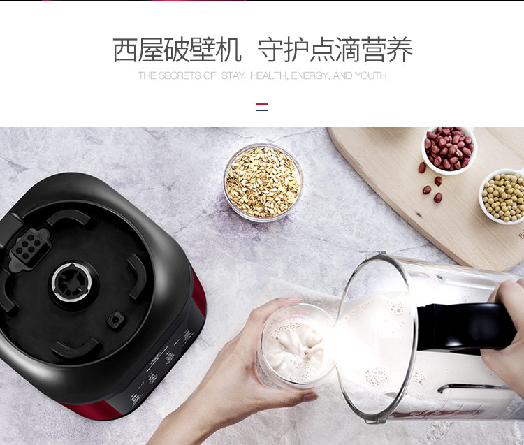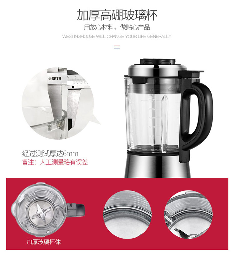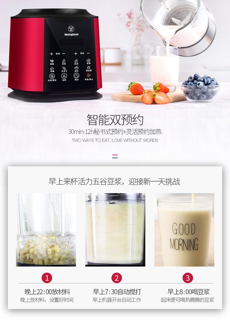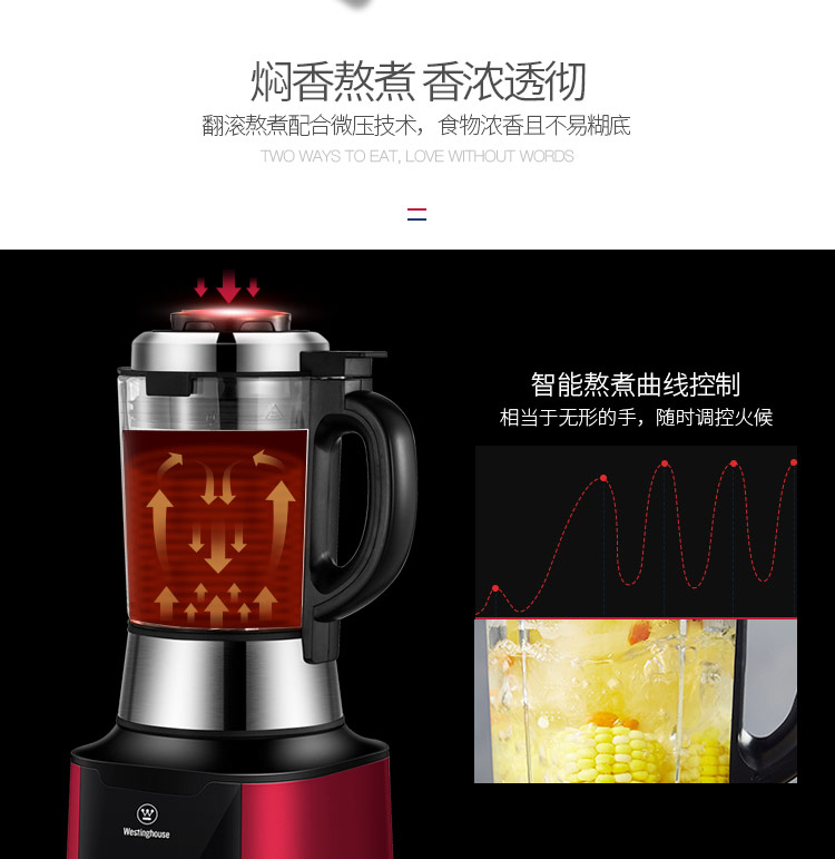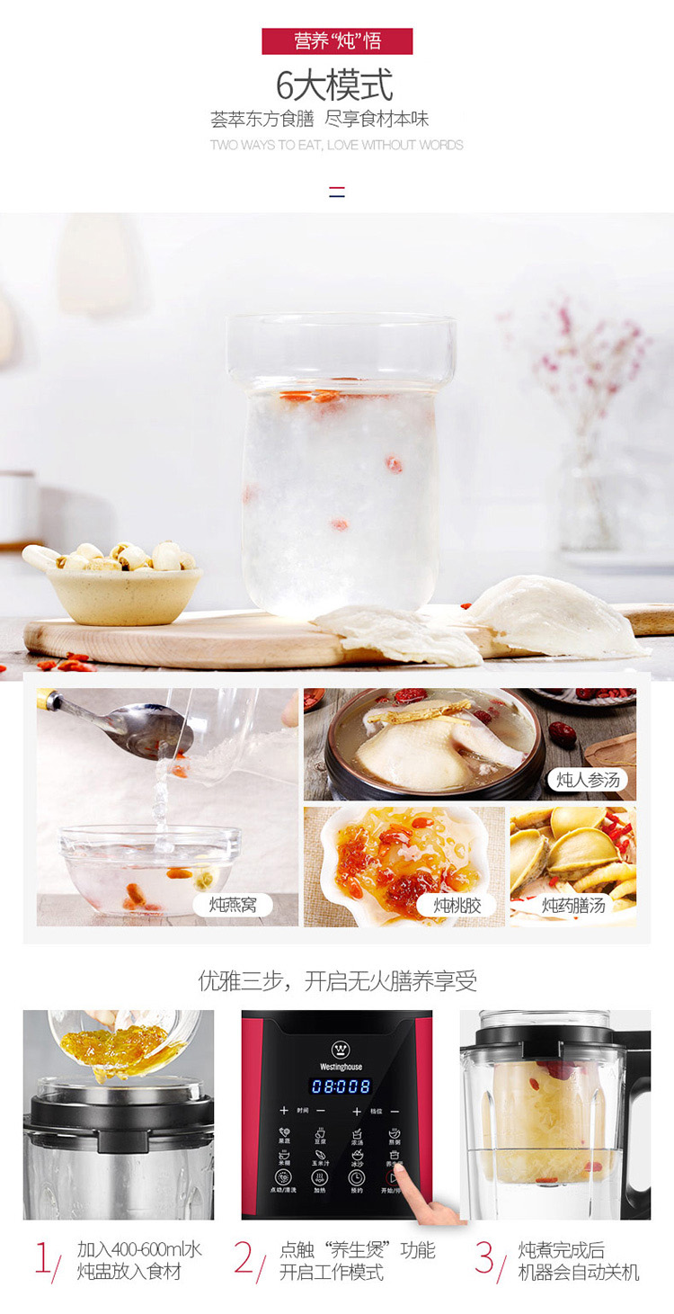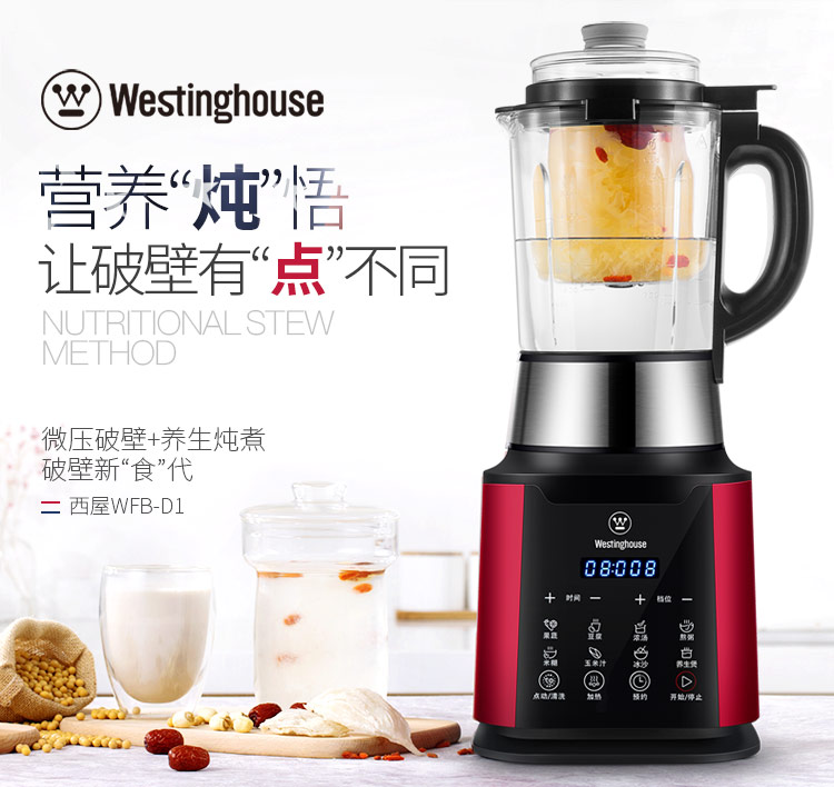 西屋(Westinghouse)破壁机加热家用多功能辅食机智能微压养生破壁料理机预约保温WFB-D1(磨砂红)