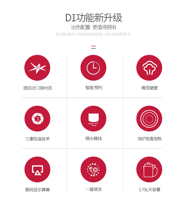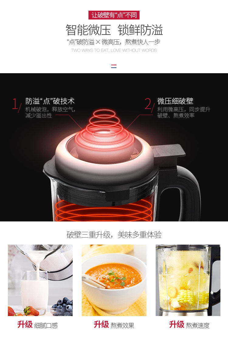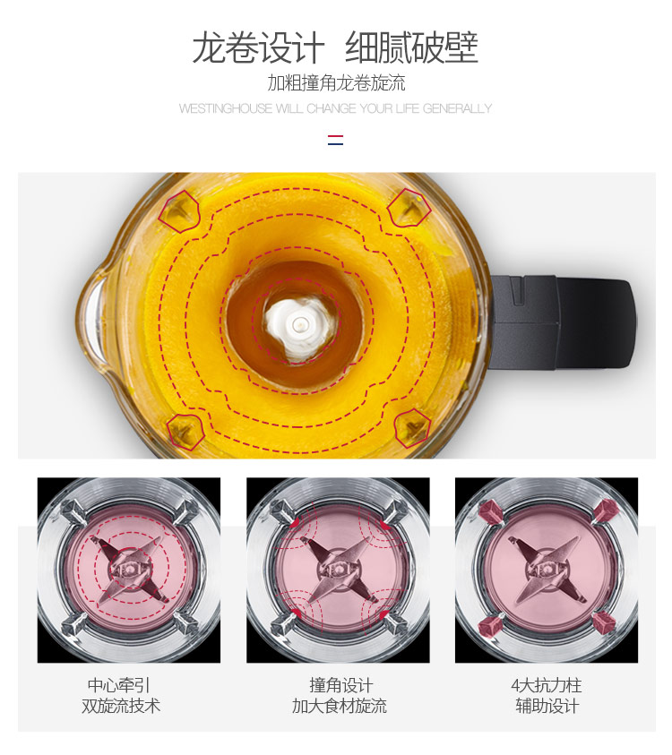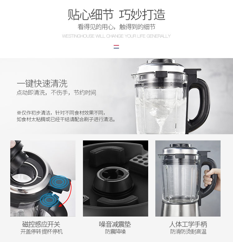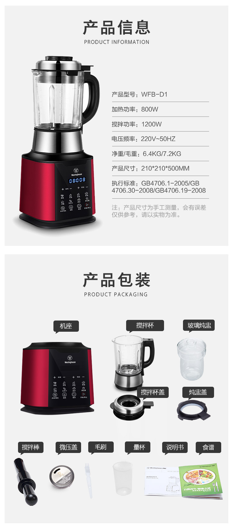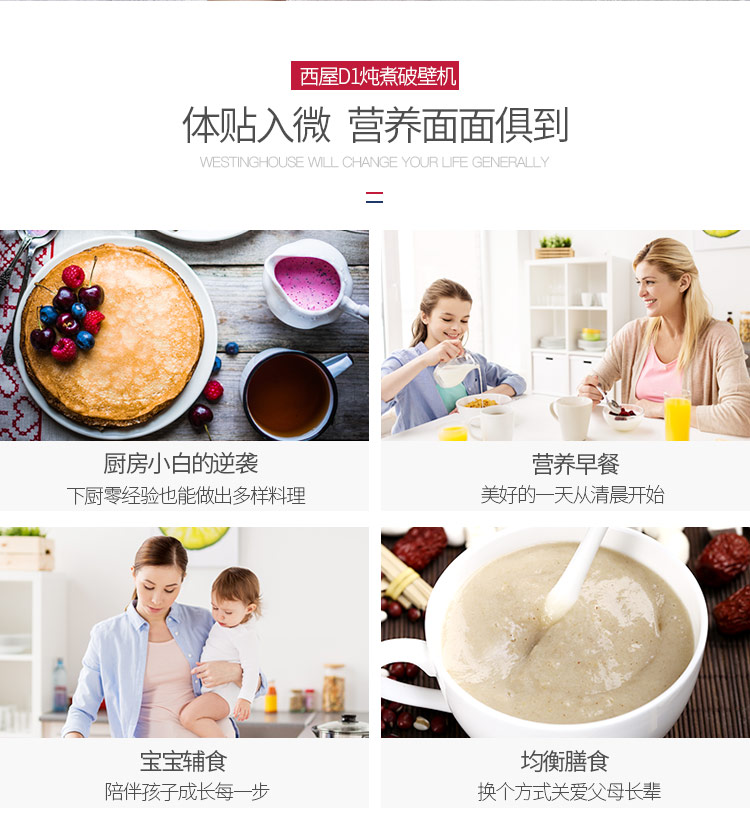 西屋(Westinghouse)破壁机加热家用多功能辅食机智能微压养生破壁料理机预约保温WFB-D1(磨砂红)
