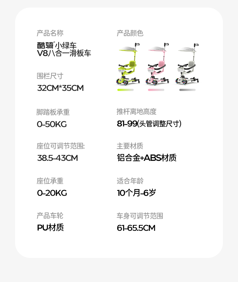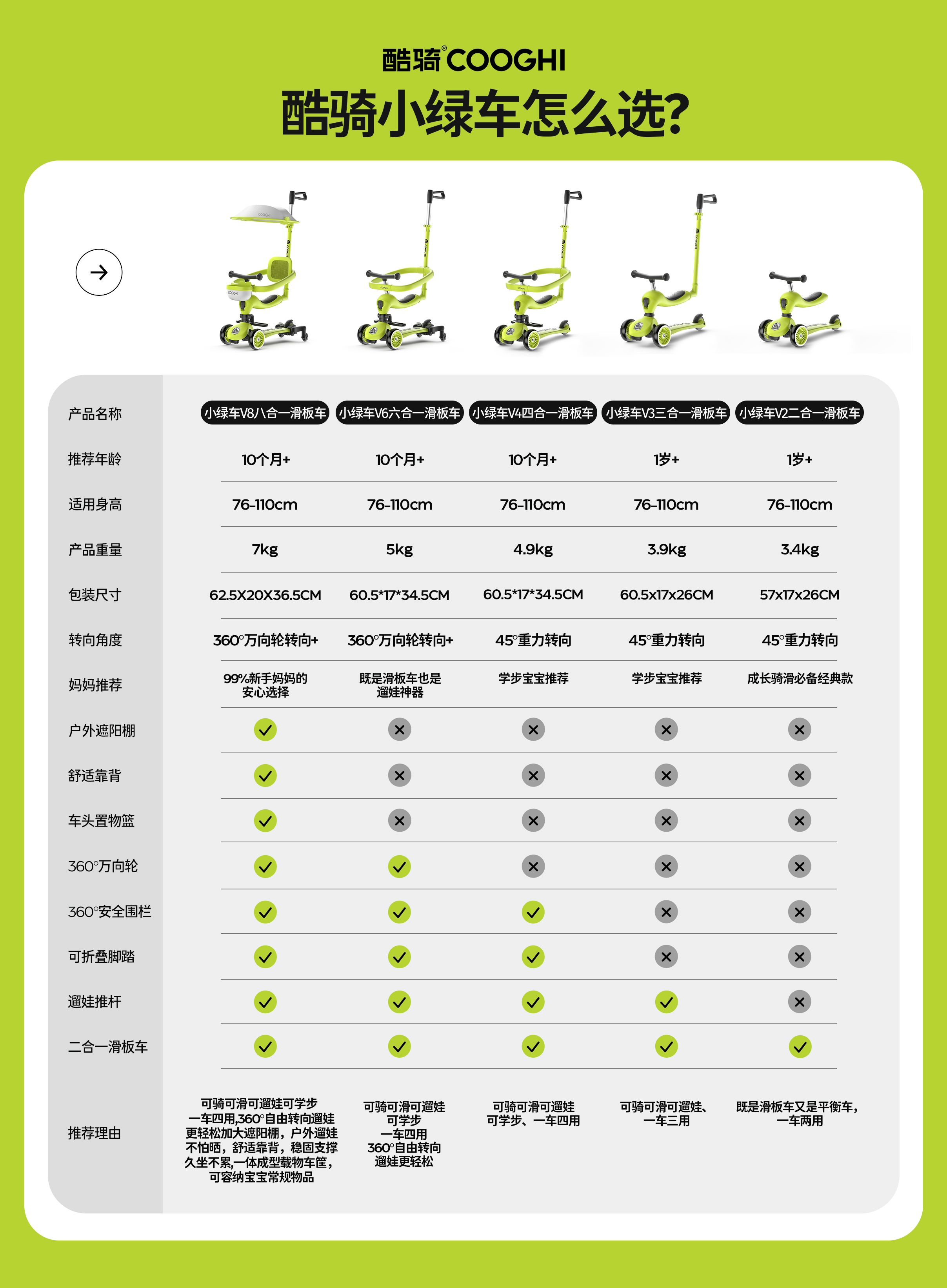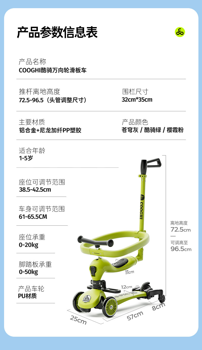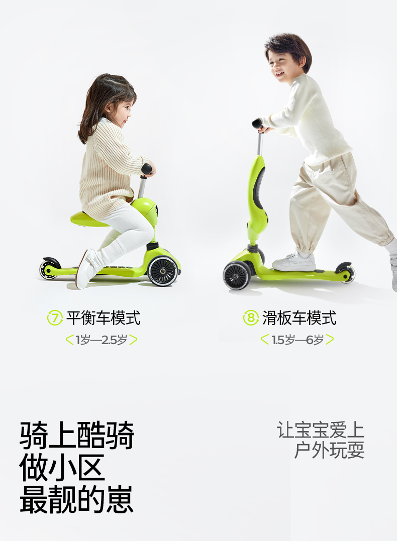 【酷骑COOGHI】儿童滑板车V系列 即是滑板车也是溜娃神器 溜溜车学步滑车 二合一/六合一/八合一