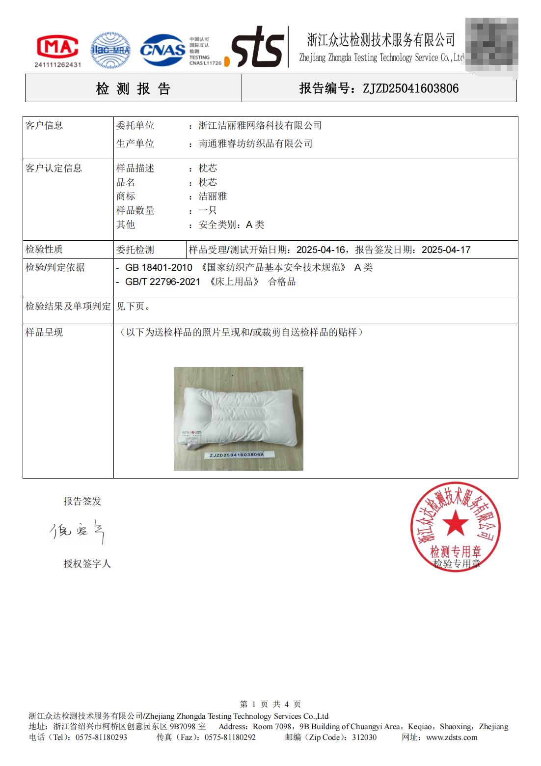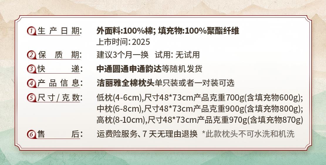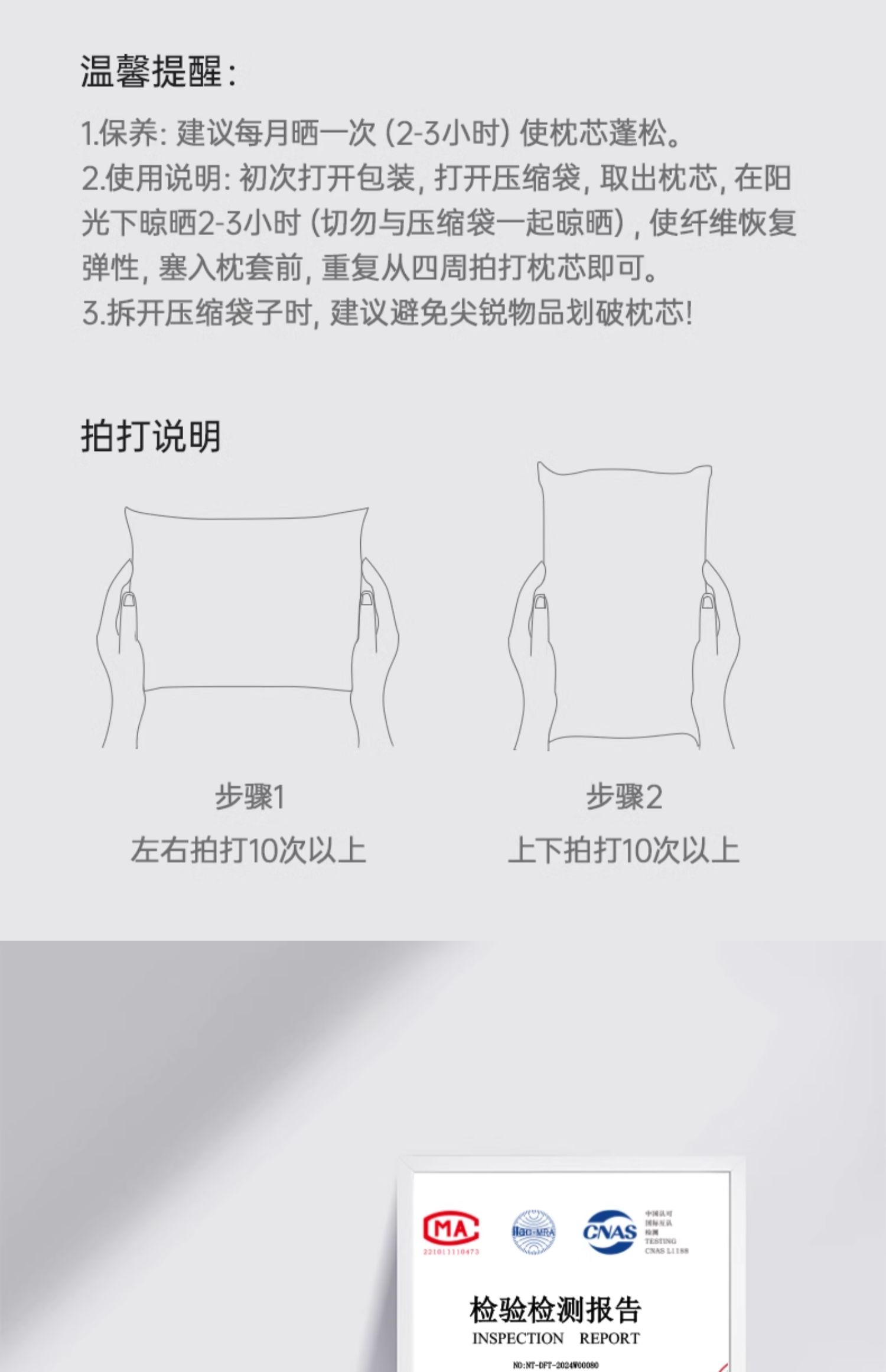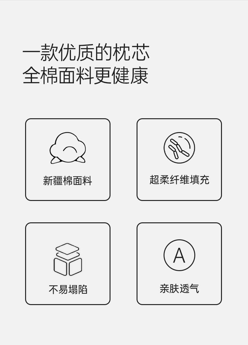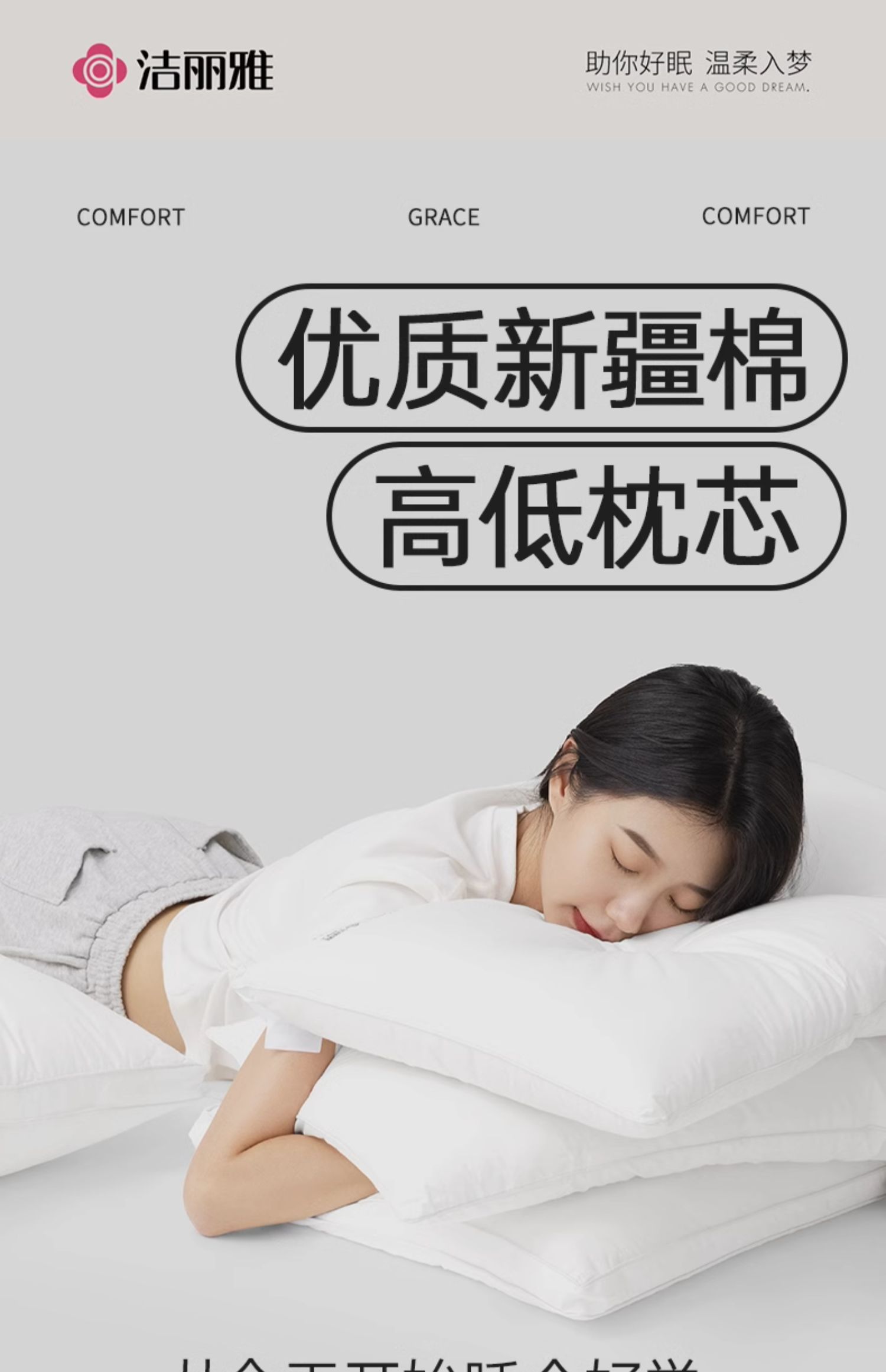 洁丽雅纯棉枕头助眠枕芯清凉柔软蓬松单人家用高弹酒店枕头芯成人