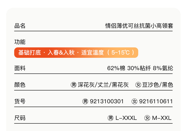 【抑菌优可丝】爱帝男/女式秋冬亲肤保暖内衣套装