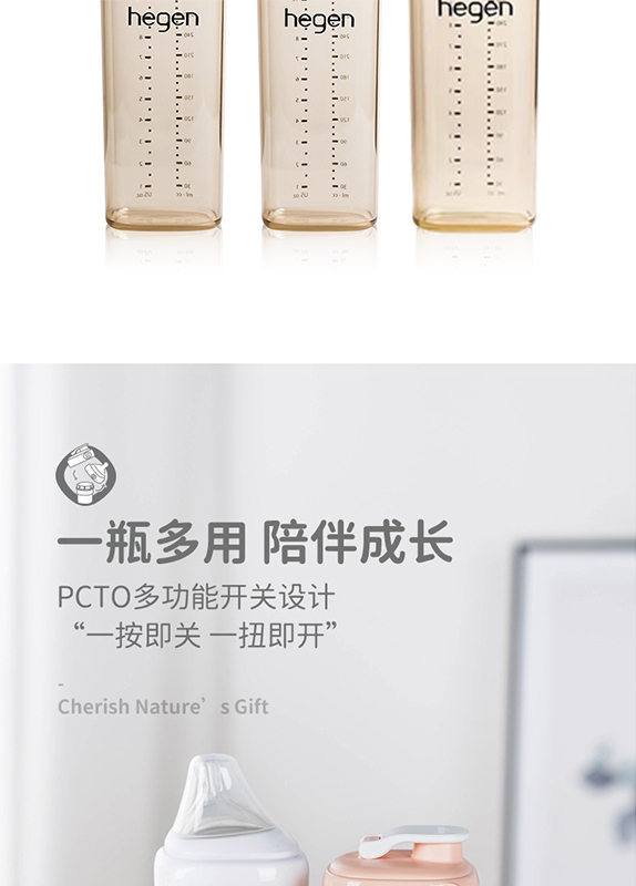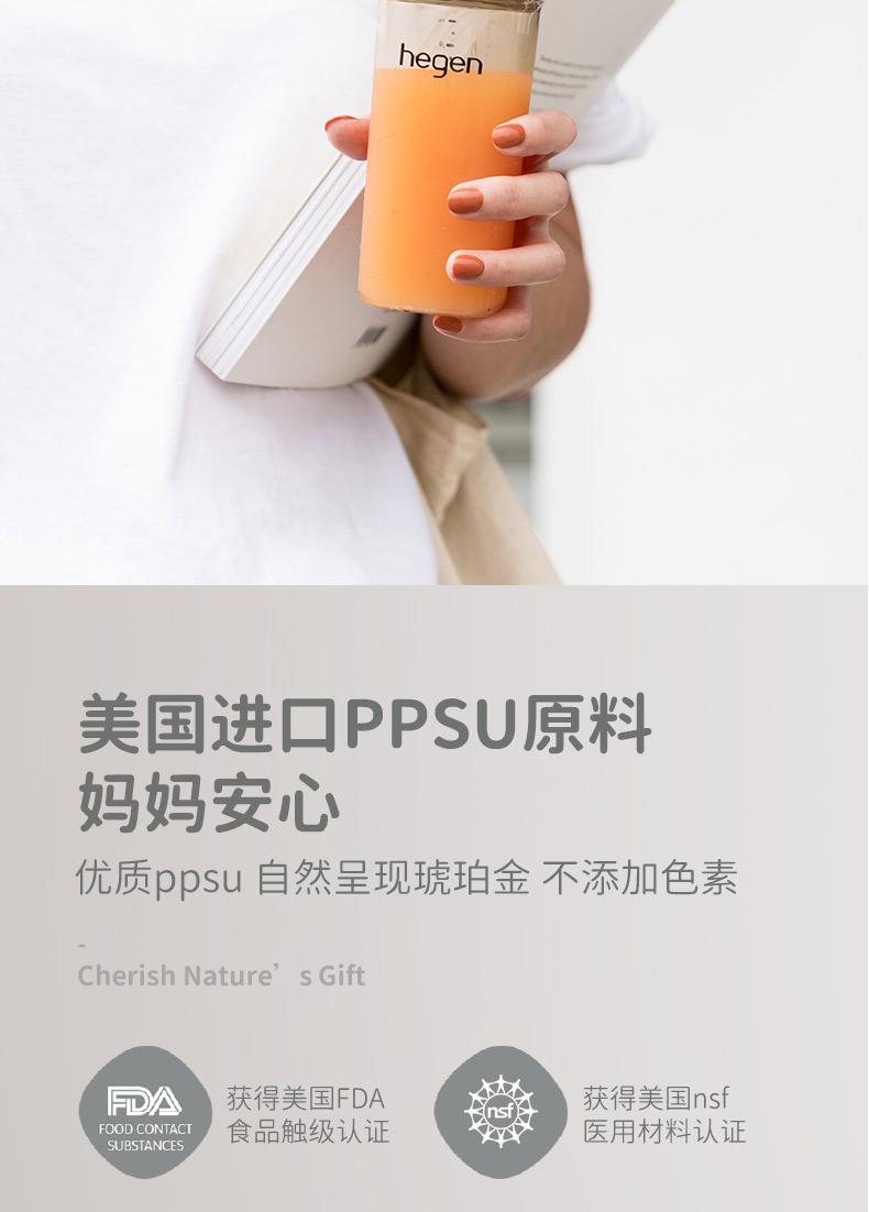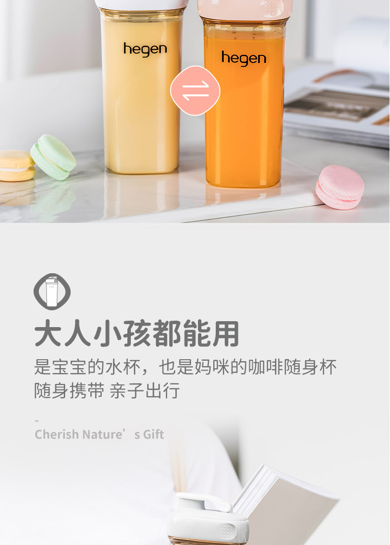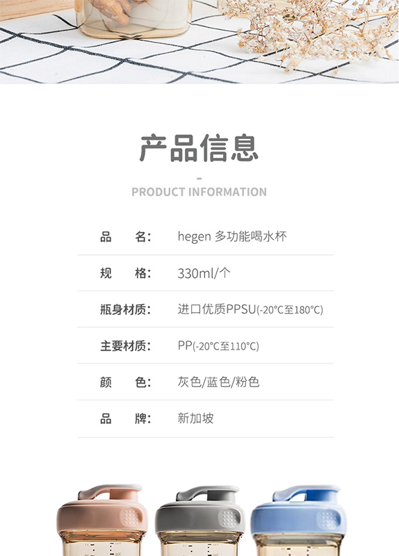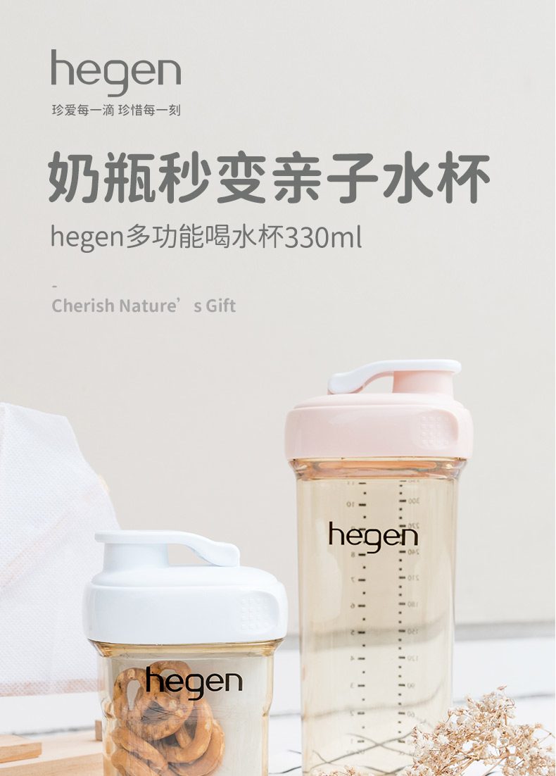 新加坡Hegen多功能喝水杯原装进口限量版宽口径PPSU亲子喝水杯奶瓶330ml
