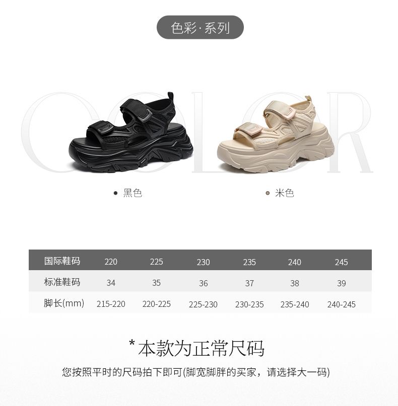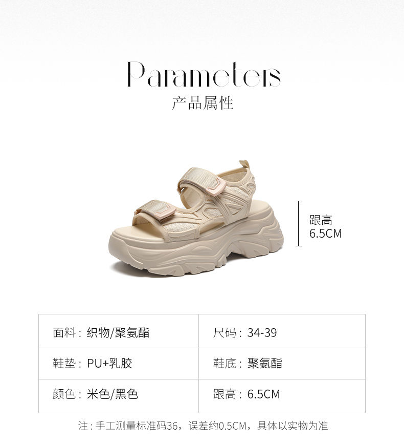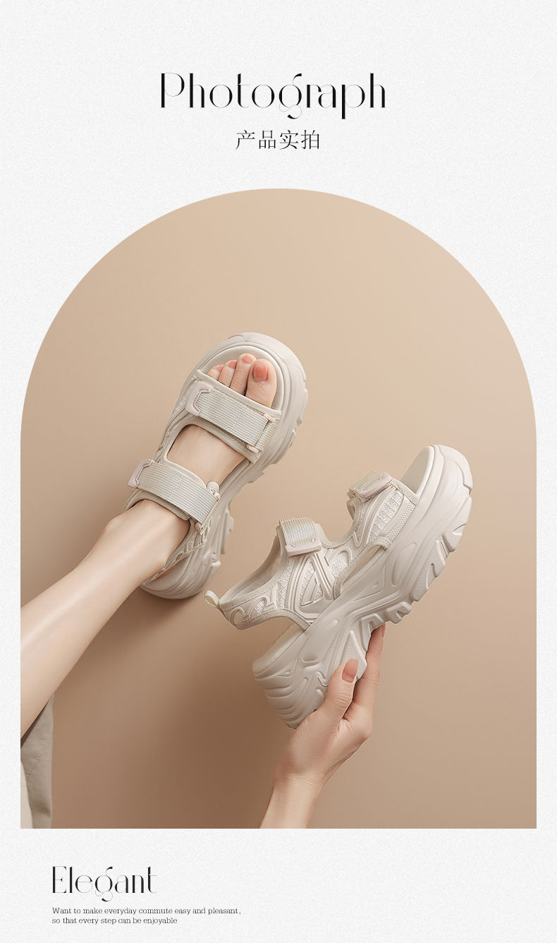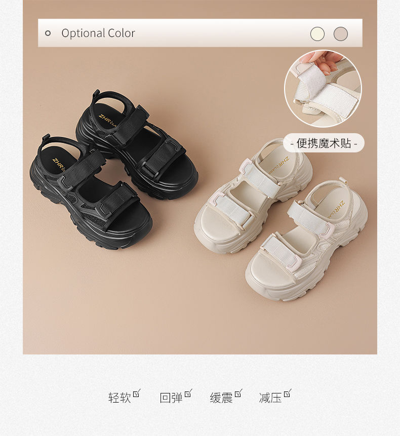 ZHR则则运动凉鞋女外穿休闲魔术贴增高厚底百搭户外运动沙滩女鞋
