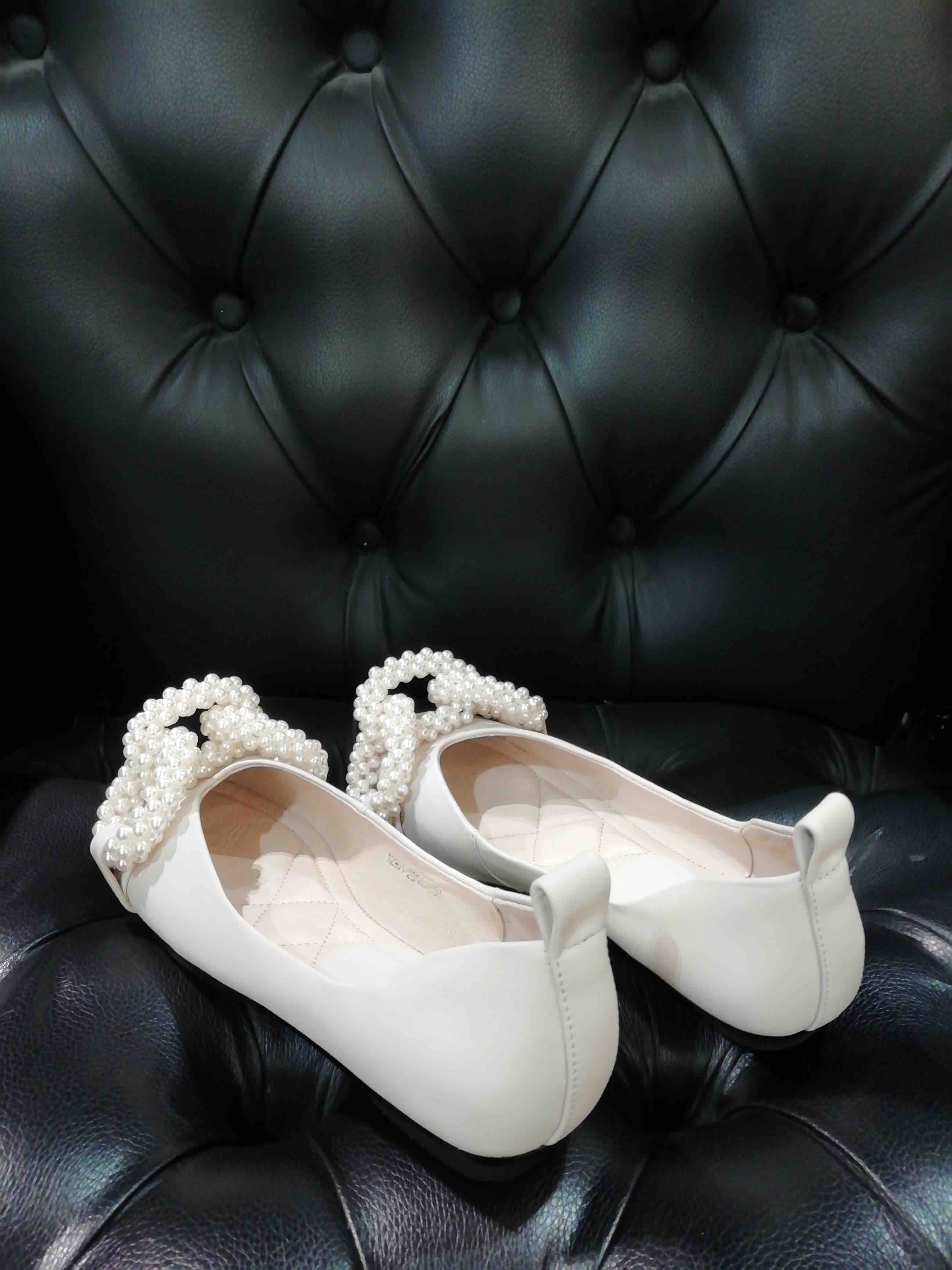 LFGJ 12901 珍珠舞蹈鞋浅口单鞋女软皮软底奶奶鞋