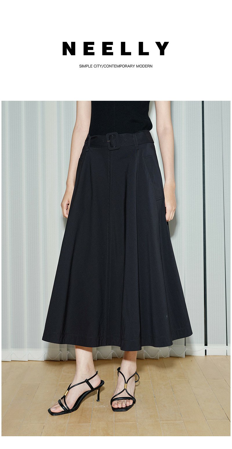 NEELLY纳俪商场同款夏季新款简约高腰显瘦A字裙女气质百搭半身裙N26044E04407
