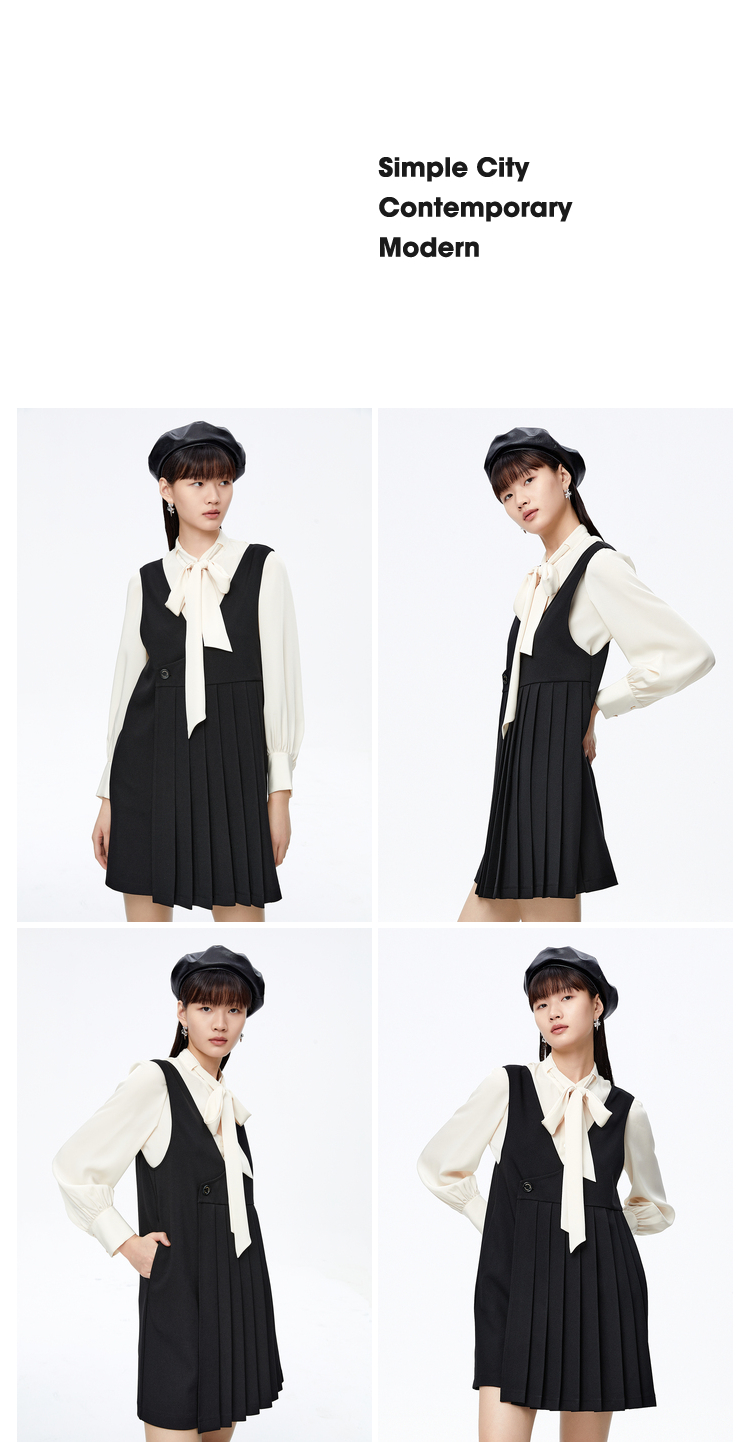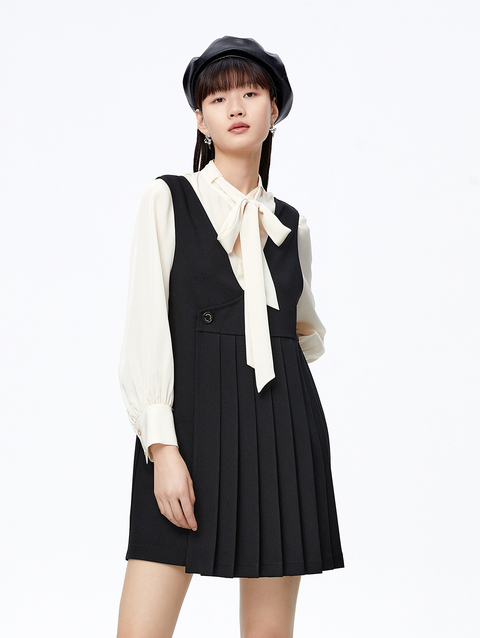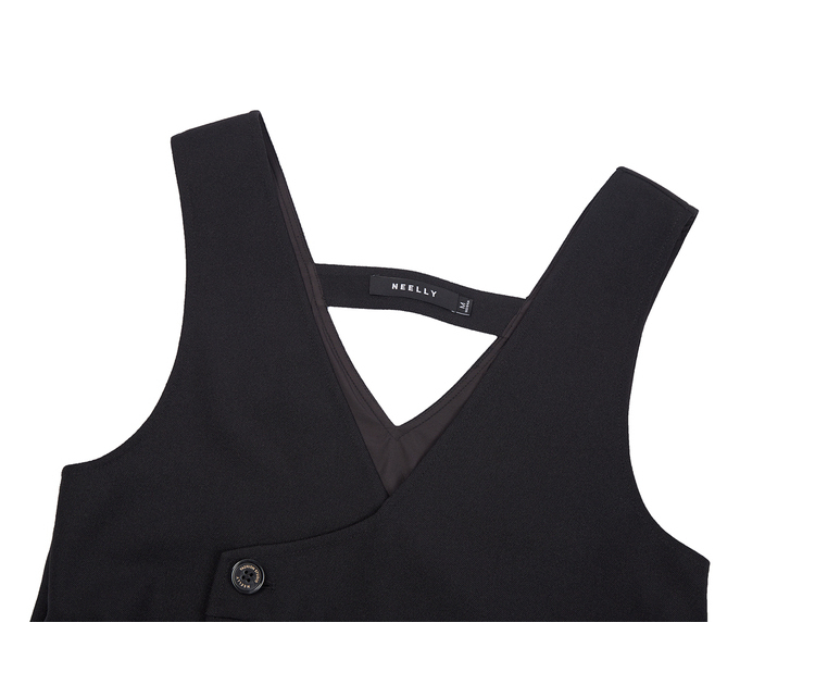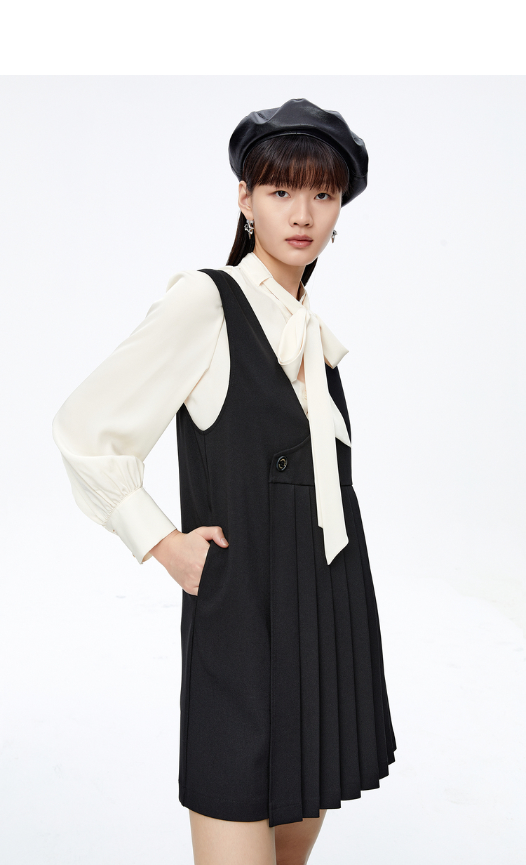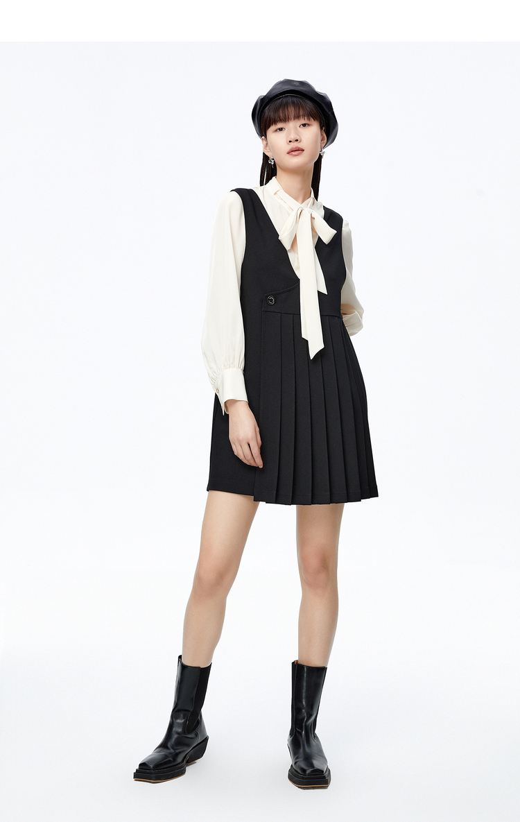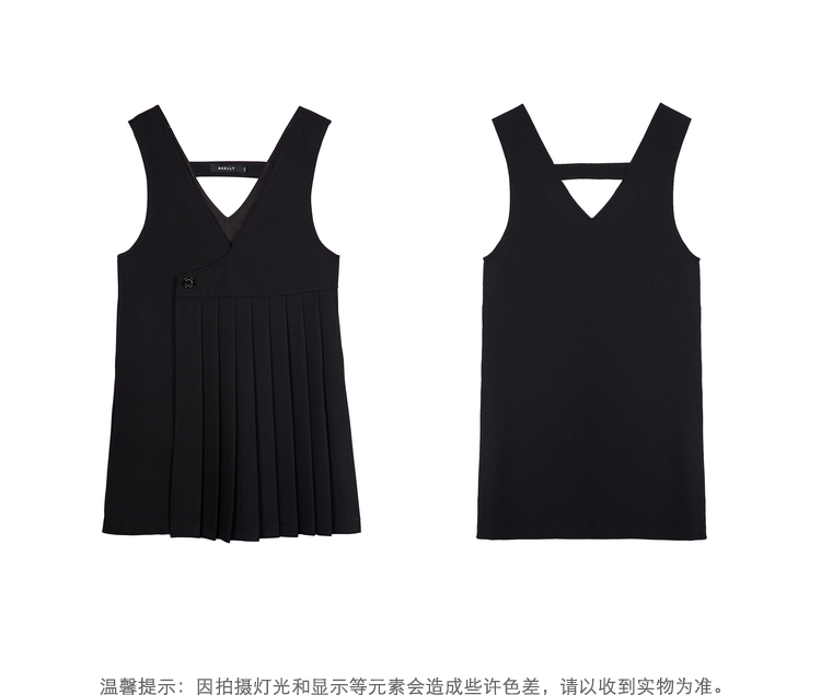NEELLY纳俪商场同款背带连衣裙女中长款设计感套头百褶A字裙秋季