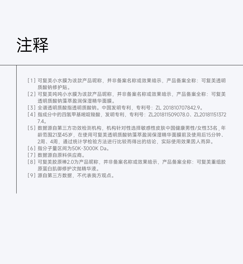 新版 可复美透明质酸钠水润贴 大水膜 贴片面膜(新老版本随机发货)