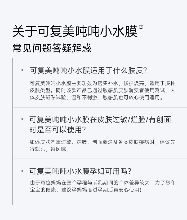 可复美吨吨小水膜补水保湿 修护舒缓敏感肌贴片面膜