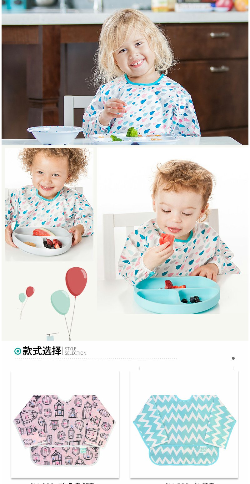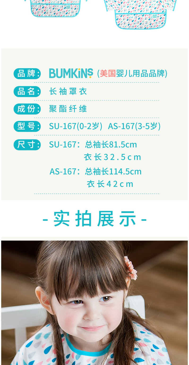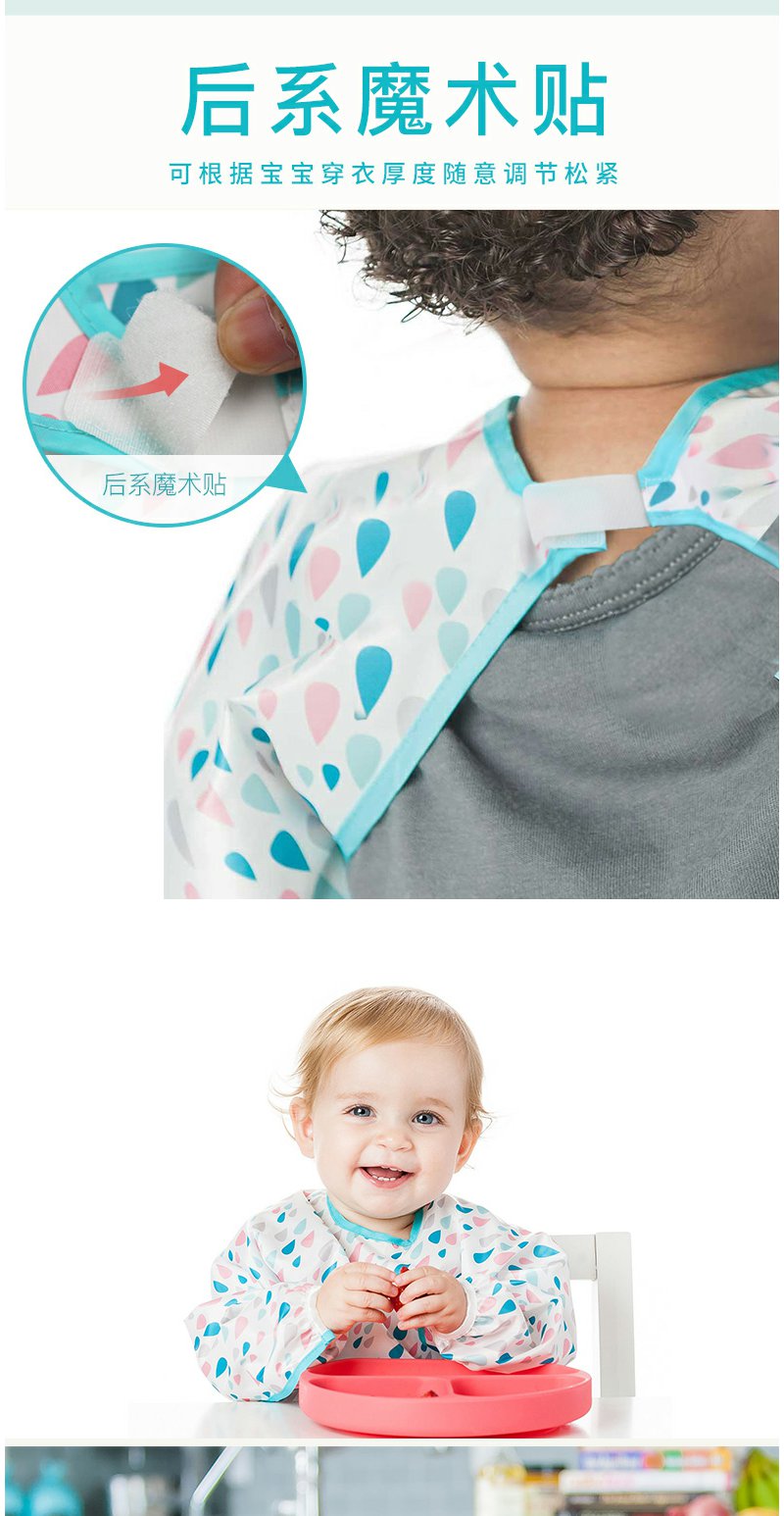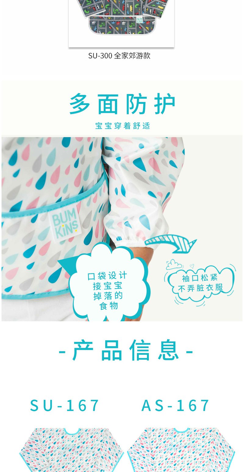 美国Bumkins围兜儿童罩衣反穿衣防水宝宝吃饭衣画画衣长袖 0-2岁