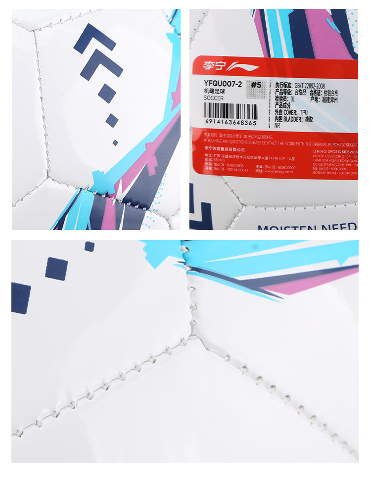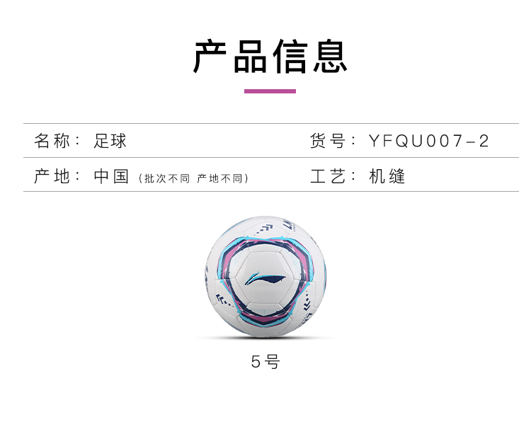 Lining/李宁运动常规训练5号机缝足球成人男YFQU007-2