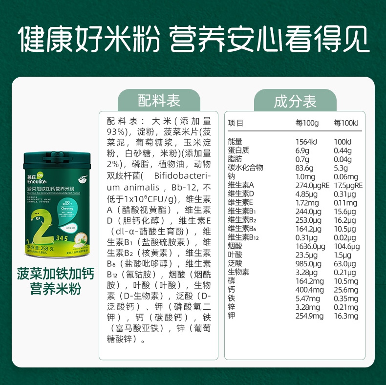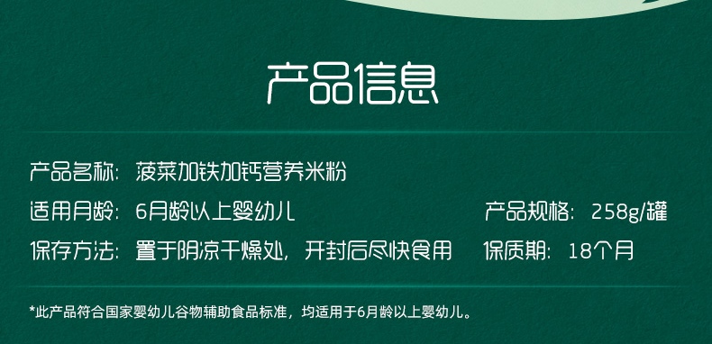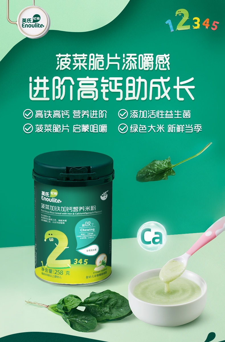 英氏菠菜加铁营养米粉盒装