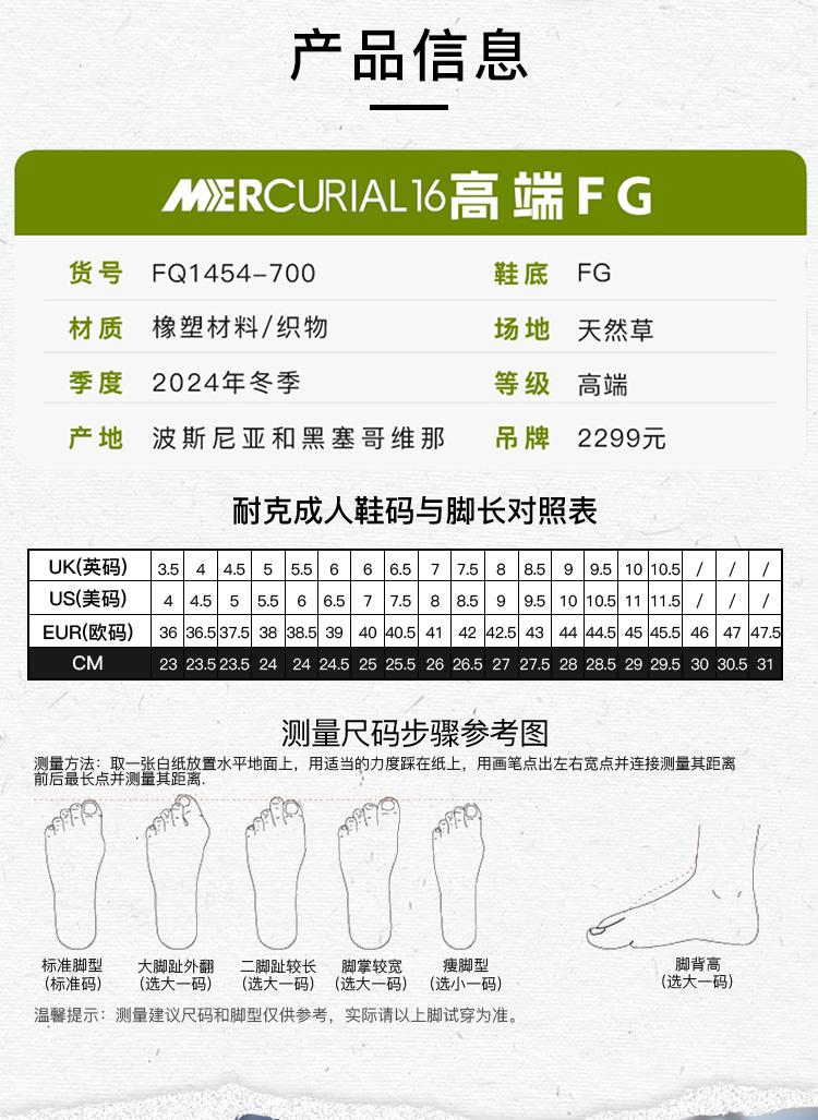 小李子NIKE耐克刺客16高端高帮FG长钉成人足球鞋男FQ1454-700