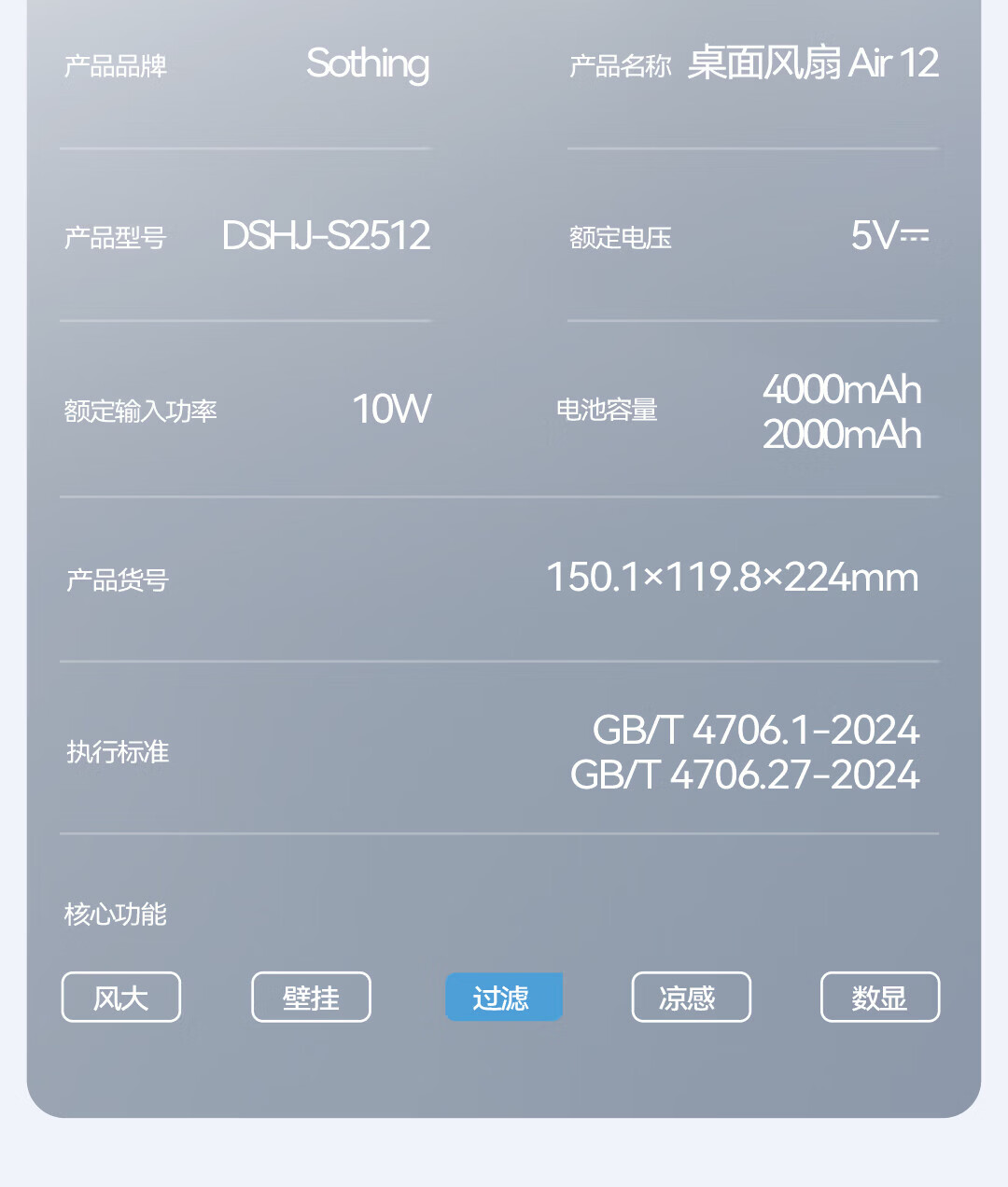 向物桌面风扇Air 12