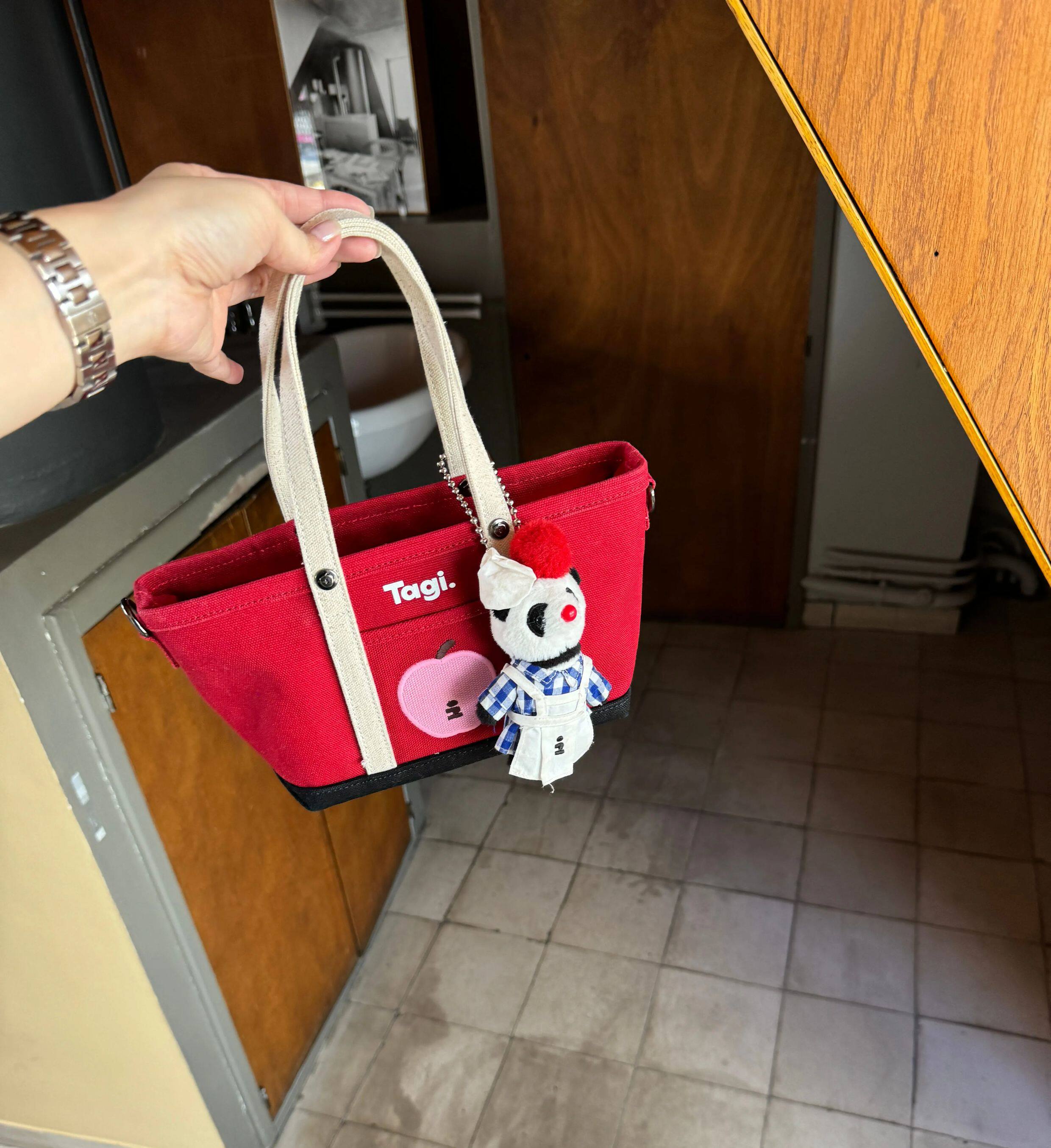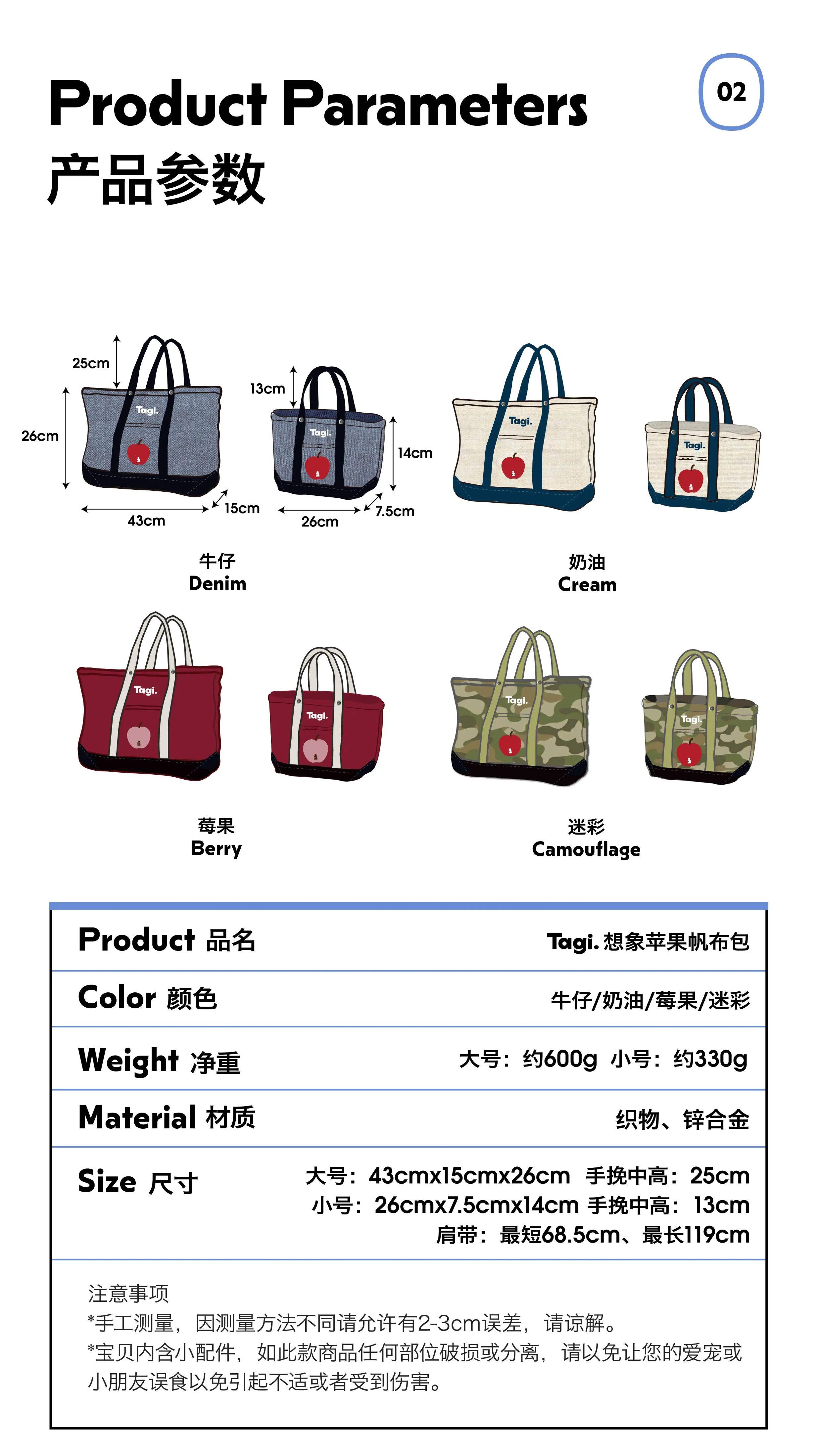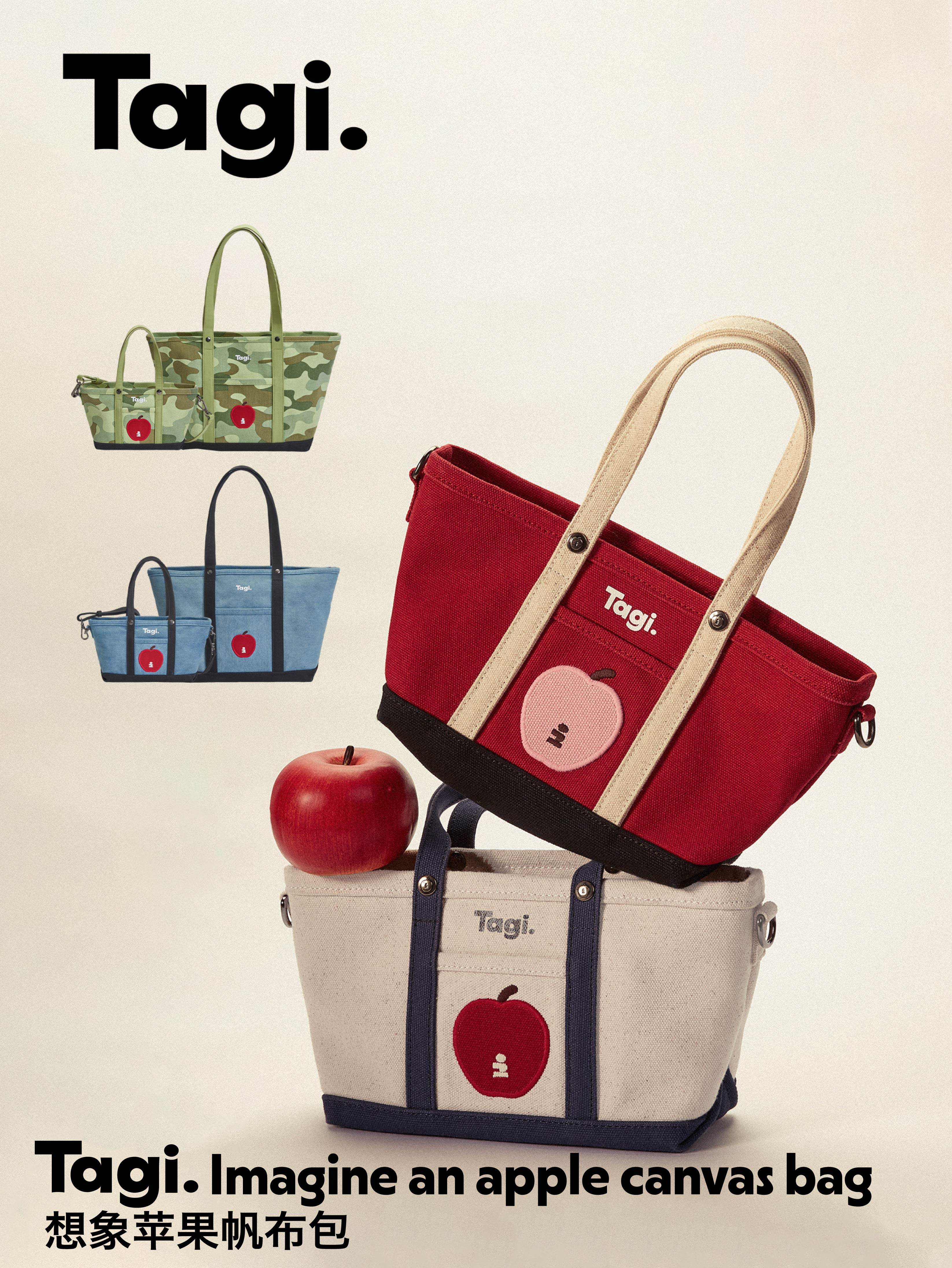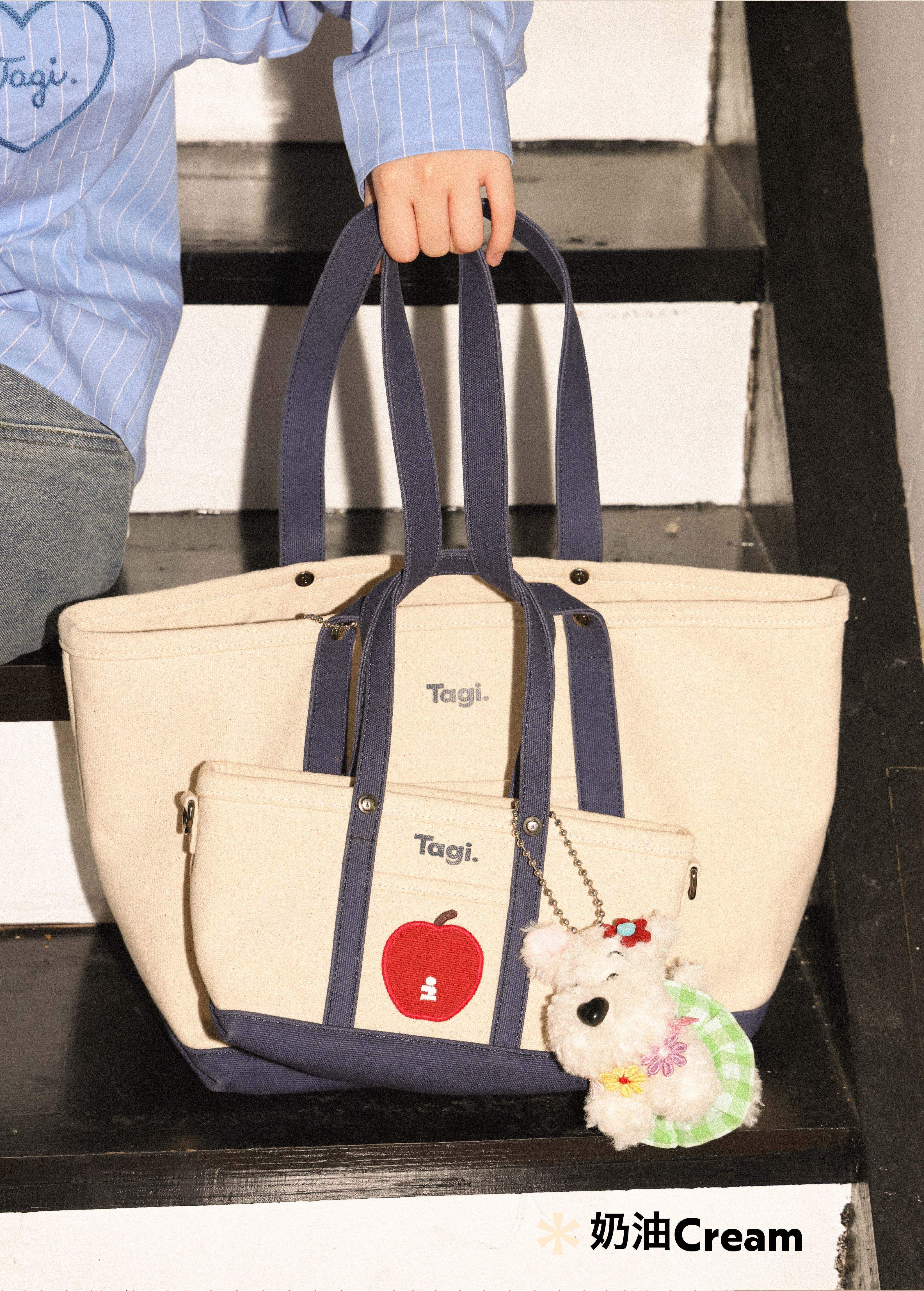 Tagi 想象苹果拼色复古帆布托特包 /手提包 拼色通勤复古单肩包帆布托特手提斜挎包
