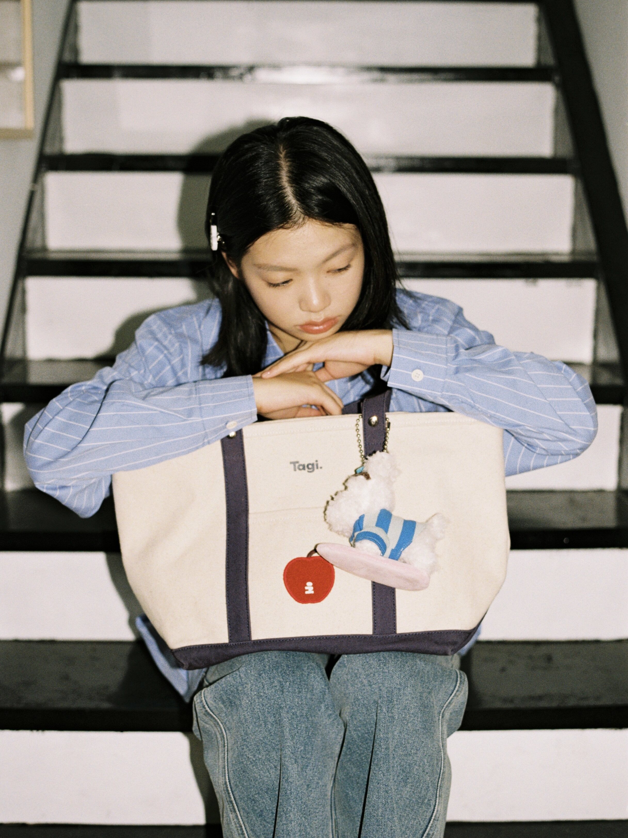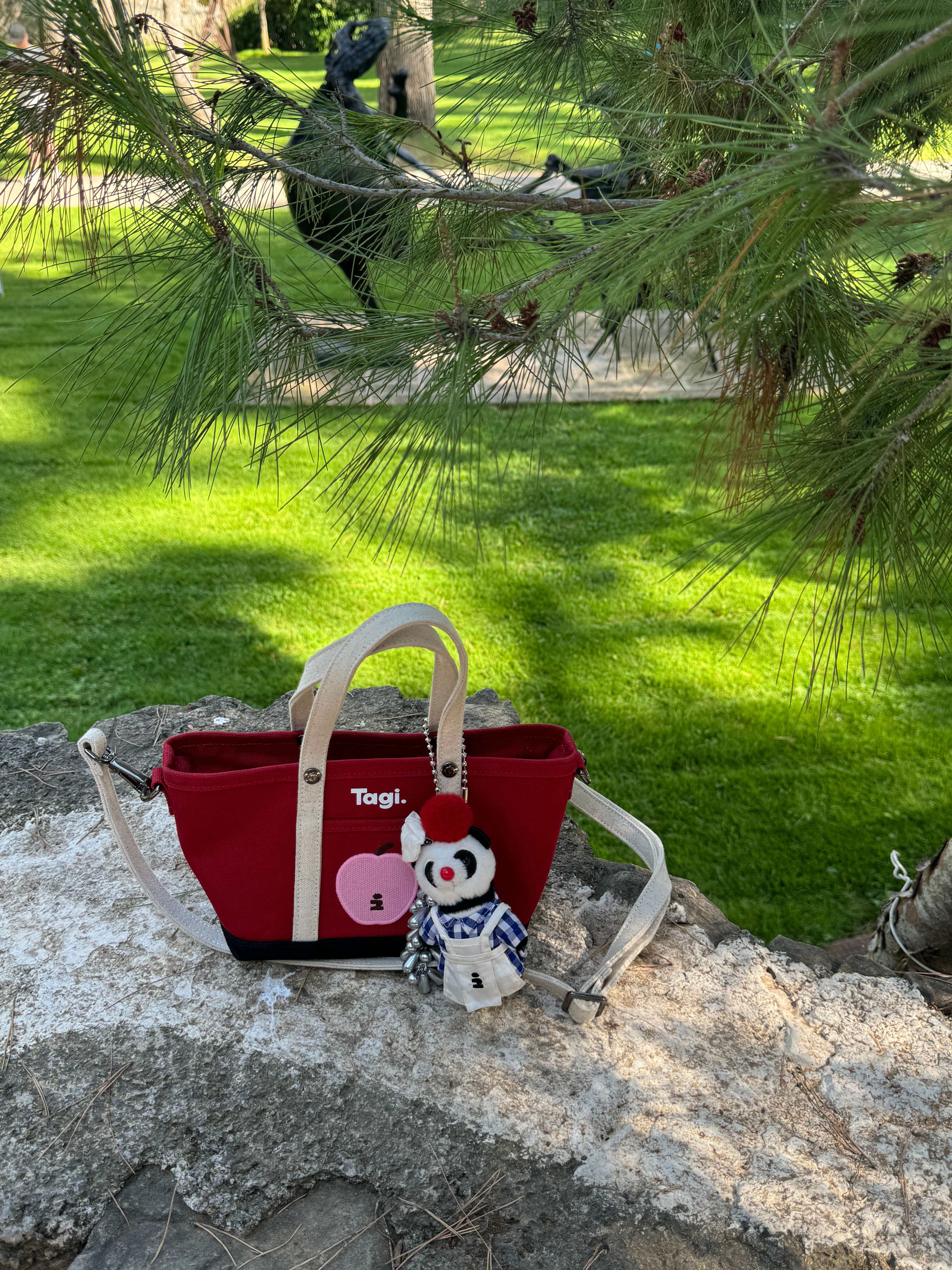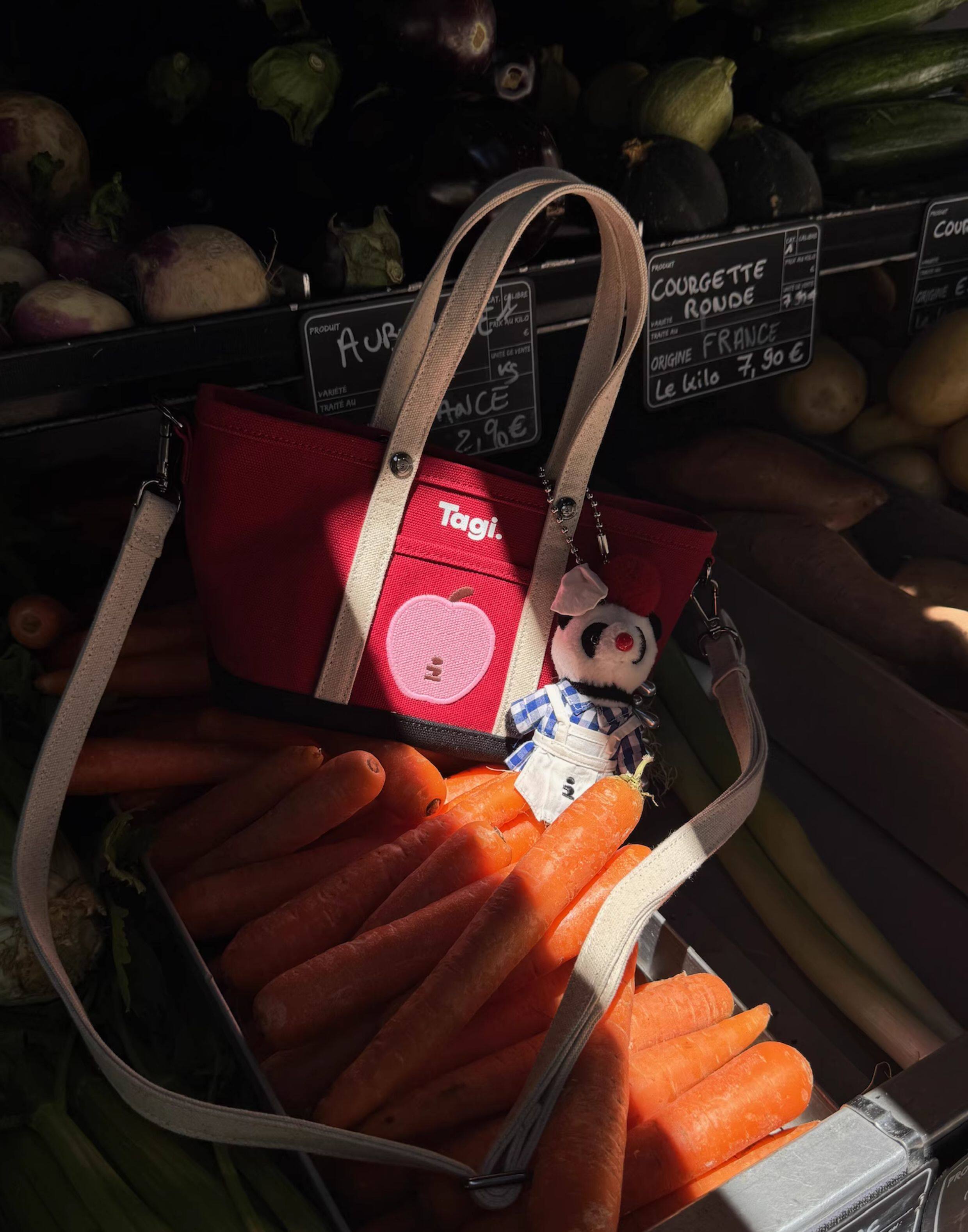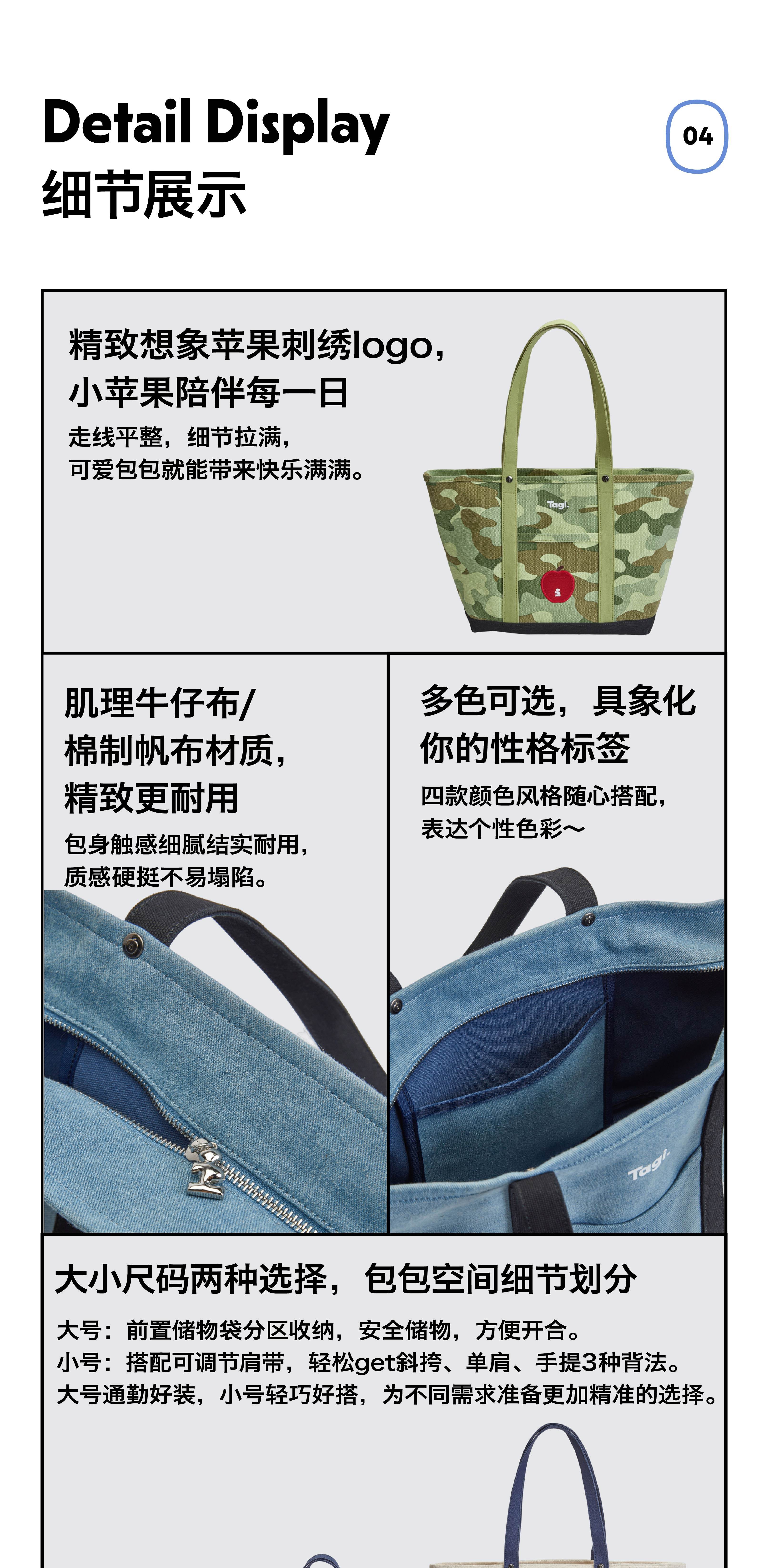 Tagi 想象苹果拼色复古帆布托特包 /手提包 拼色通勤复古单肩包帆布托特手提斜挎包