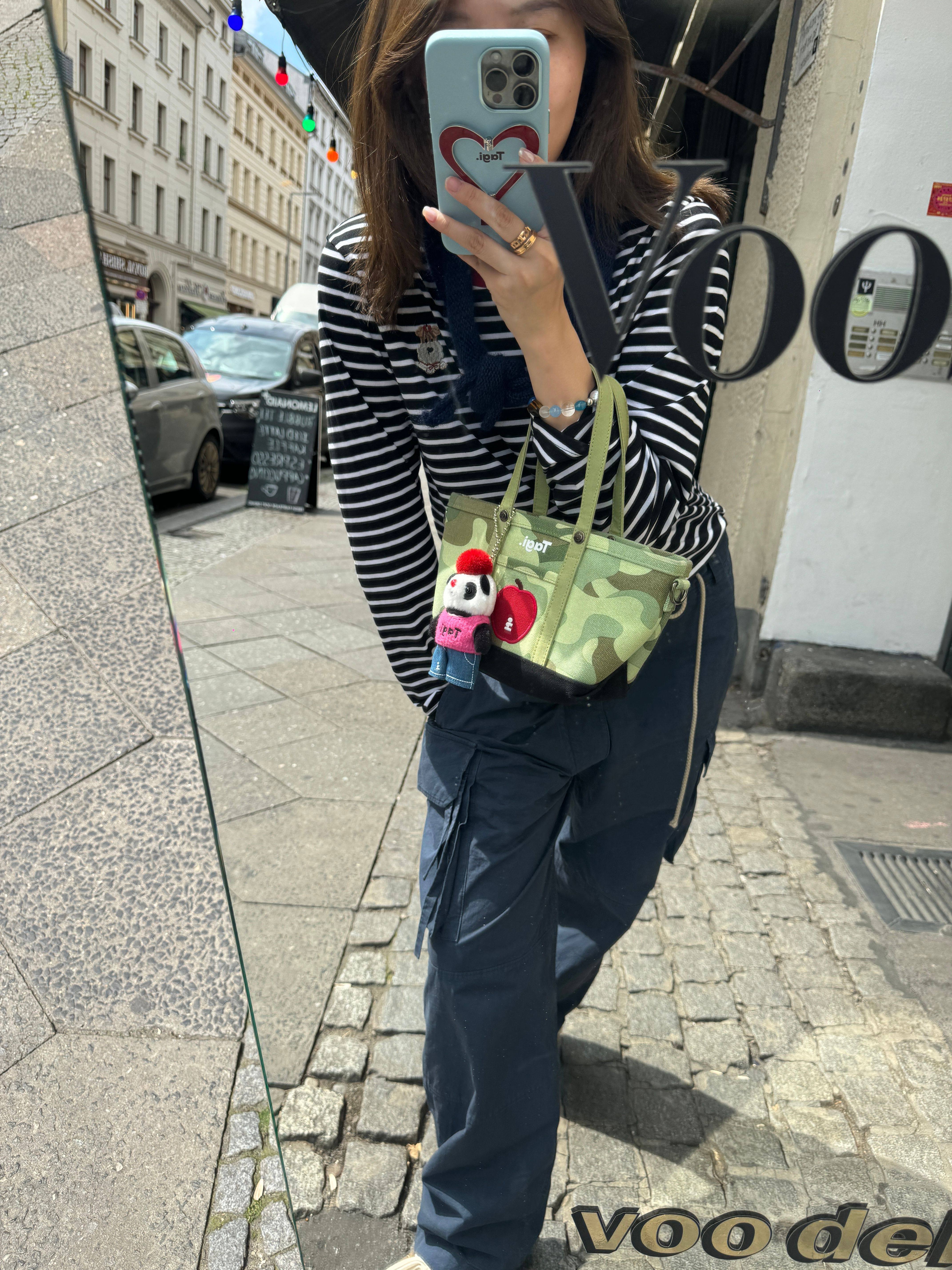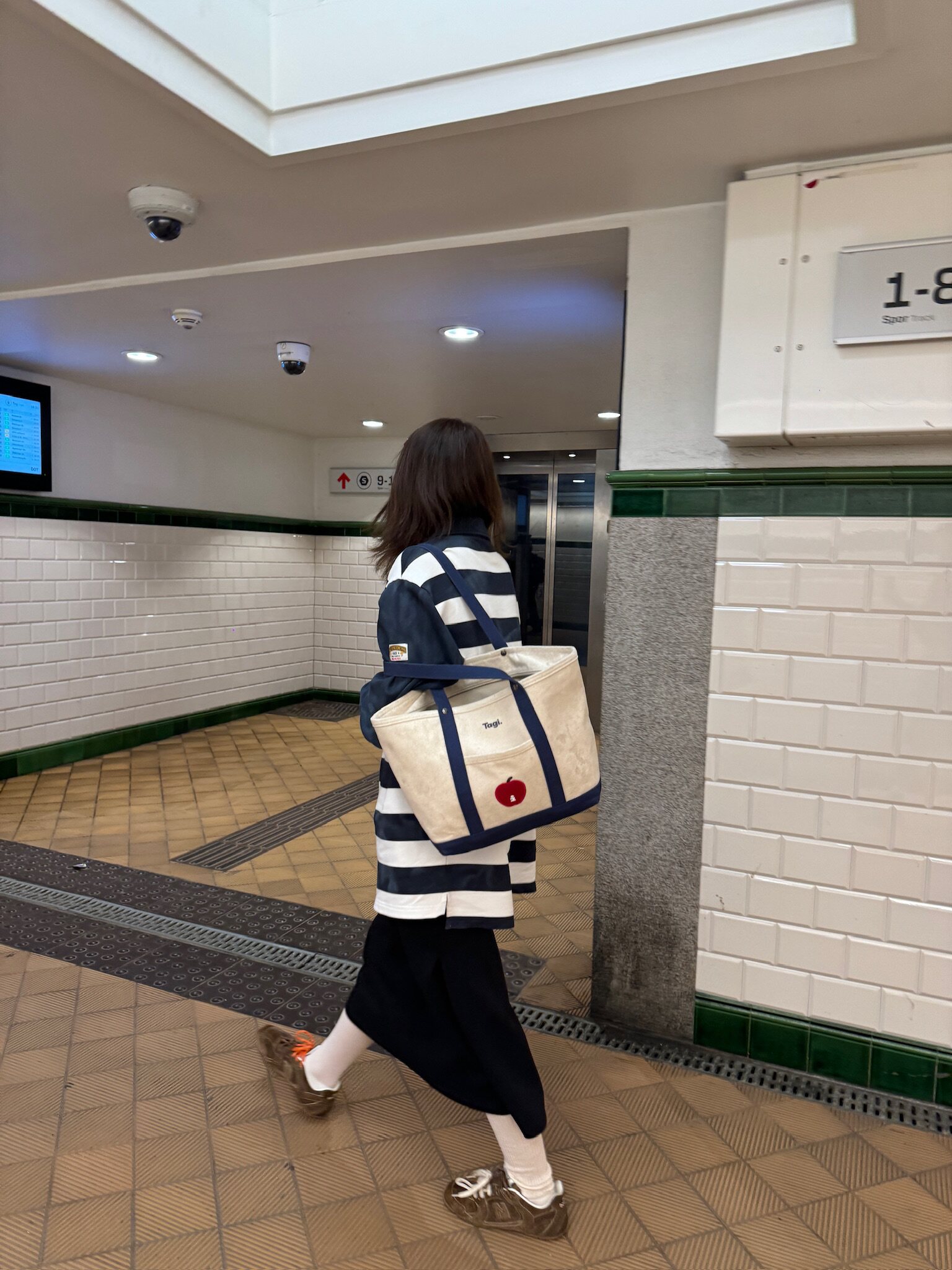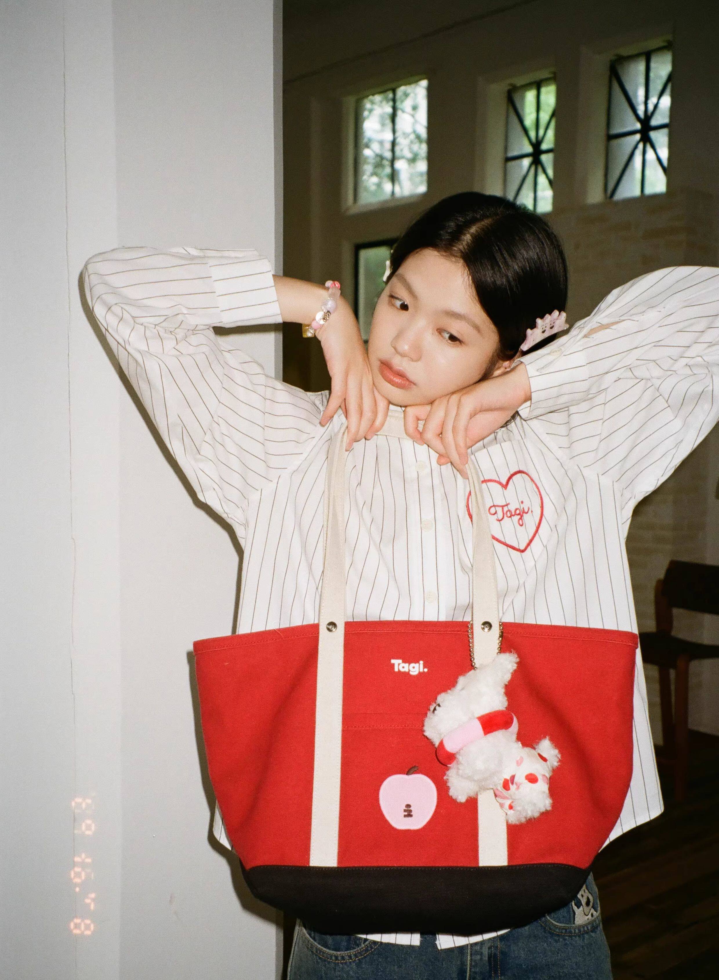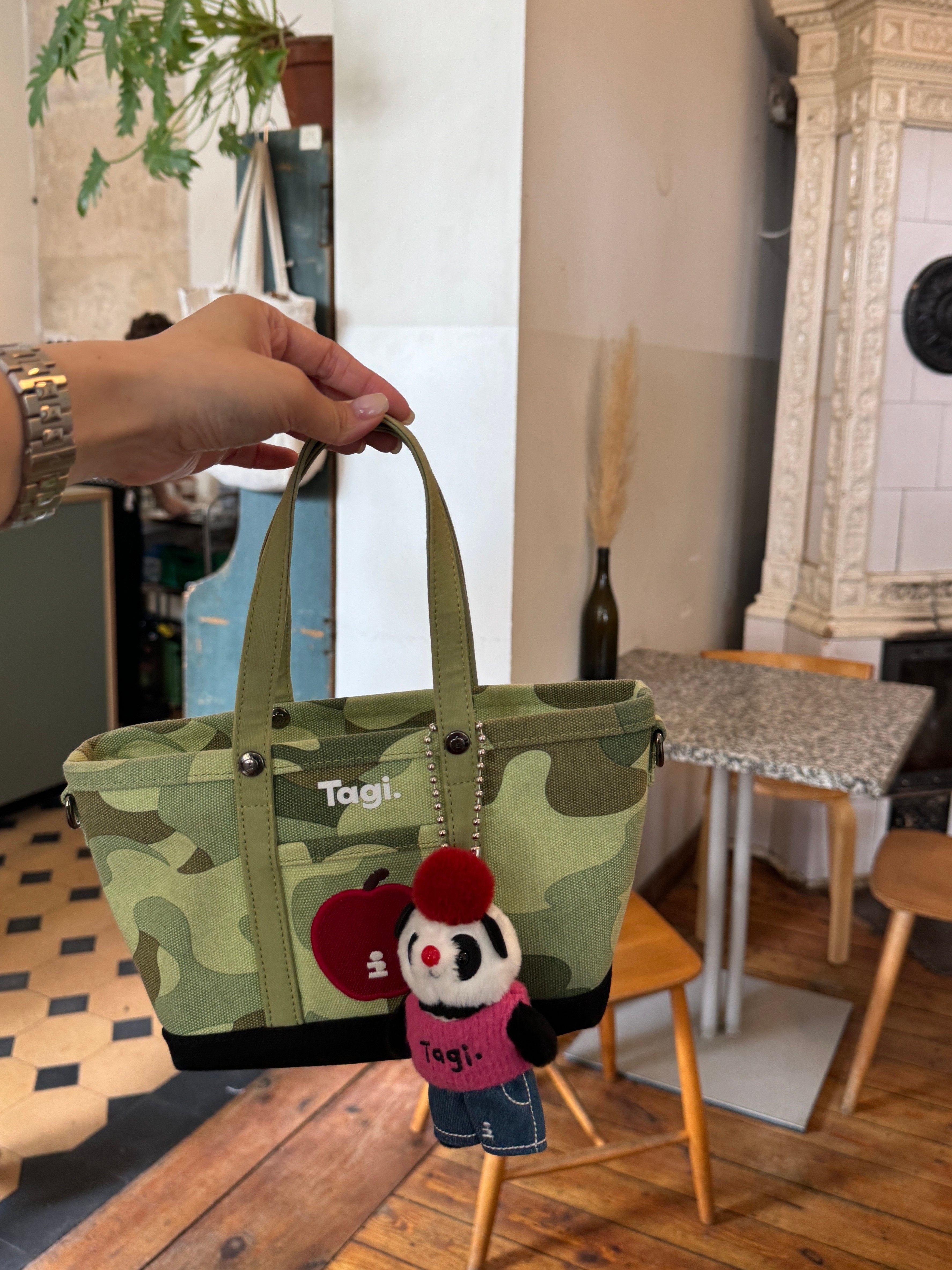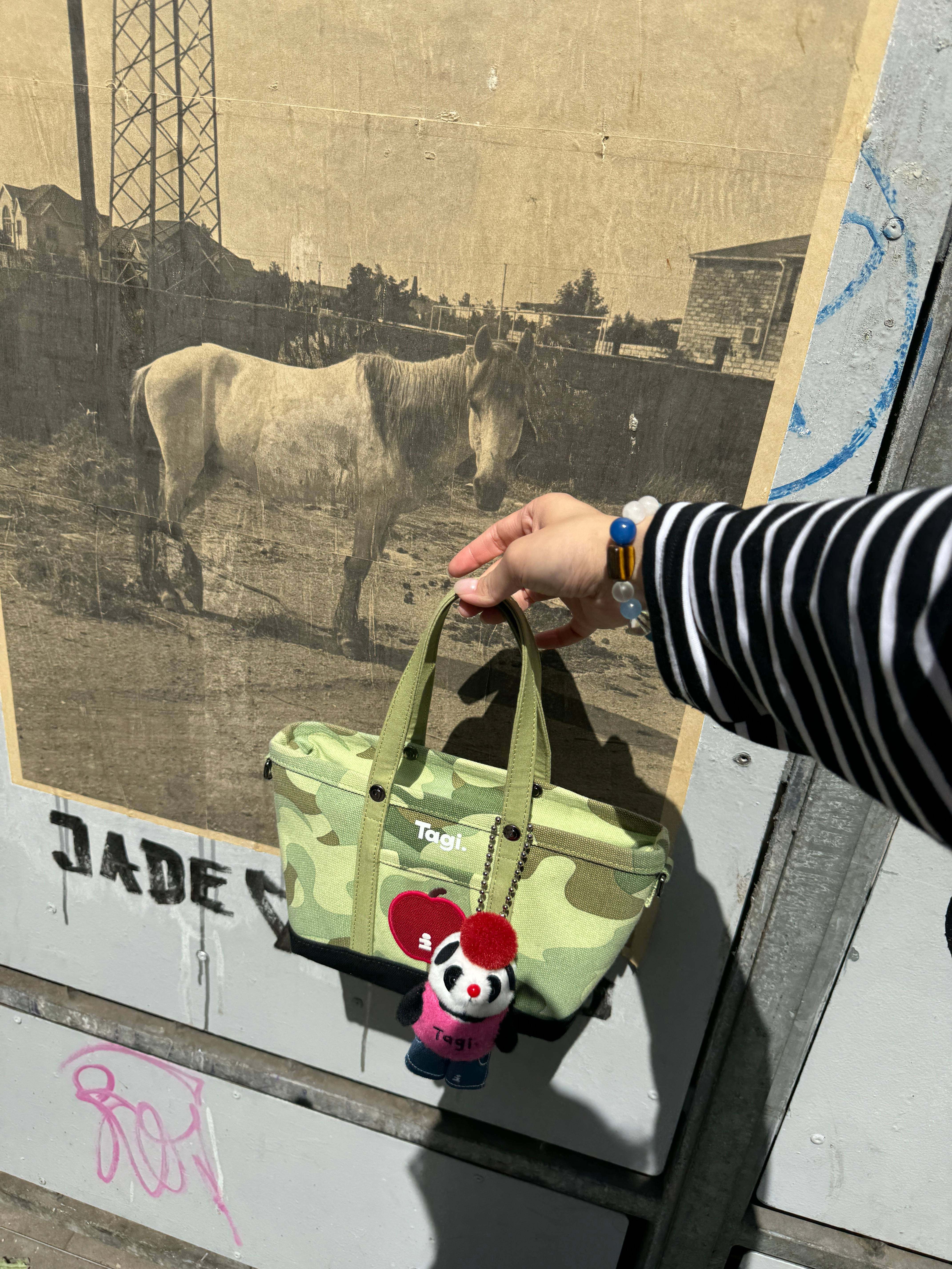 Tagi 想象苹果拼色复古帆布托特包 /手提包 拼色通勤复古单肩包帆布托特手提斜挎包