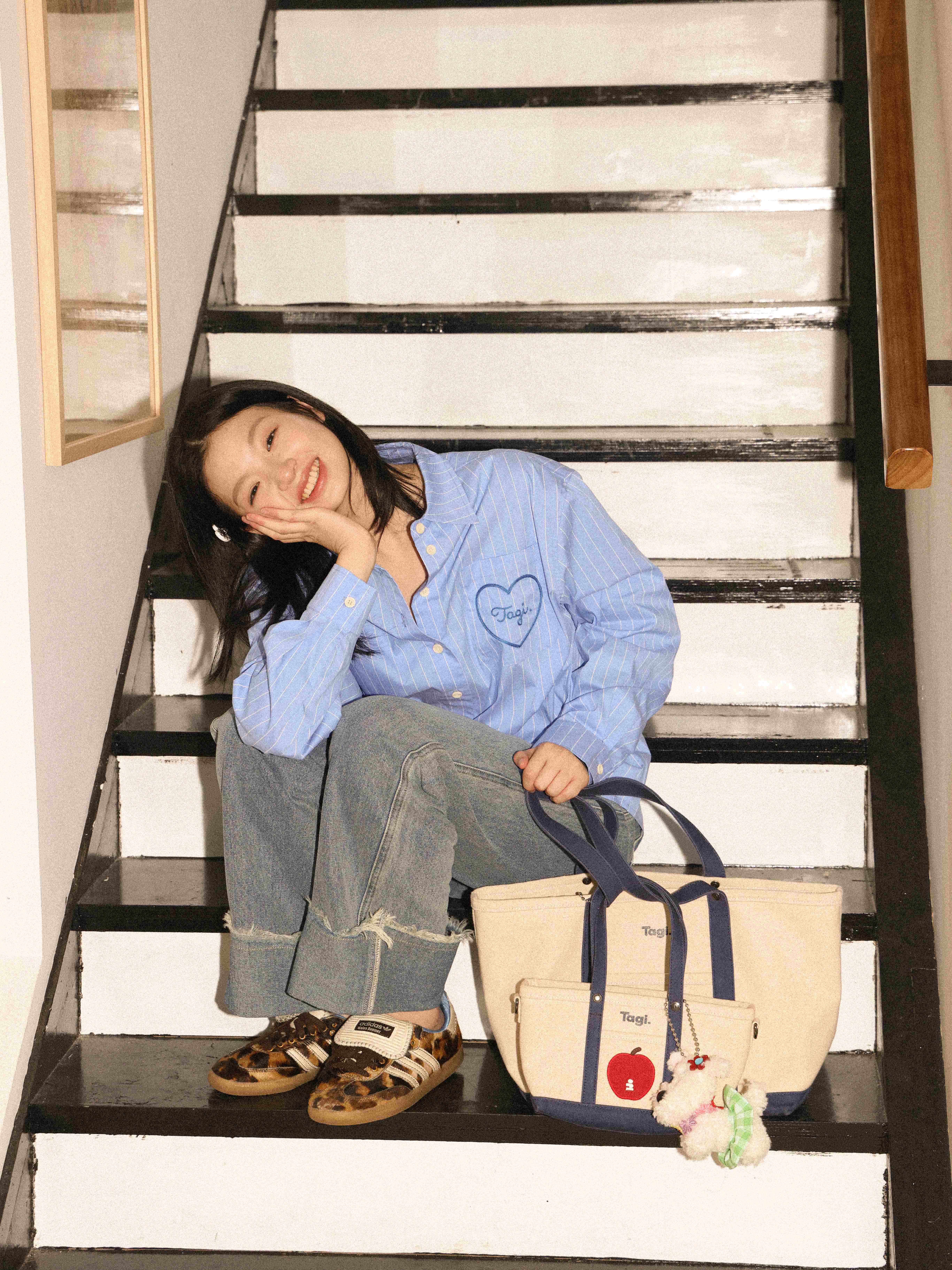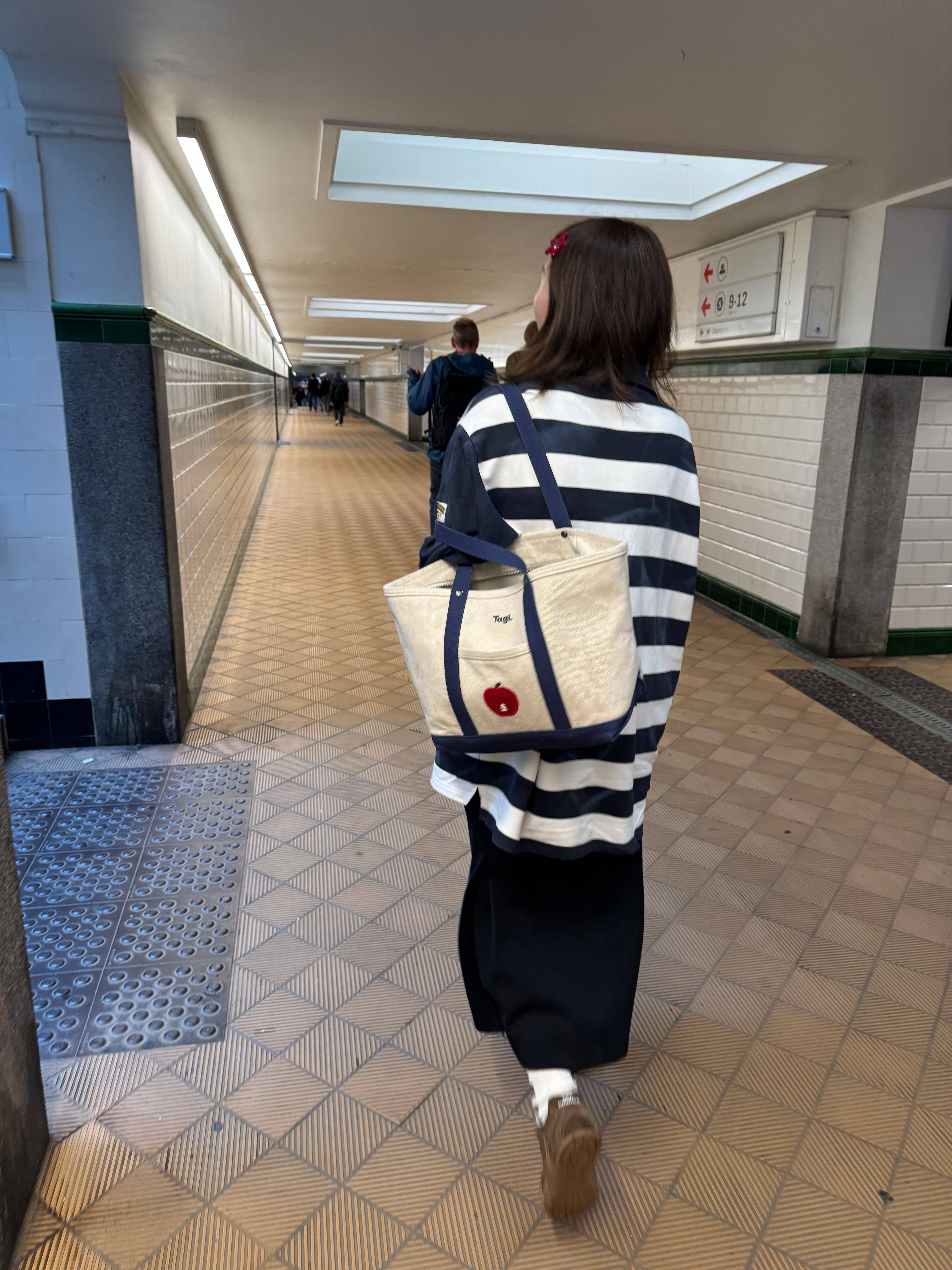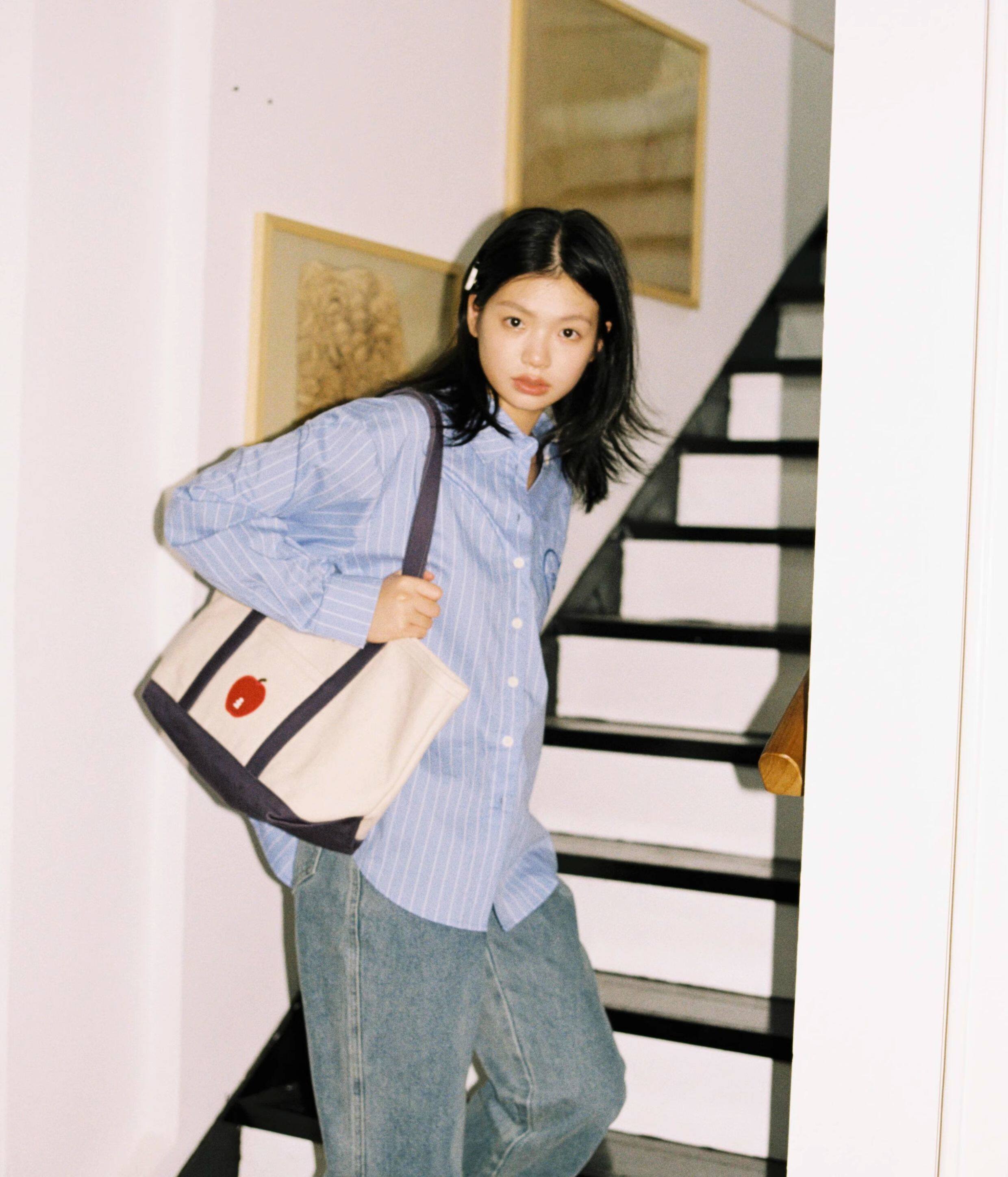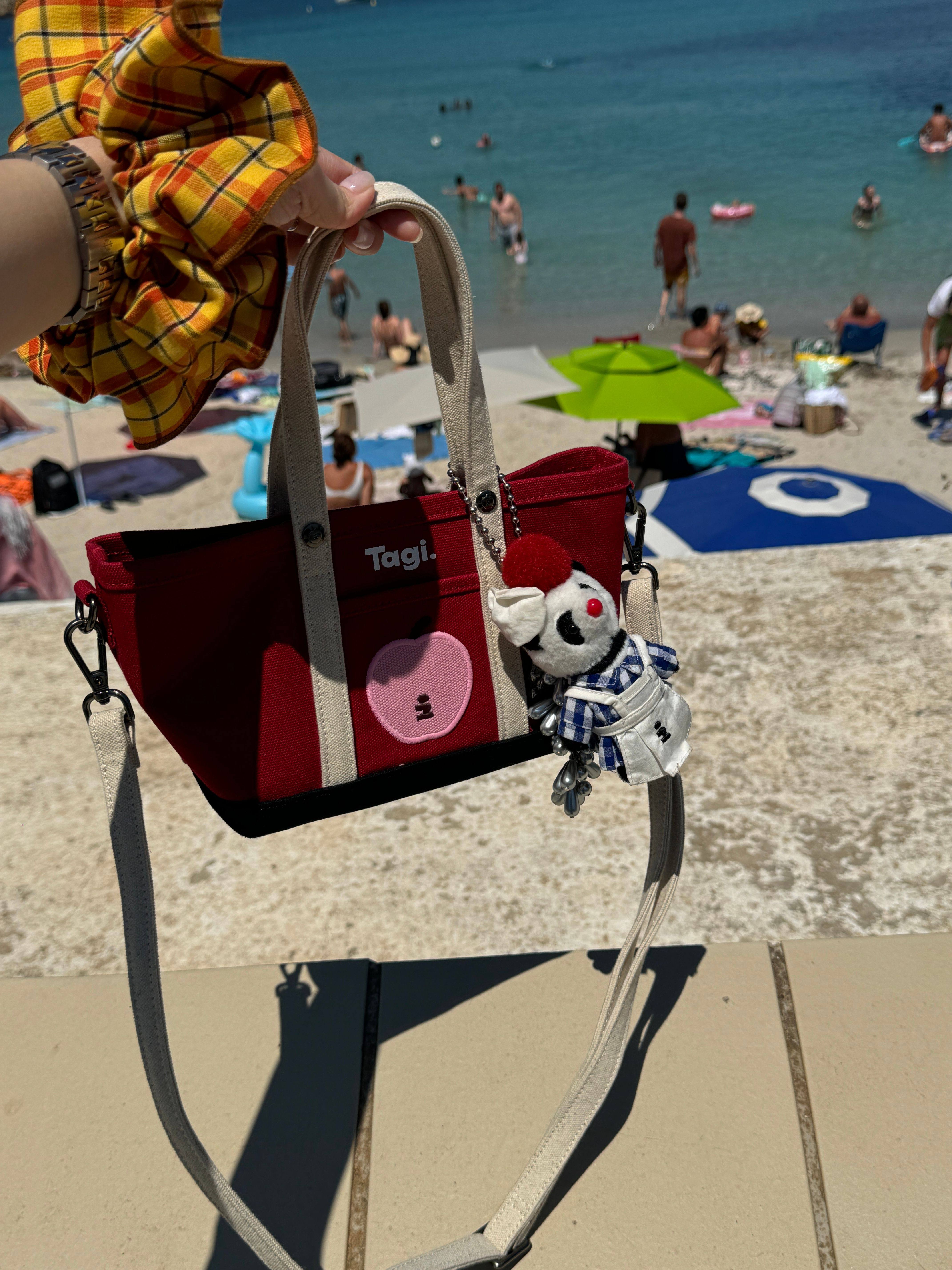 Tagi 想象苹果拼色复古帆布托特包 /手提包 拼色通勤复古单肩包帆布托特手提斜挎包
