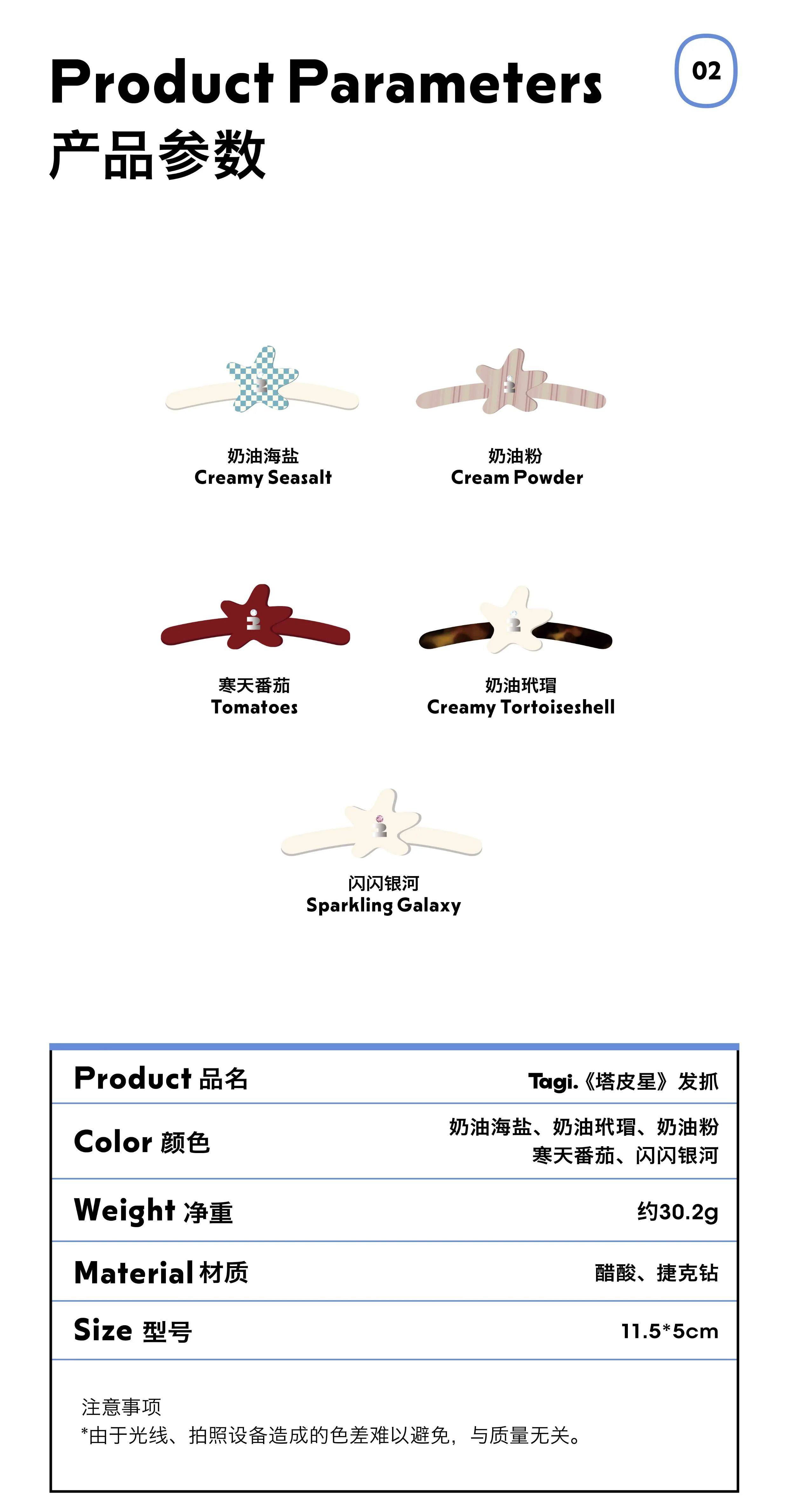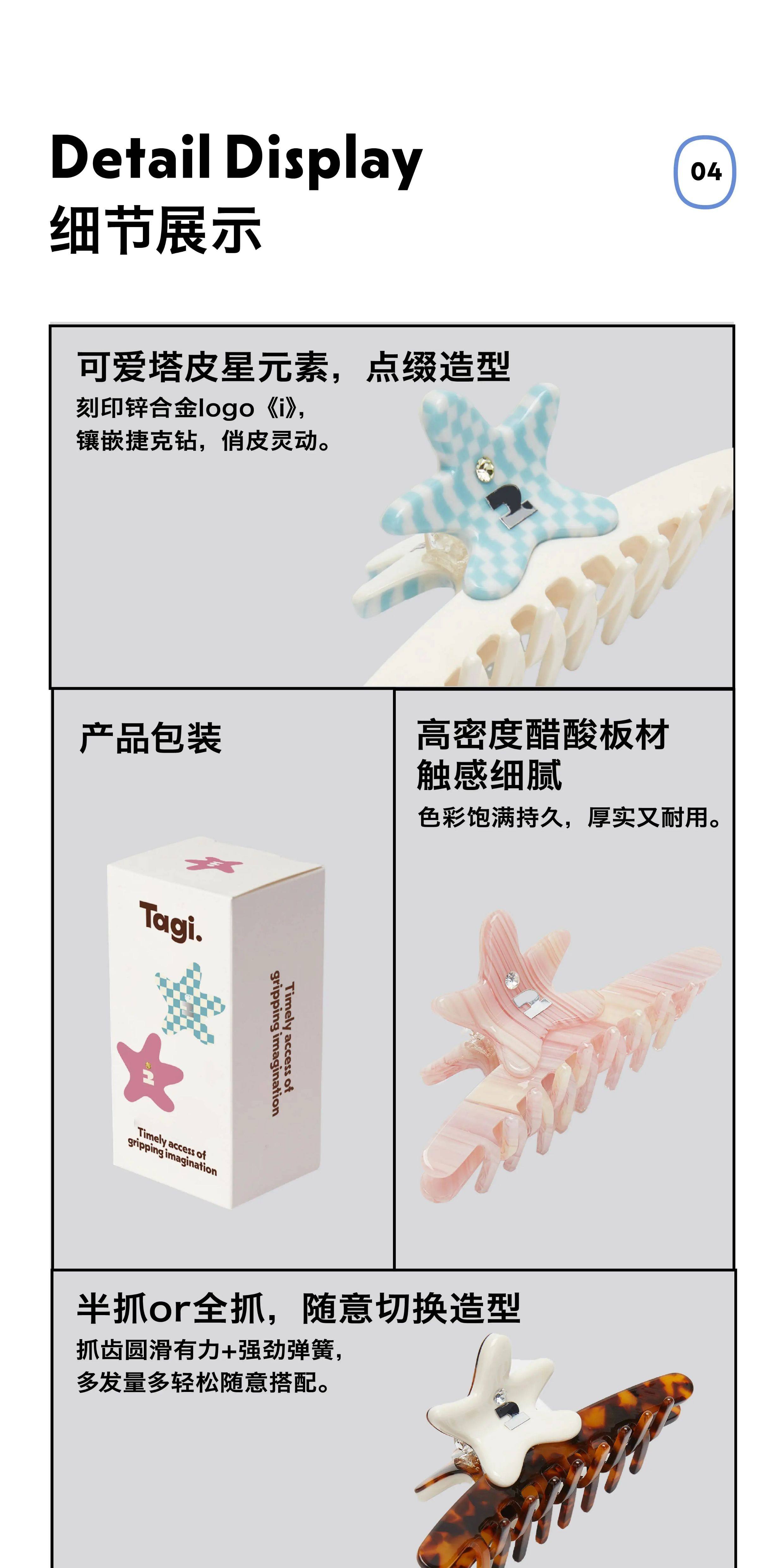 Tagi 塔皮星钻石鲨鱼夹 醋酸钻石镶嵌无痕抓夹可爱鲨鱼夹发抓