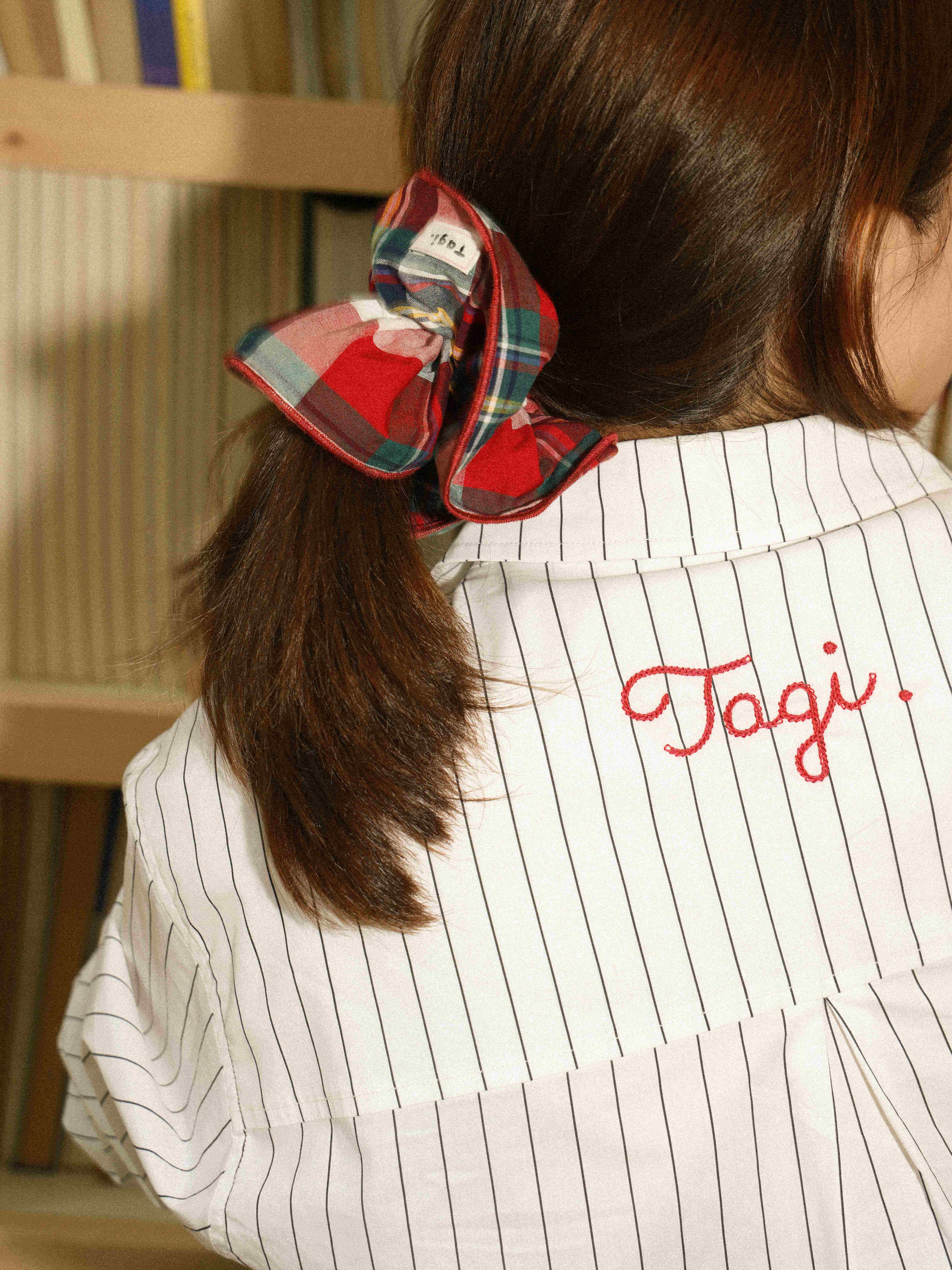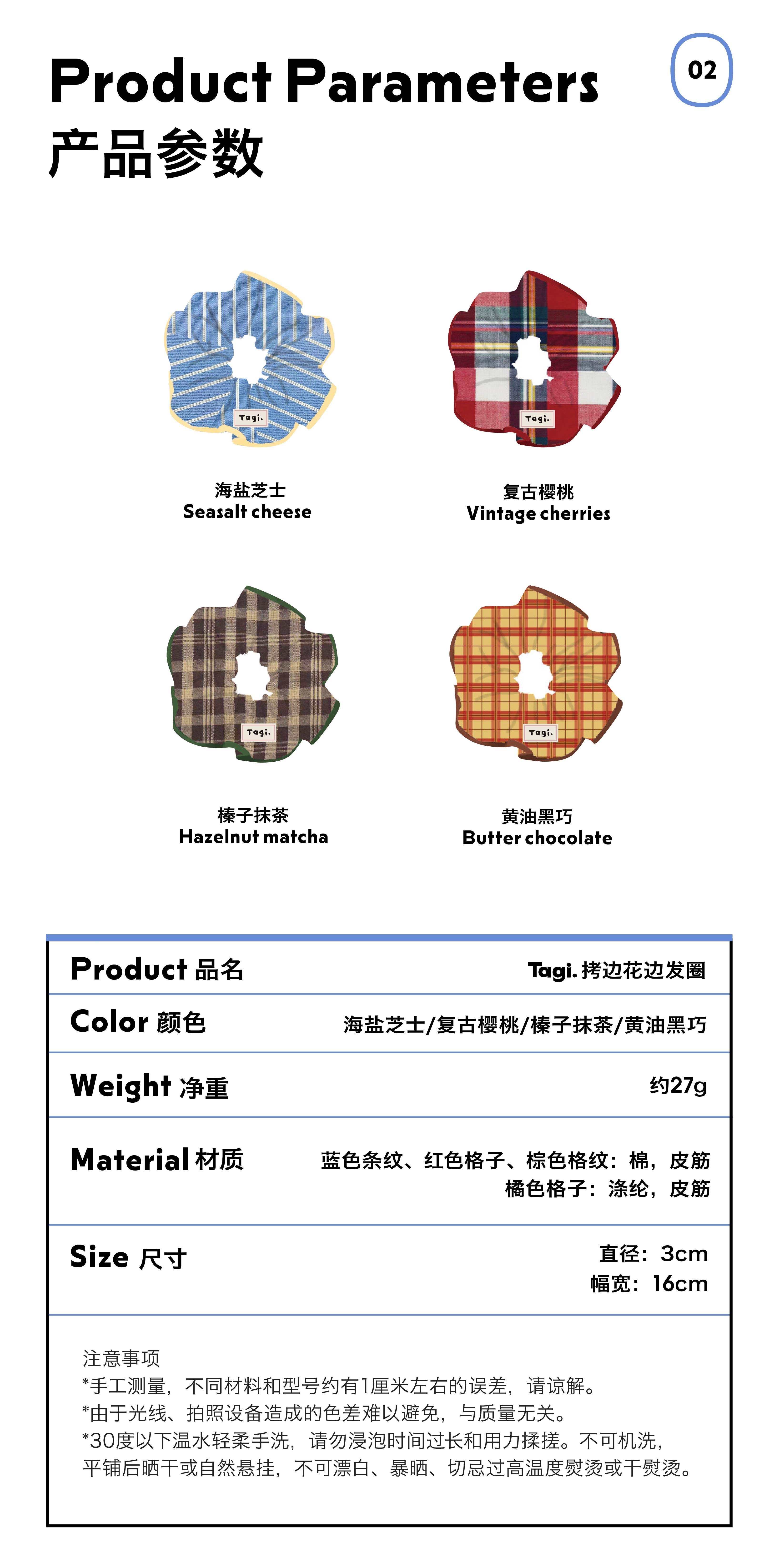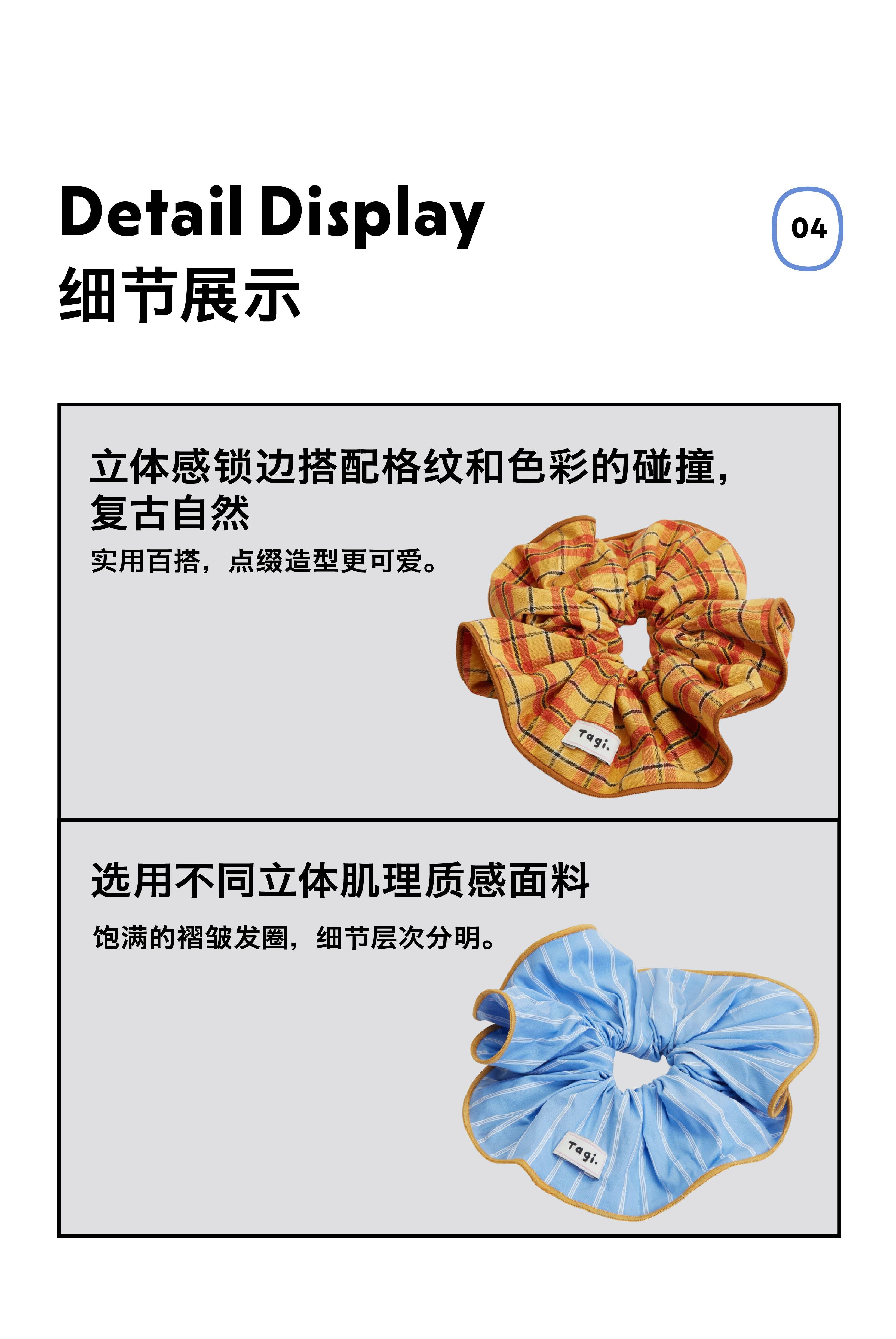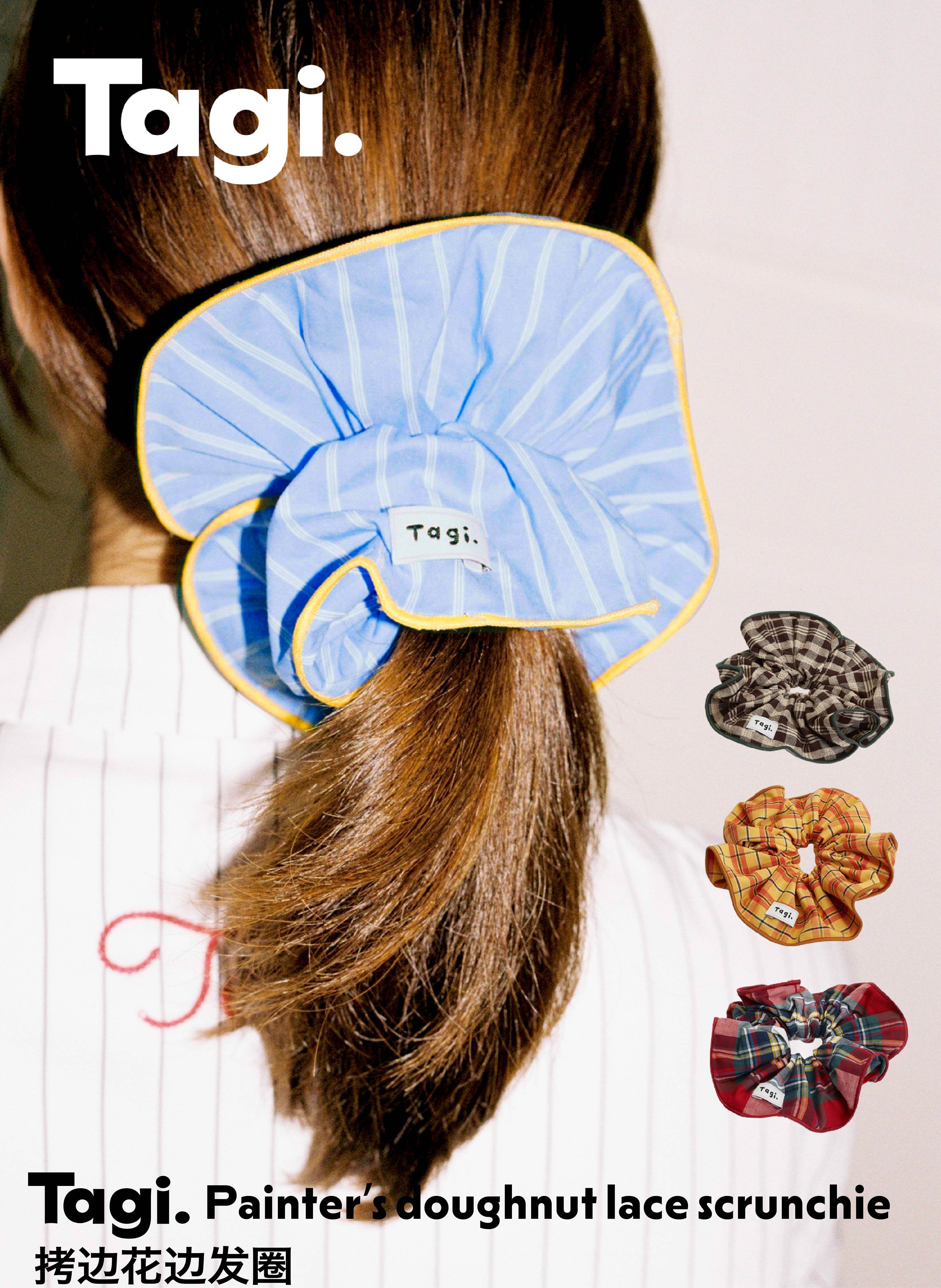 Tagi 甜甜圈单层大肠发圈 画家甜甜圈拷边条纹格纹拼色单层大肠发圈发饰头饰