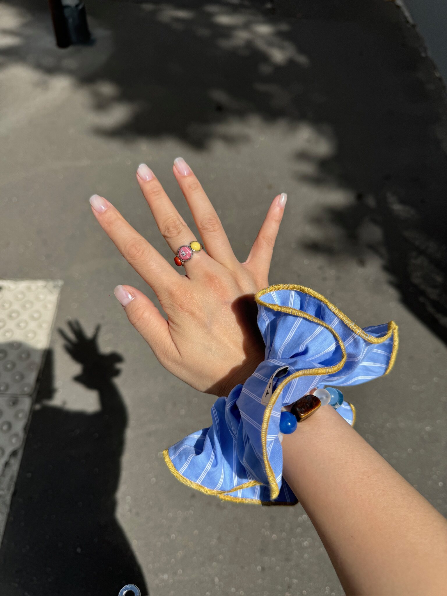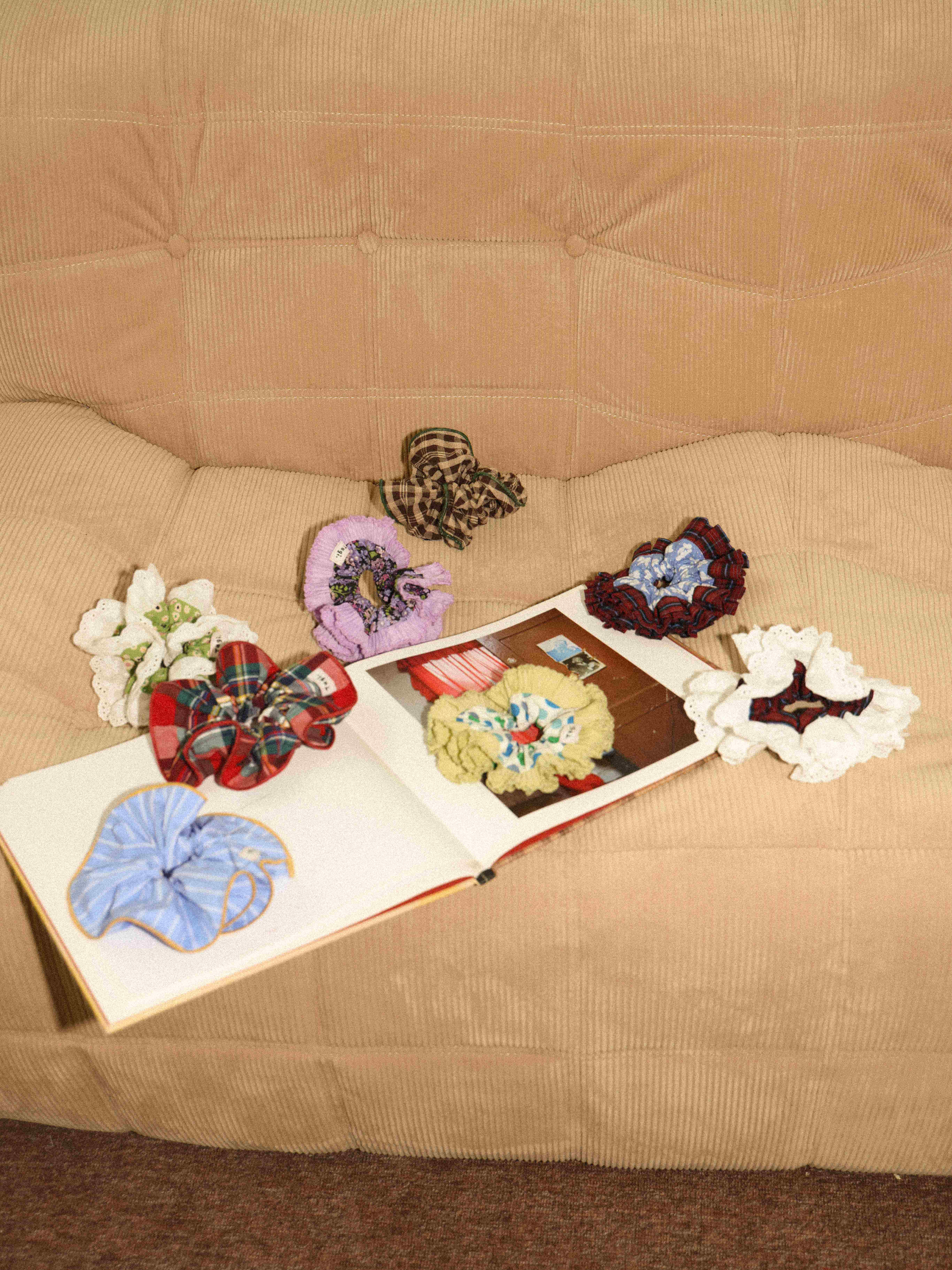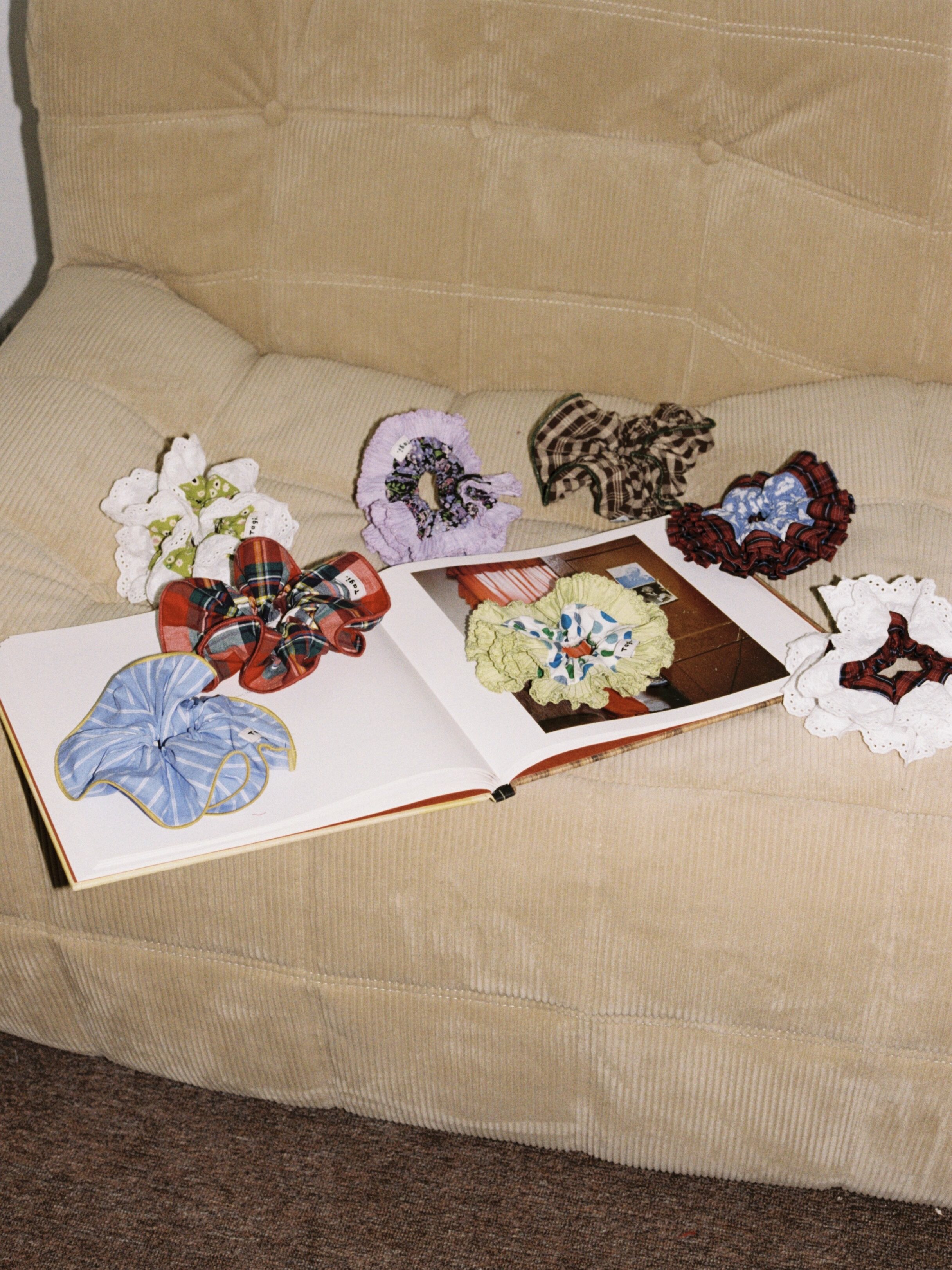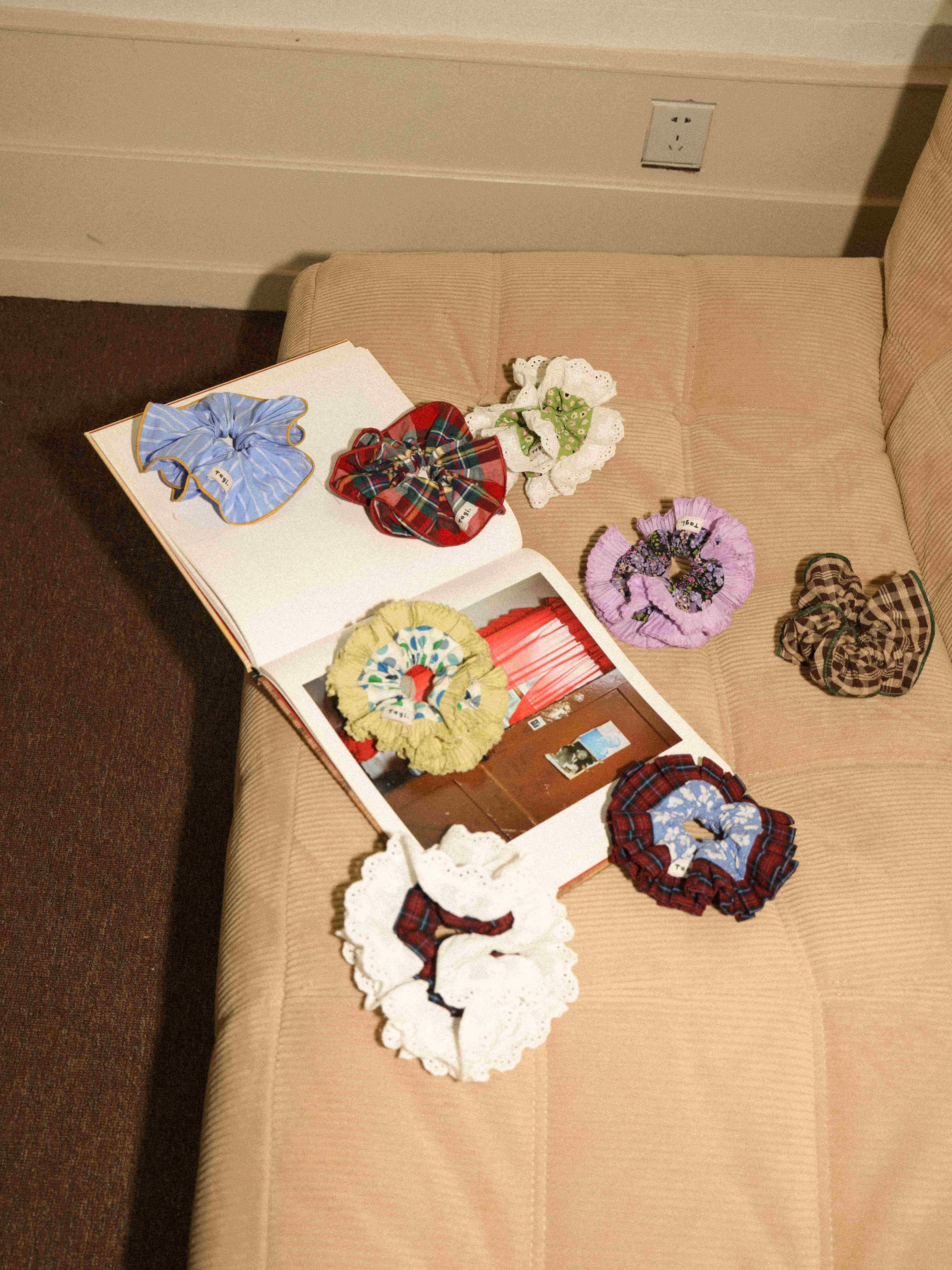 Tagi 甜甜圈单层大肠发圈 画家甜甜圈拷边条纹格纹拼色单层大肠发圈发饰头饰