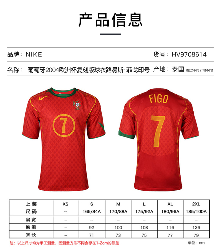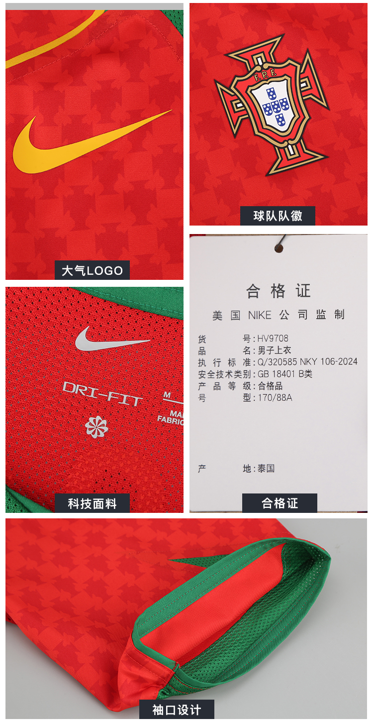 小李子NIKE耐克2004欧洲杯葡萄牙复刻版球衣成人男HV9708-614
