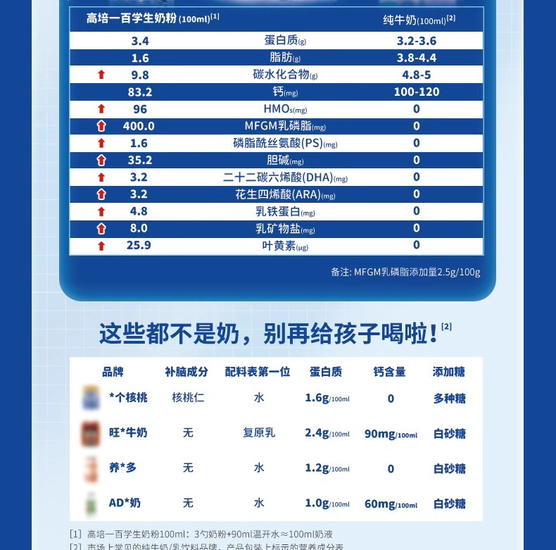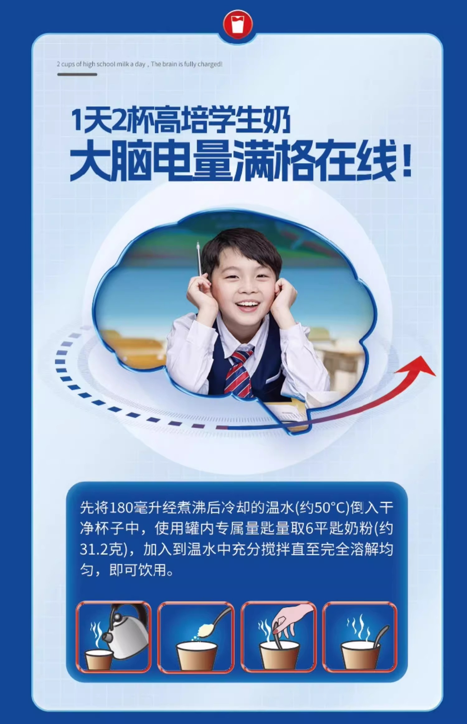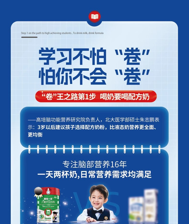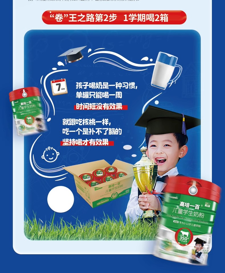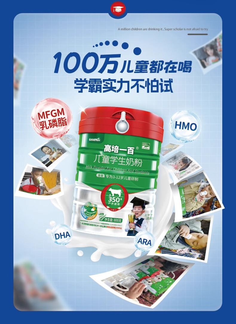 800g高培一百3-12岁儿童学生奶粉(24年生产)