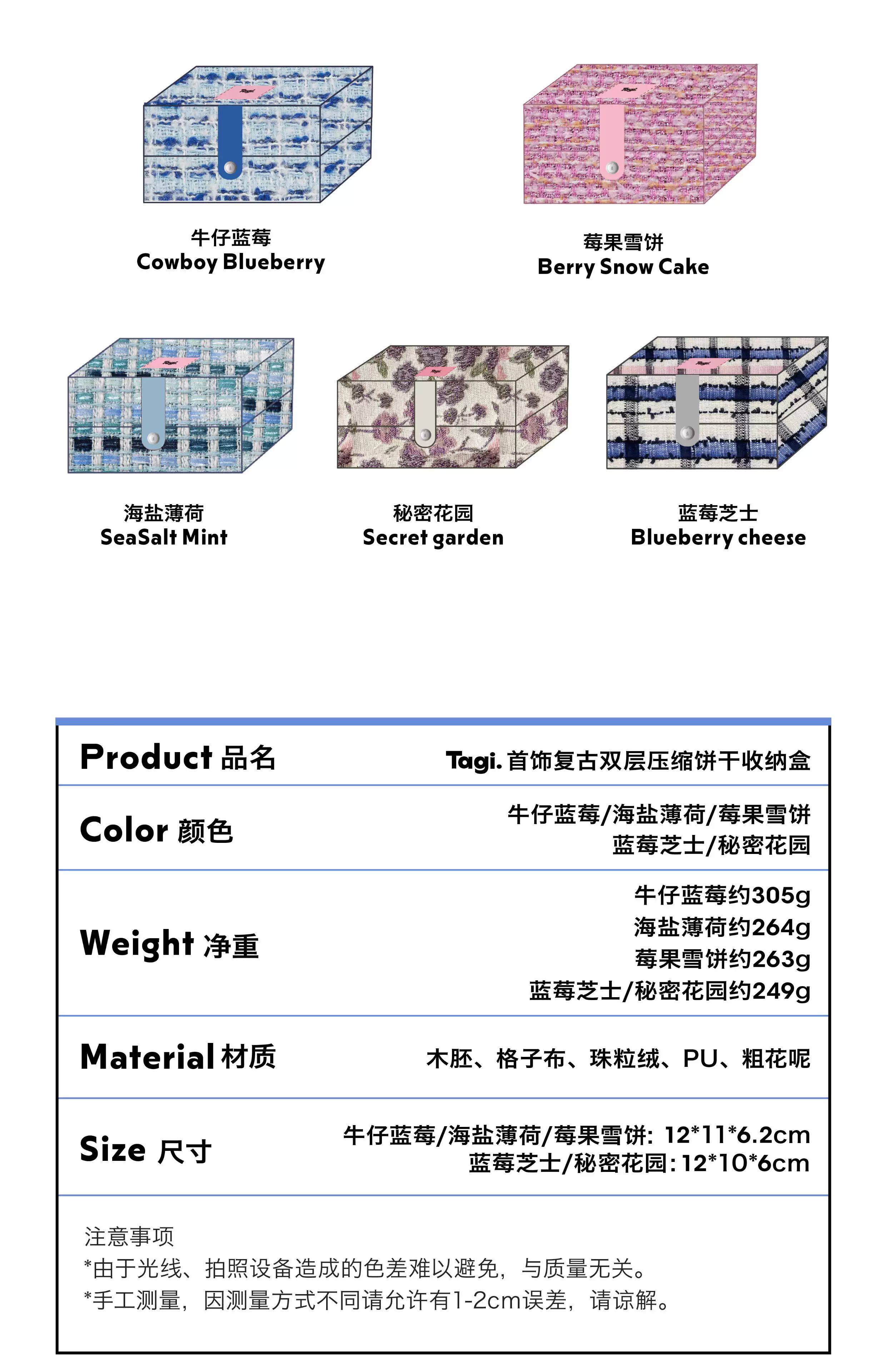 Tagi 压缩饼干复古双层首饰盒 大容量复古小号双层收纳盒