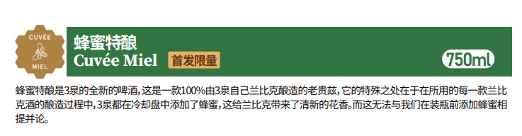 3泉蜂蜜特酿啤酒-750ML