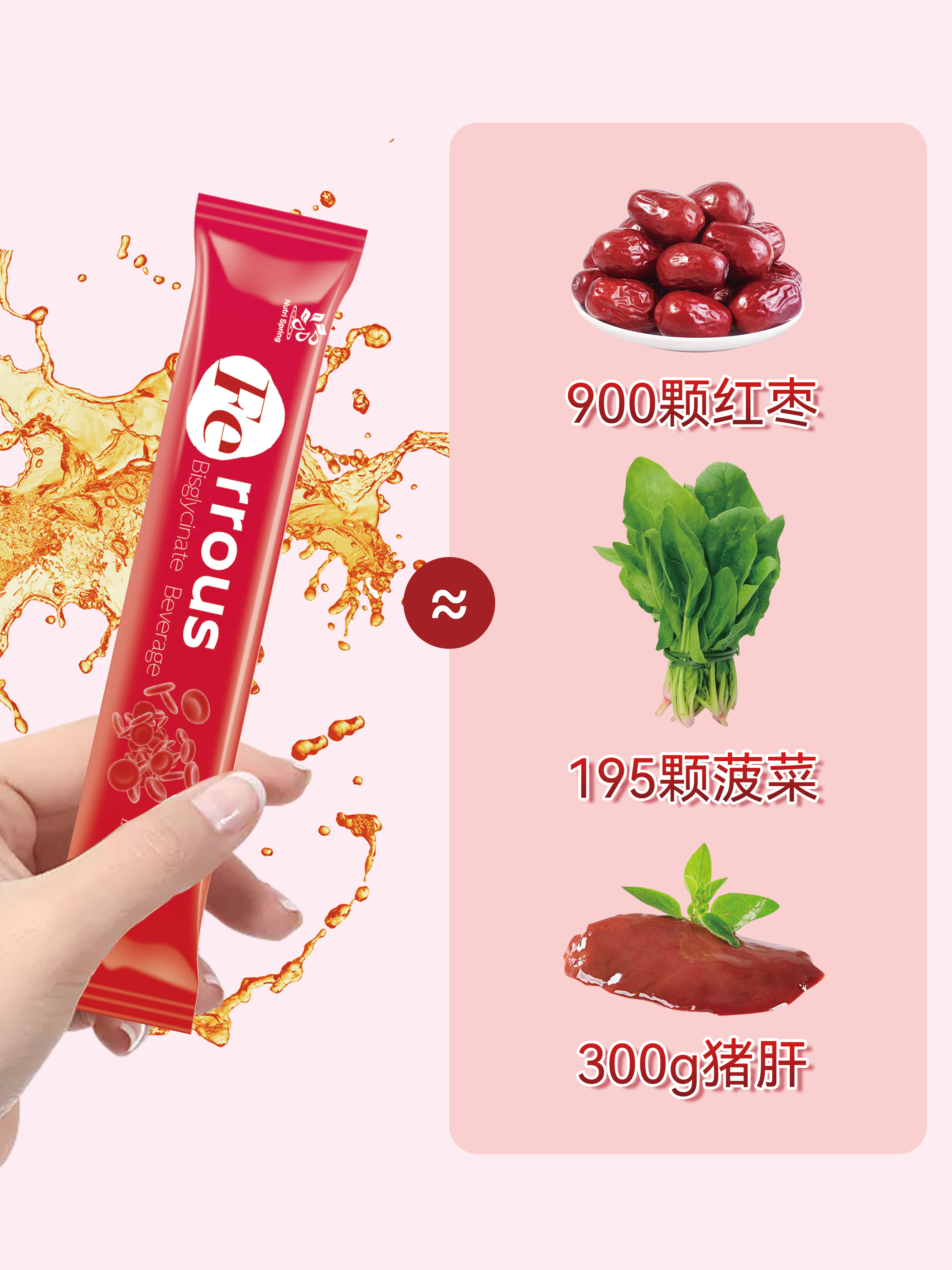 【日用好物 | 纽康泉甘氨酸亚铁饮液10ML*30袋*1/3/5盒装】整合二价铁,人体更易吸收,氨基酸保护结构保护铁离子通过胃,肠道易吸收。