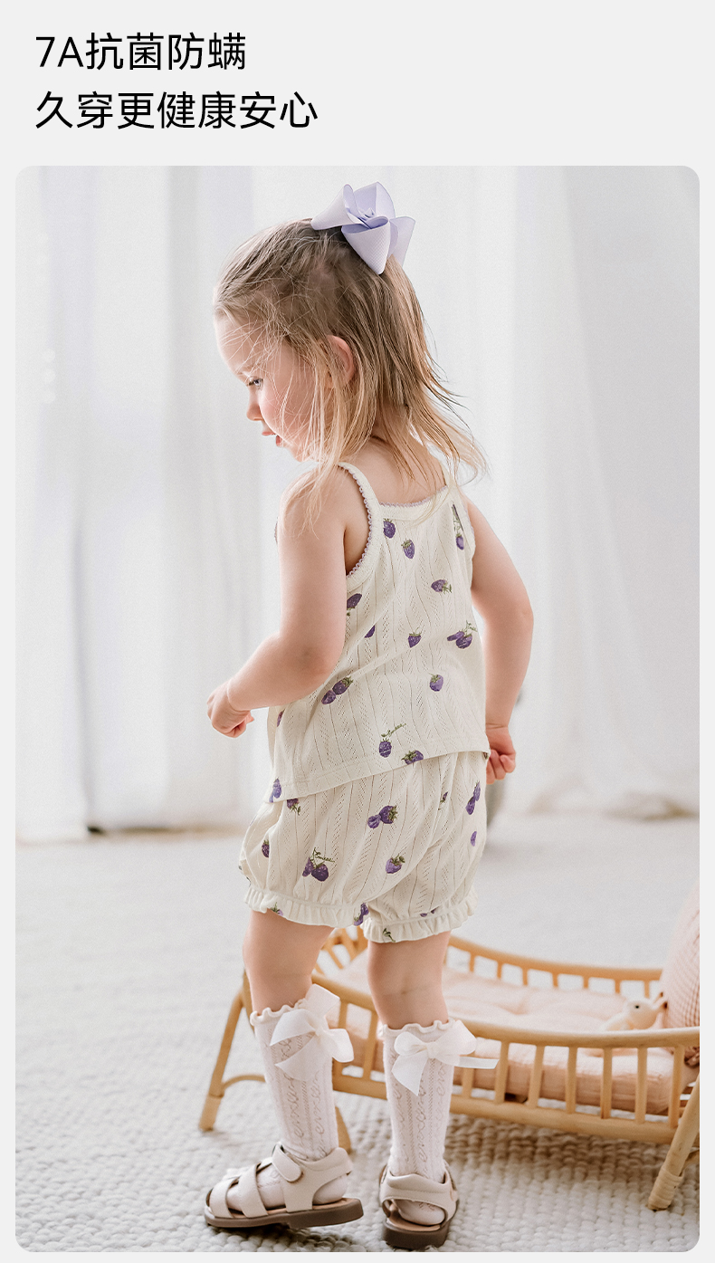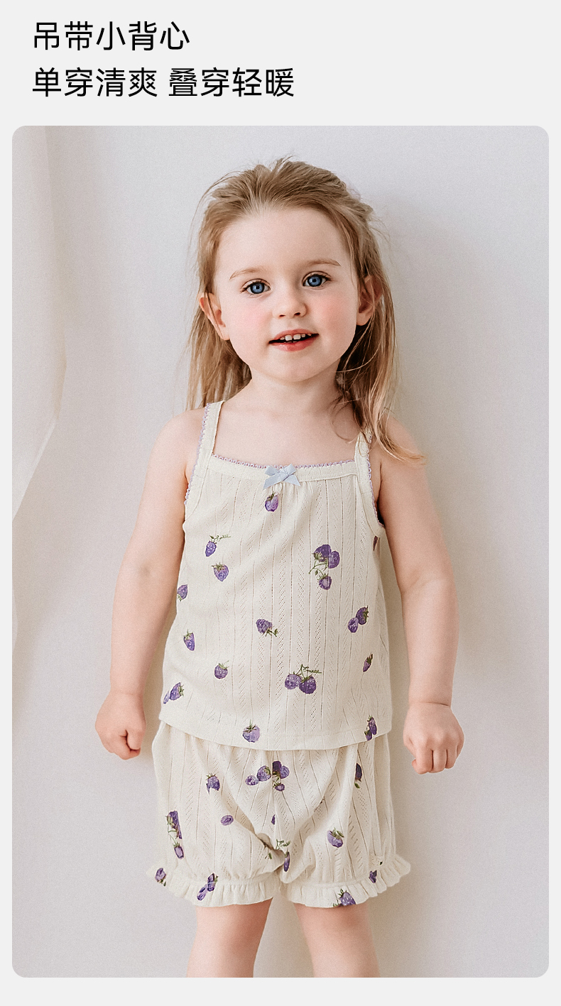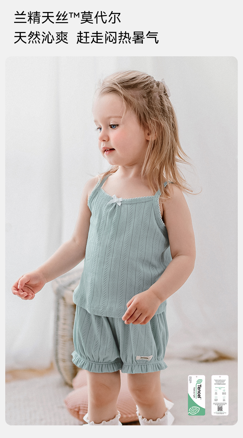 【宝宝服饰】嫚熙童装莫代尔背心吊带儿童短裤女宝套装女童薄款婴儿无袖T恤夏